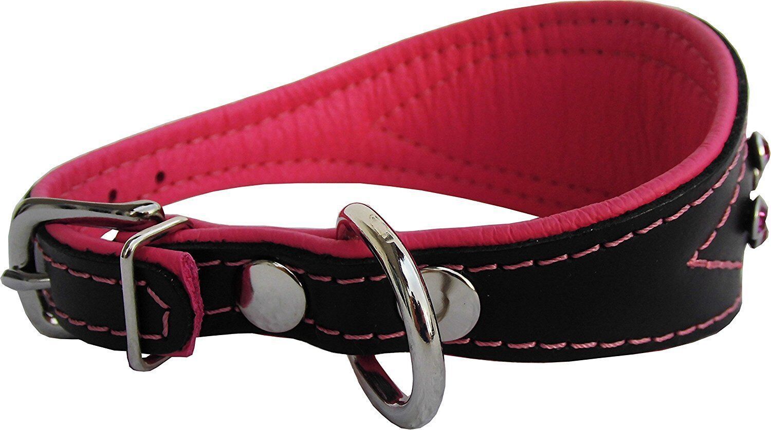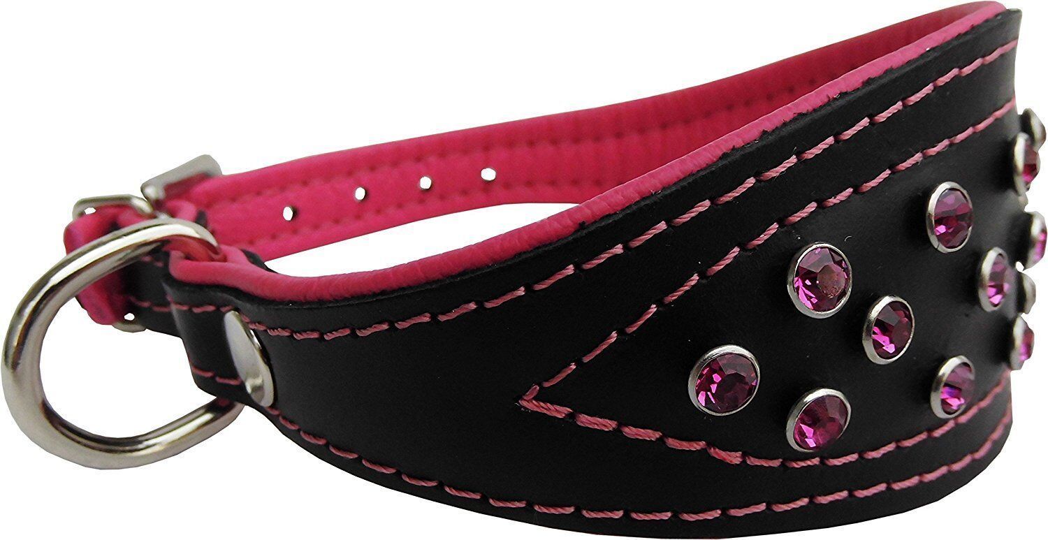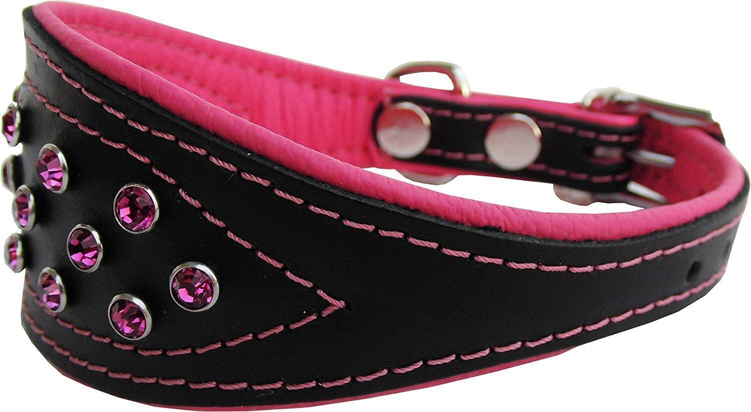 Windhund Halsband, Halsumfang 33-38cm/60mm, Leder + Kristalen ROSA