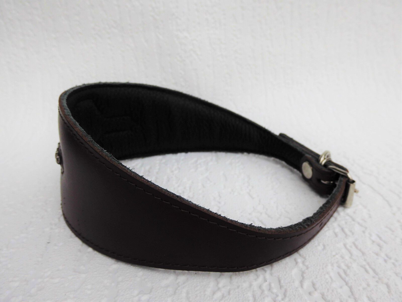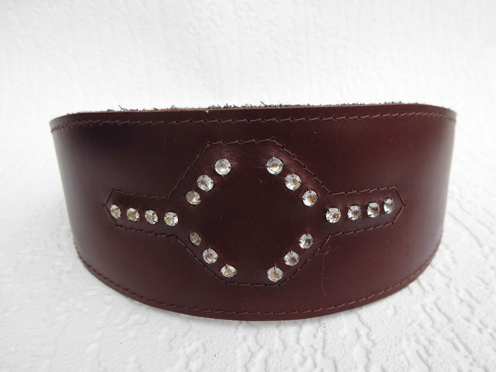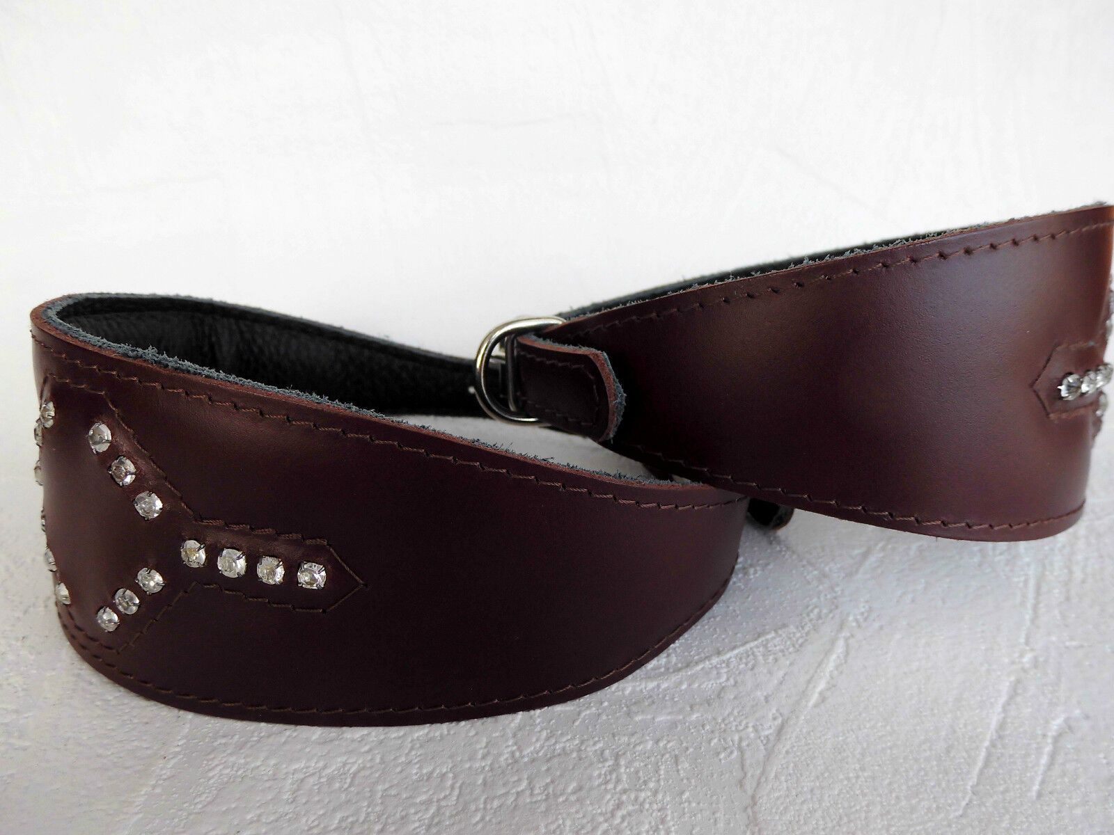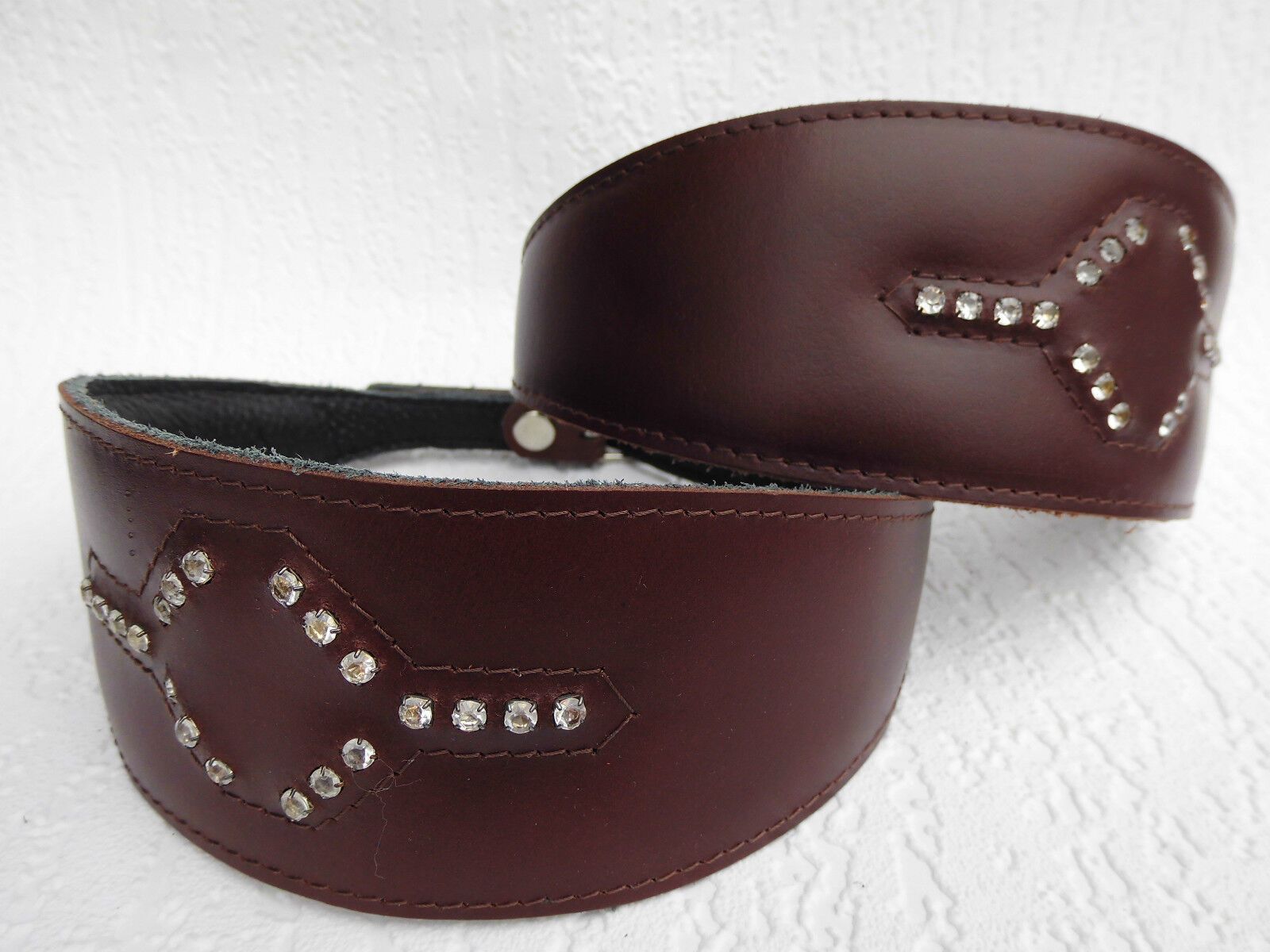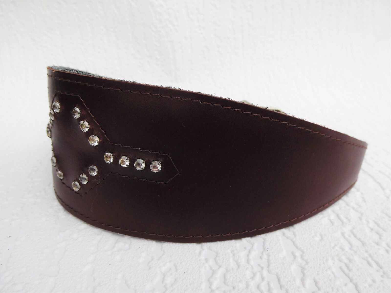 LEDERHALSBAND Strass-Steinen für Windhund Maße: Gesamtlänge : 41 cm Halsumfang : 33,5 - 38,5cm Breit : 15 - 60 mm Messen Sie hierzu bitte den Hals ihres Hundes. Material - 100% hochwertiges Leder, sehr robust - Verziert mit runden Strass-Steinen - Vernäht und gepolstert mit weichem Leder Schauen Sie