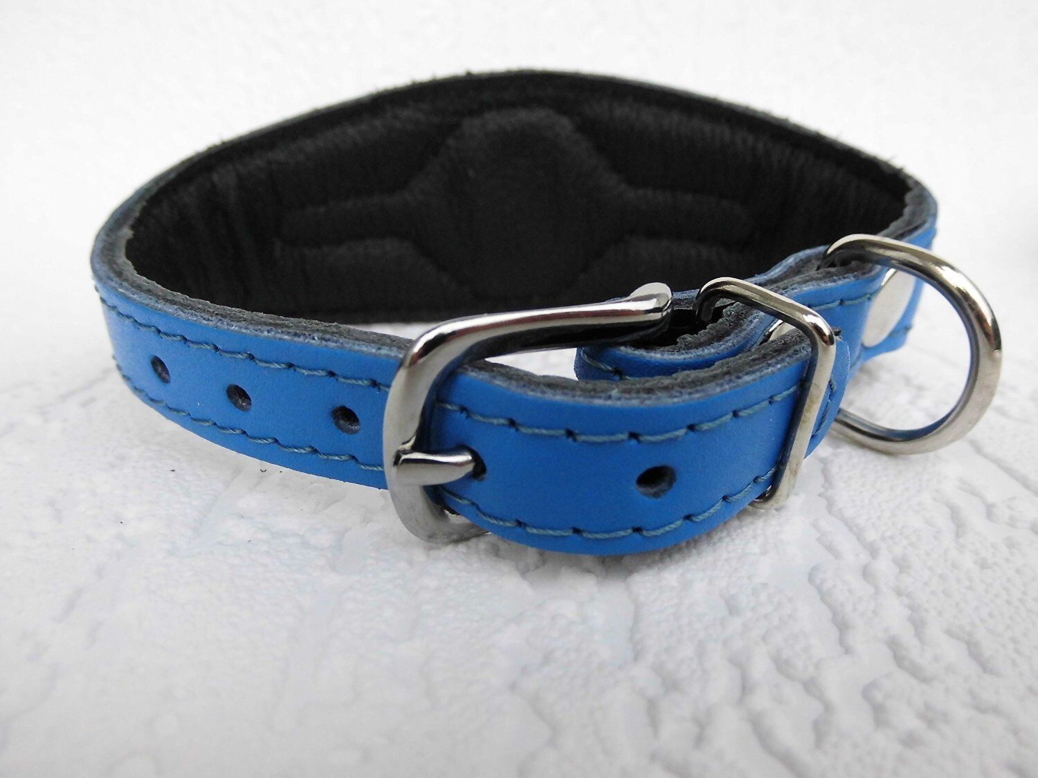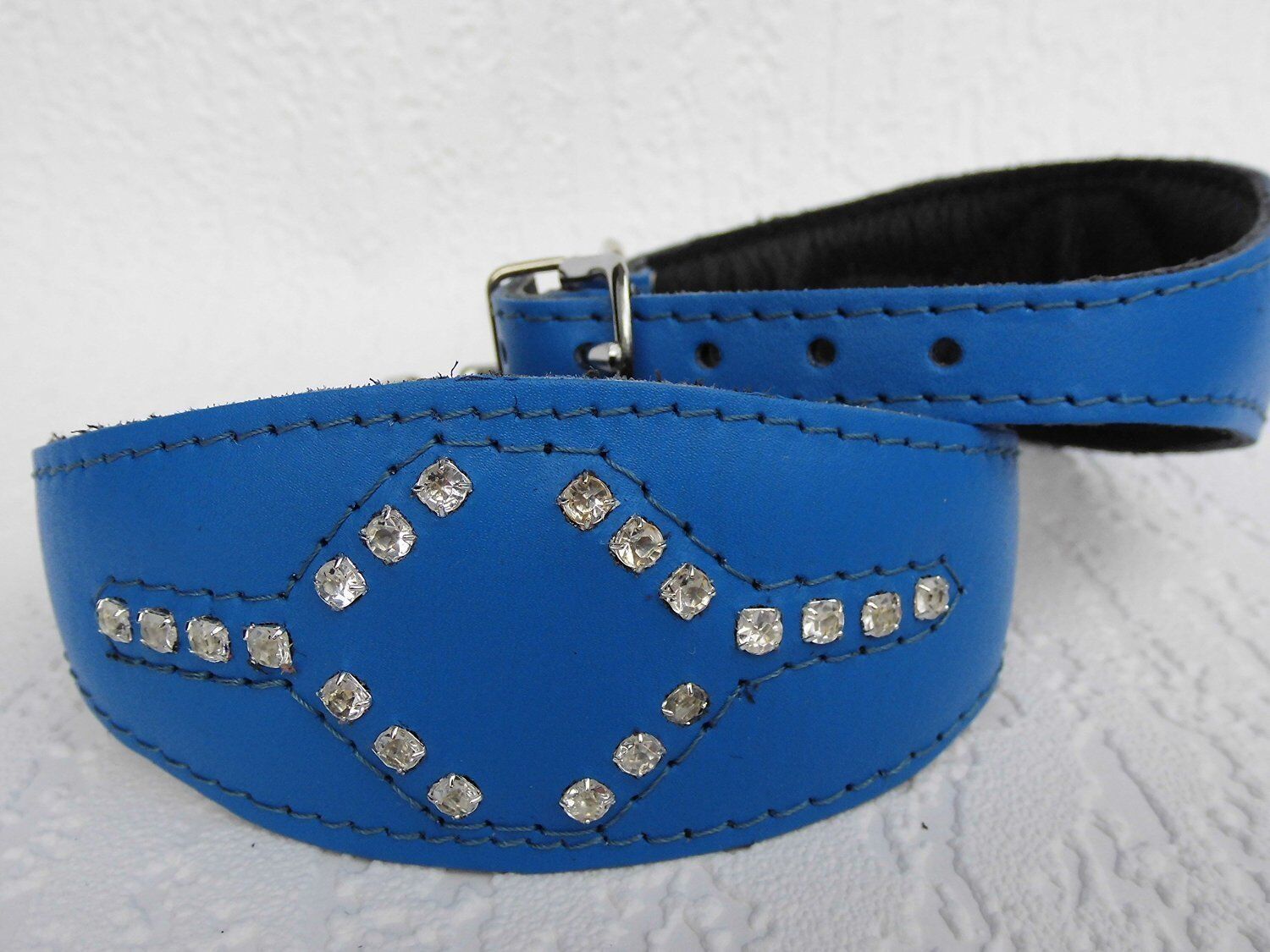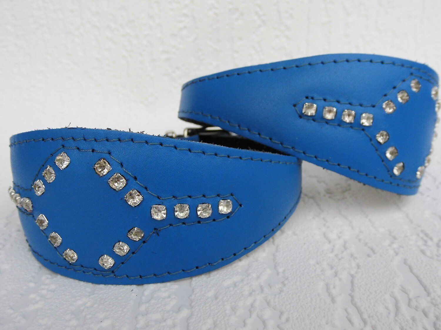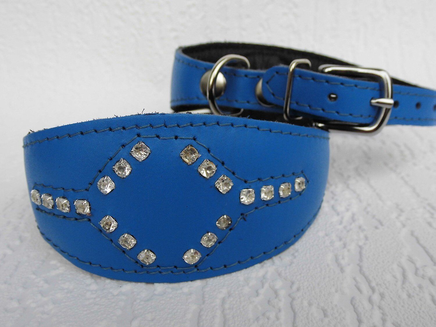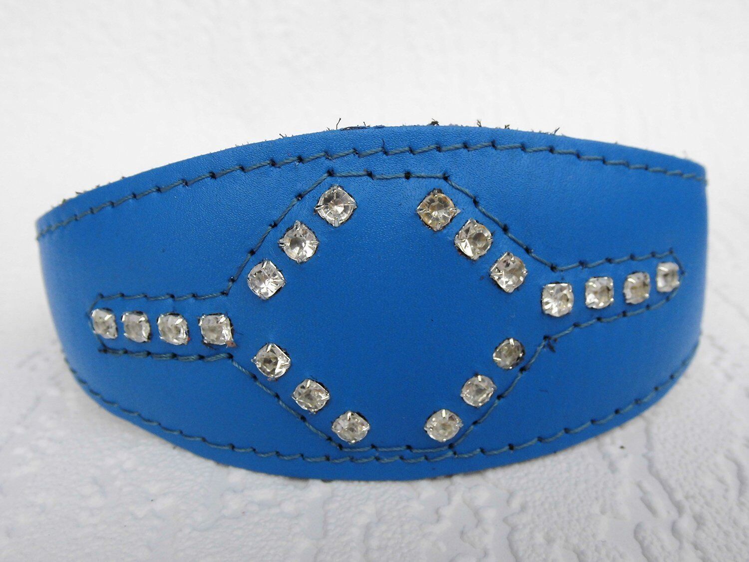 Windhund Halsband, Halsumfang 33,5-38,5cm, Leder + Strass Zirkonia BLAU (5-10-481