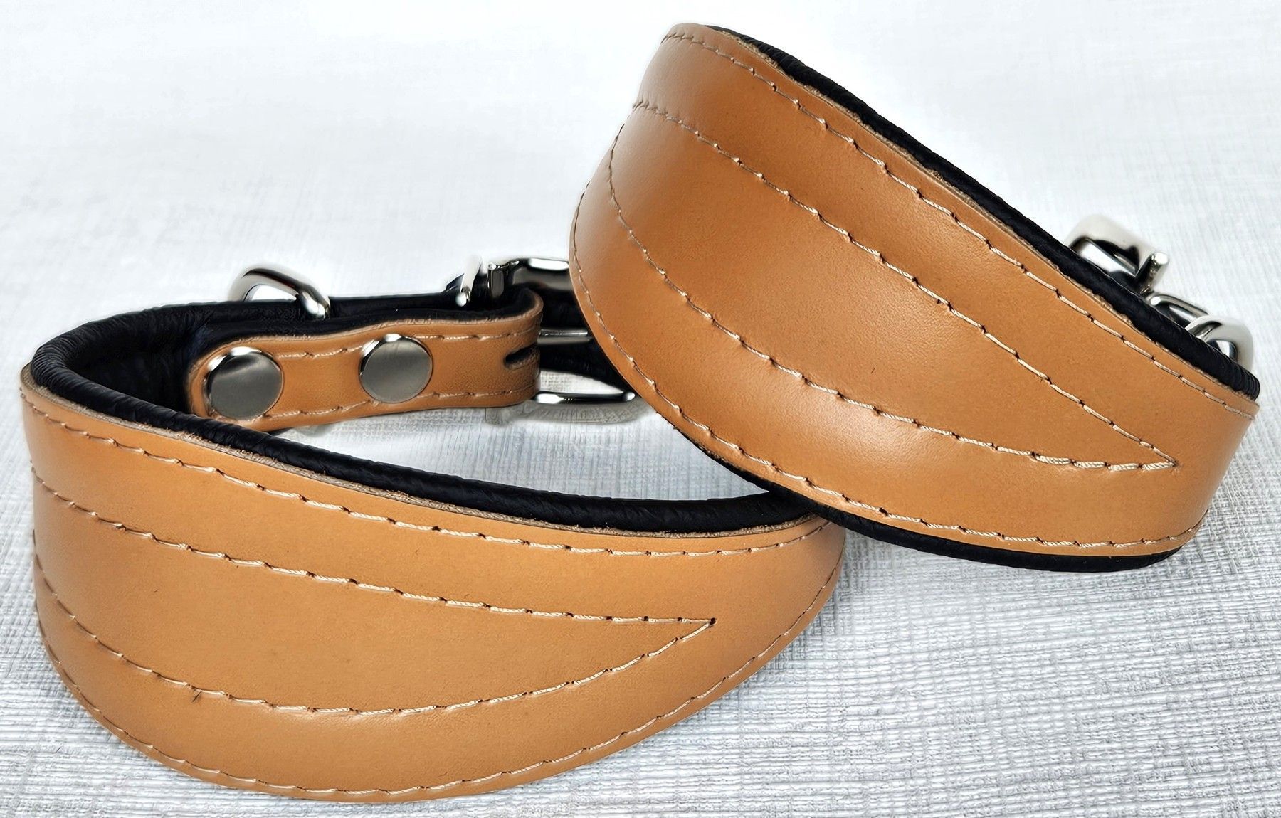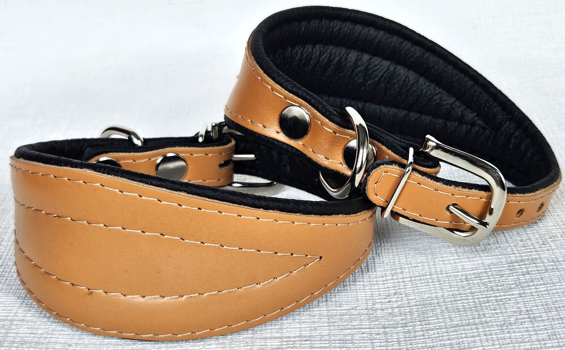 Windhund - Halsband, Halsumfang 40 - 50cm/70mm, LEDER °Cognac-Schwarz°