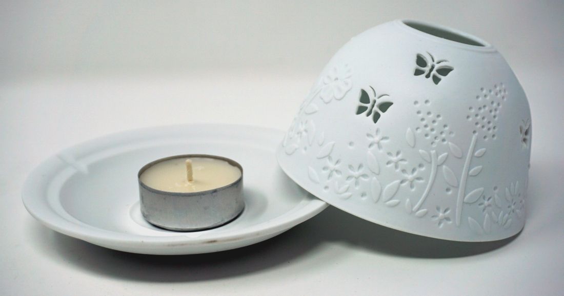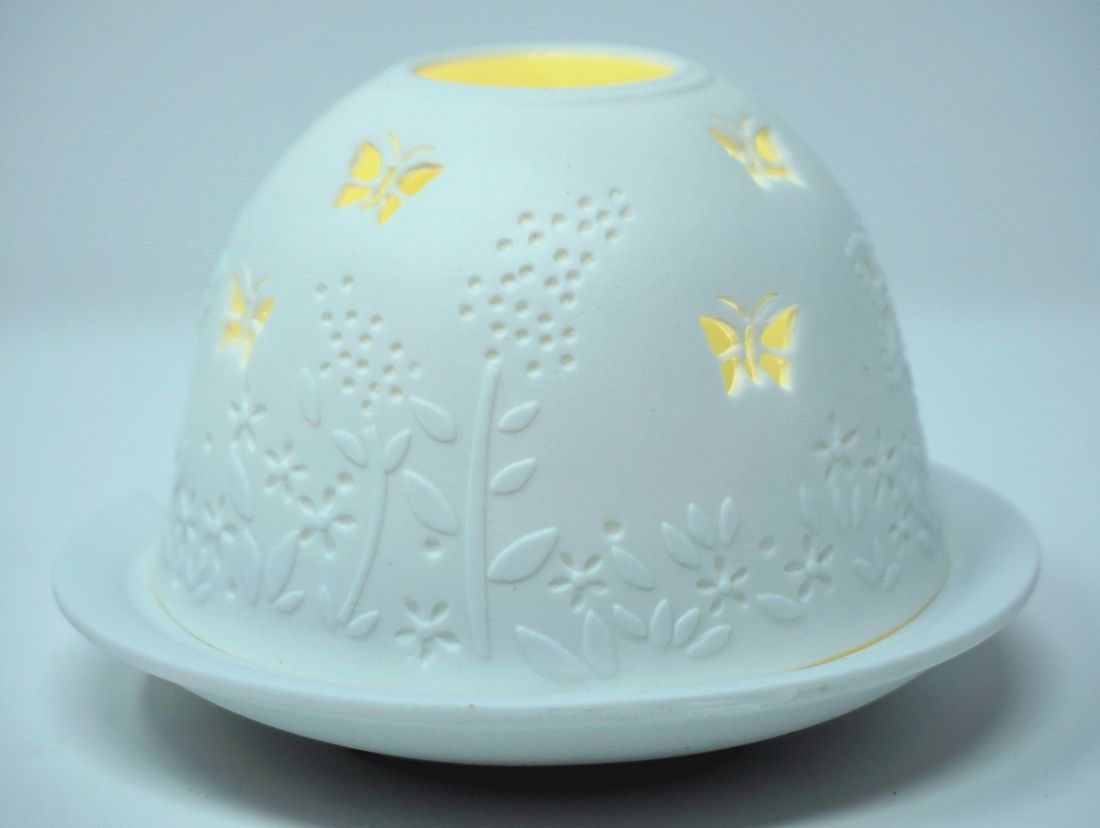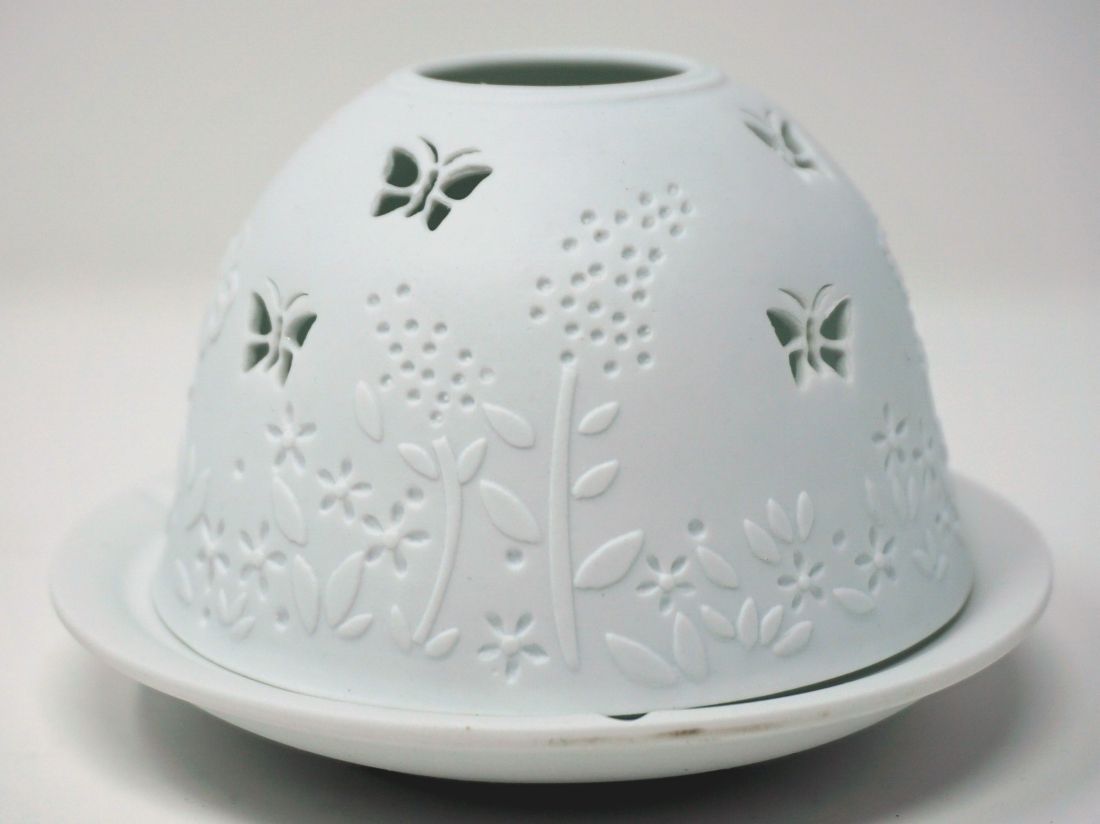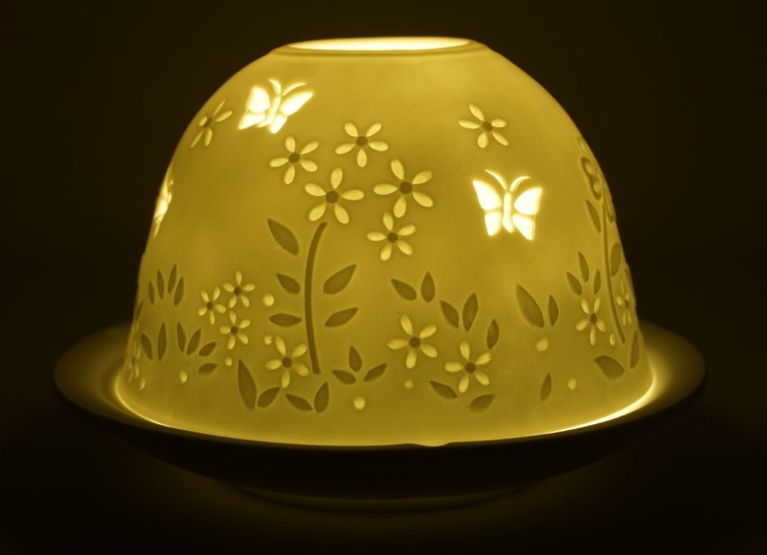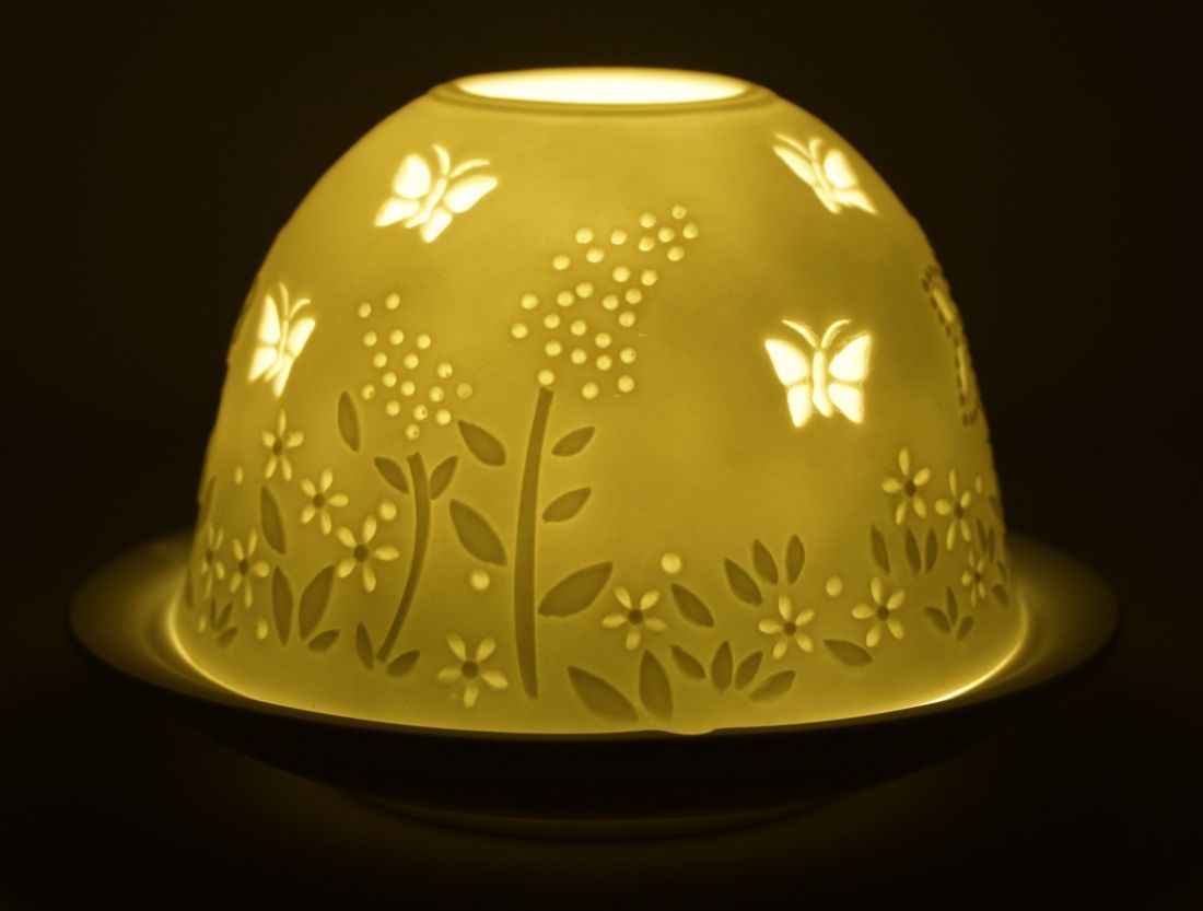 Windlicht Dom Light Frühling Porzellan Teelicht Schetterling Bumen Wiese