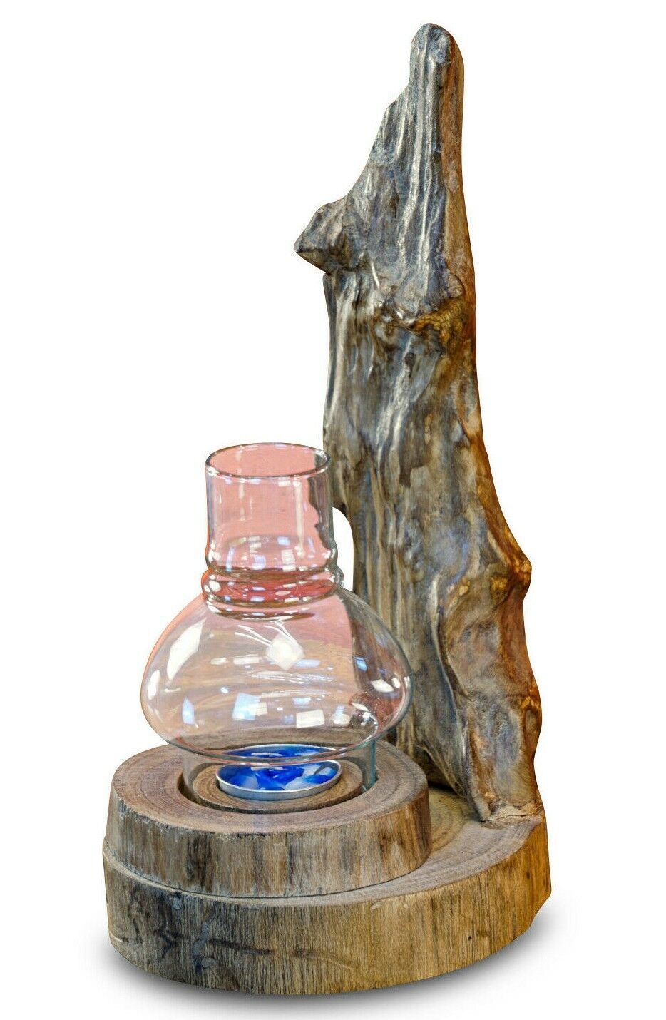 Windlicht Holz Wurzelholz Terrasse Garten Lampe Dekoration aus Teak mit Glas neu