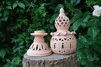 Windlicht Lampe Laterne aus Terracotta Terrakotta 40Cm Set 2 teilig Handarbeit