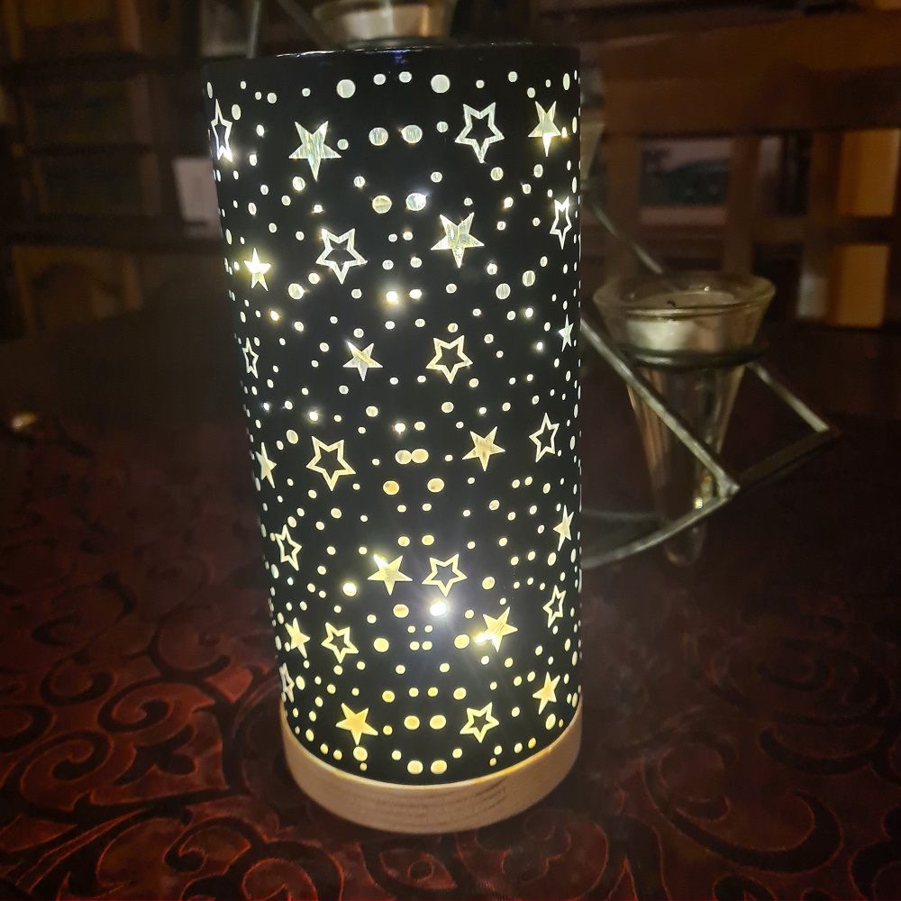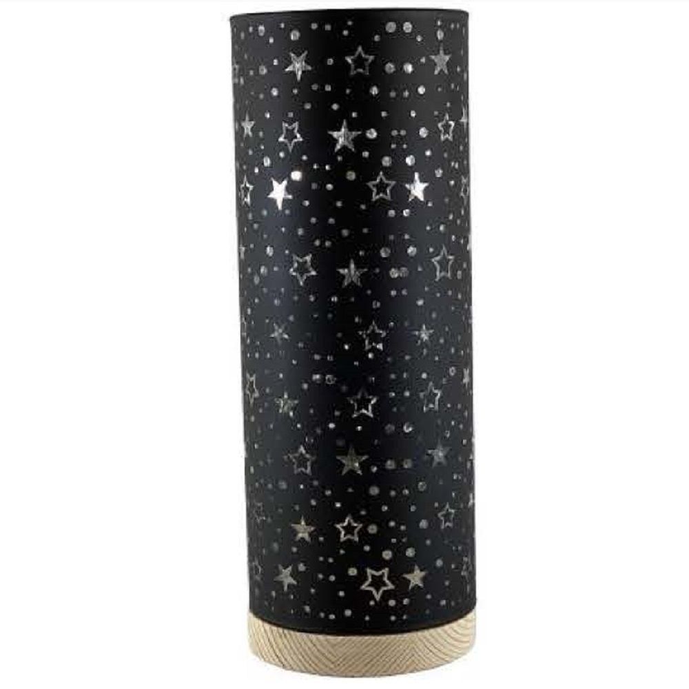 Windlicht "Sternenmotiv" 15er LED Timer Glas schwarz 20x9cm Holzfuß SA305