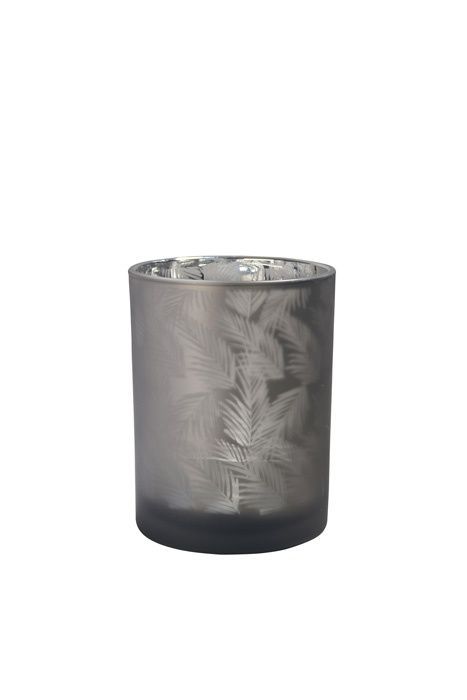 Sompex Windlicht Vase aus Glas grau mit Blattmuster 10cm