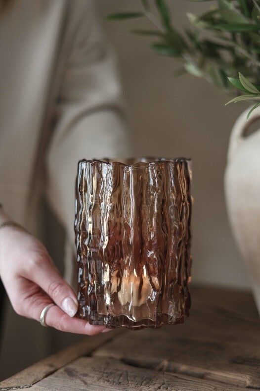 Zaubert ein so tolles Licht durch die grobe Glasbeschaffenheit auch als Vase schön Maße: 11,5 x 14,8 cm Material: Glas Farbe: kastanie Lieferumfang: 1 Vase ohne Deko/Kerze