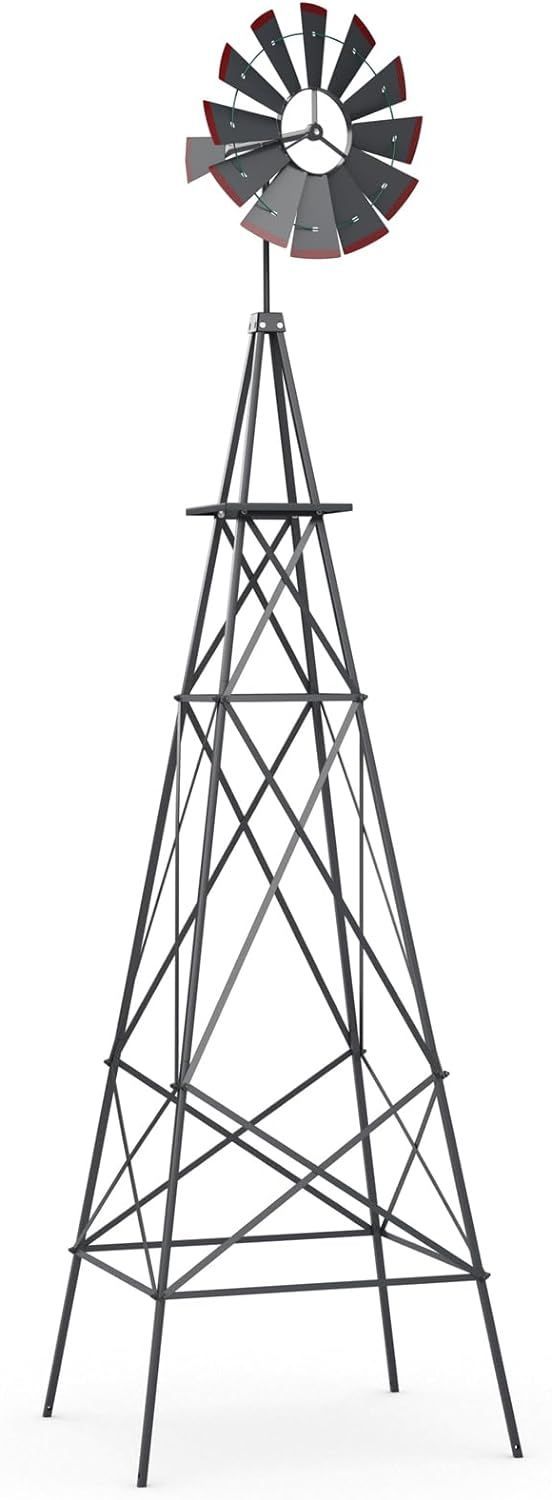 Windrad, Höhe 253 cm, wetterfeste Windmühle aus Metall, Gartendeko für Garten, Hof