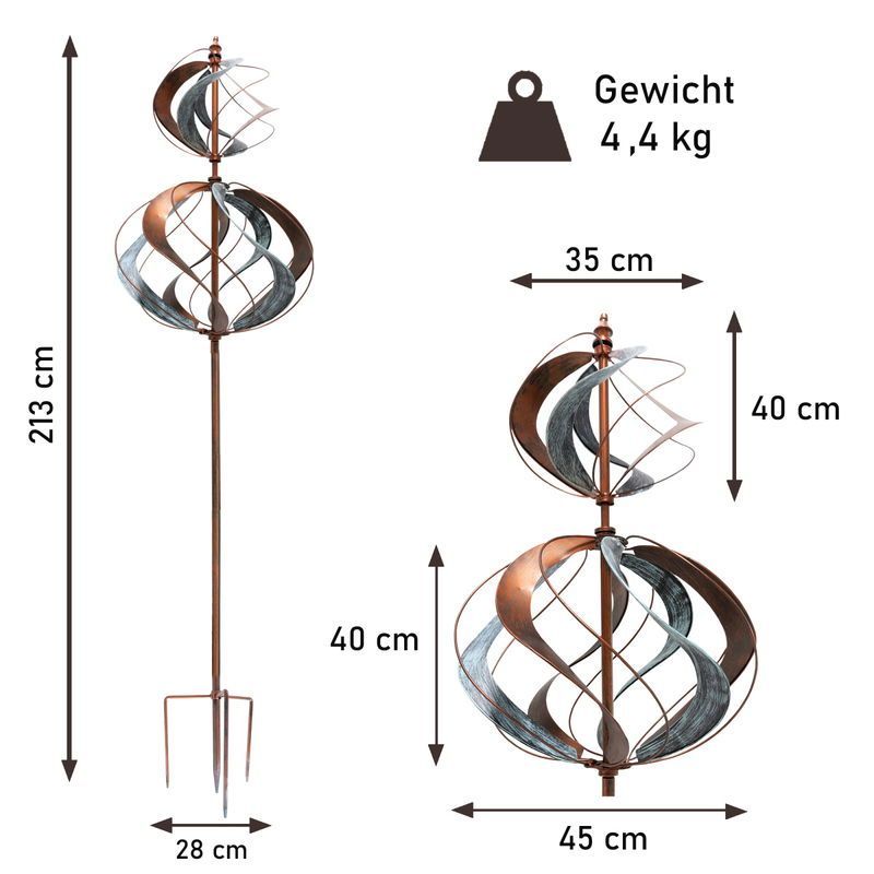 Windrad Tulip mit 2 gegenläufigen Rotoren, Gartendeko, 213 cm hoch