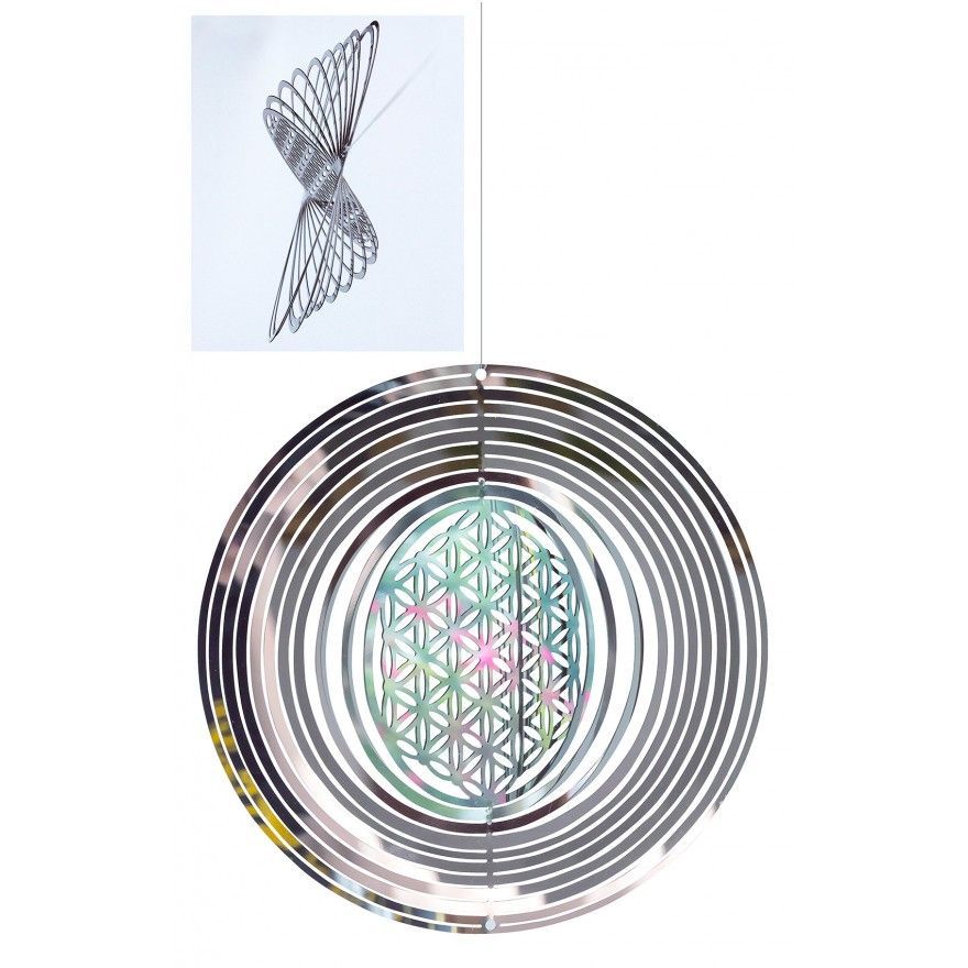 Saraswati Windspiel BLUME DES LEBENS Edelstahl 15 cm Mobile Feng-Shui Energie-Drehspirale