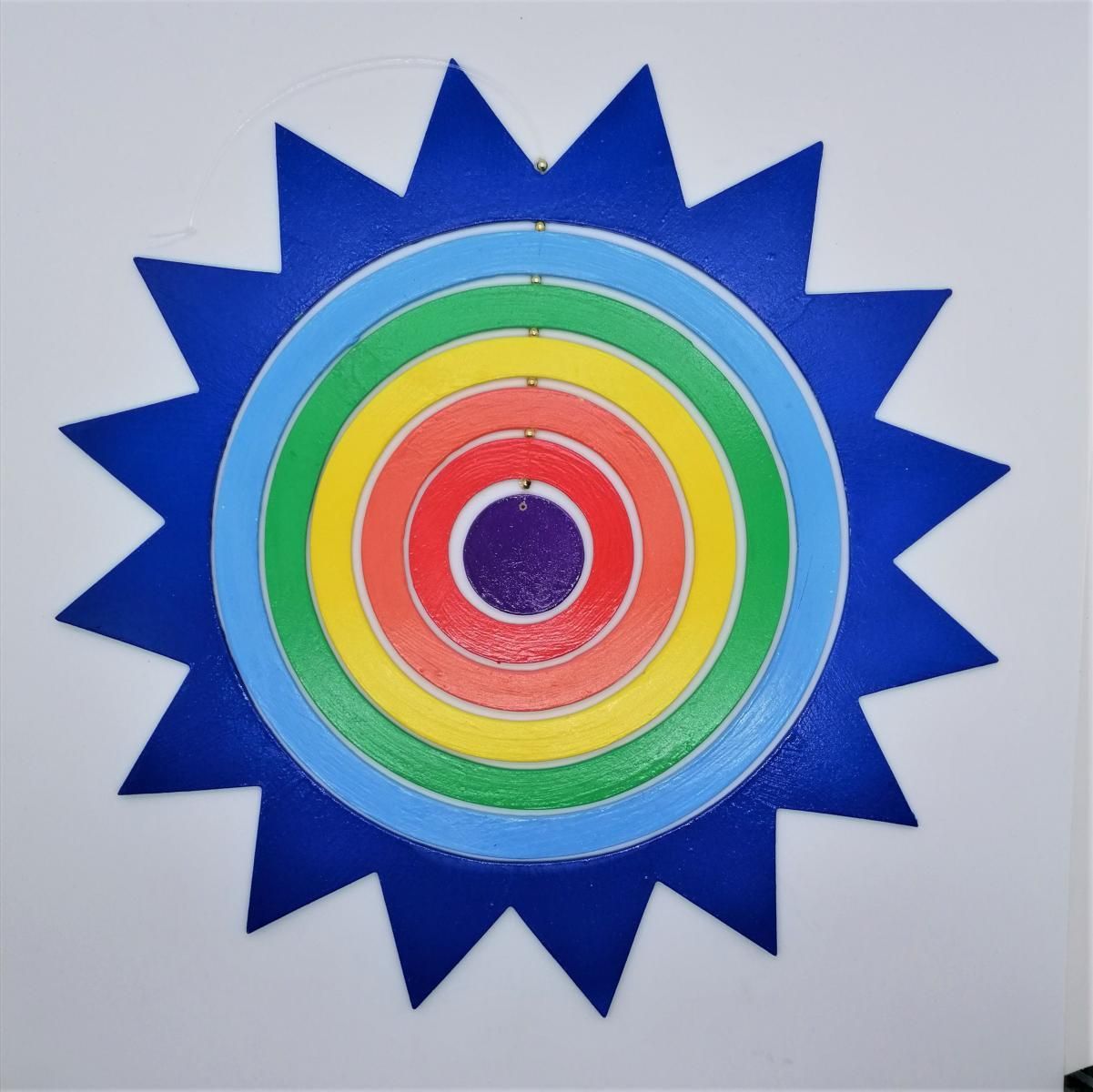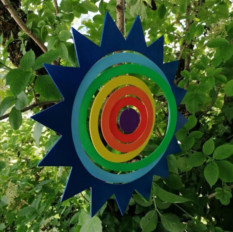 Buntes Harmony-Circle Windspiel handgearbeitet aus Holz. Durchmesser: 36 cm