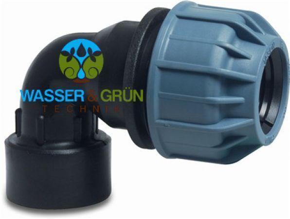 Winkel PE Klemmverschraubung x Innengewinde PN10: 63 mm x 2 1/2 Zoll IG