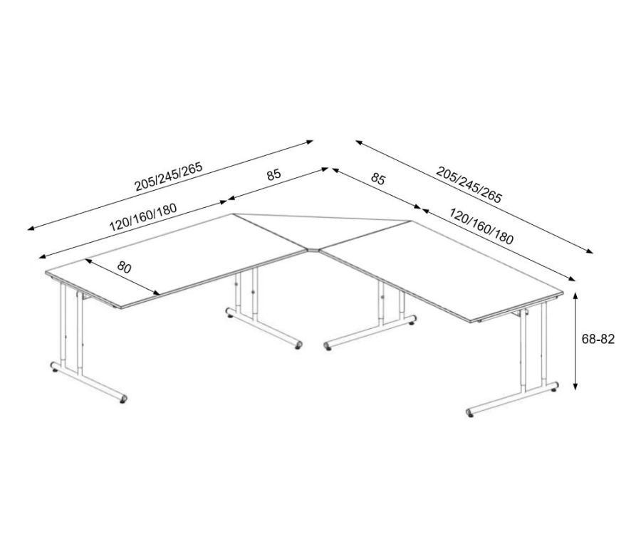 Winkel-Schreibtisch Sevilla 160x180, 180x180 x68-82cm mit Eckelement