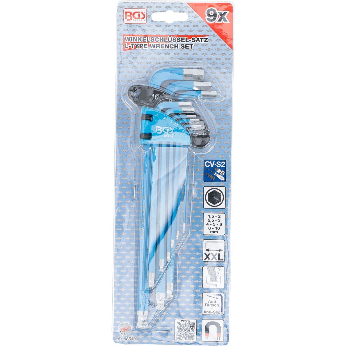 BGS Winkelschlüssel Satz Innensechskant, extra lang Schraubenzieher, 9-tlg