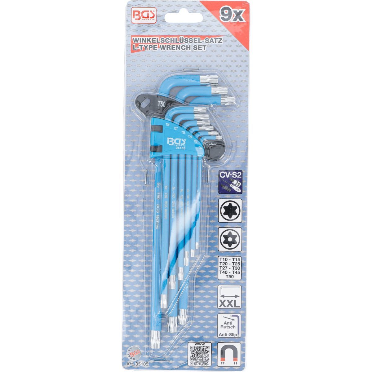 BGS Winkelschlüssel Satz Torx Schraubendreher Schraubenzieher Set Torx Schlüssel, 9-tlg