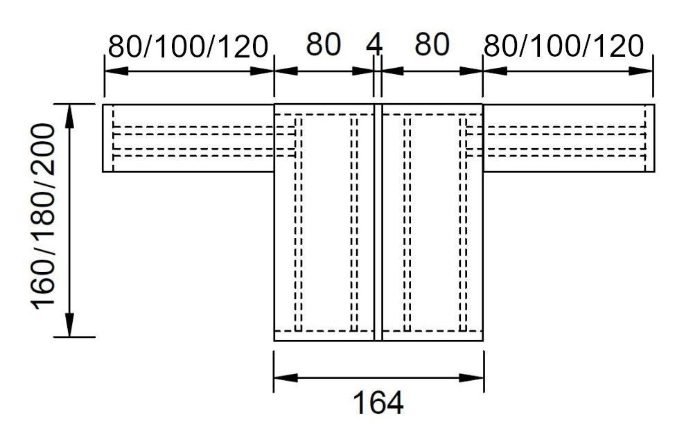 404 x 160 x 74, 404 x 180 x 74 und 404 x 200 x 74