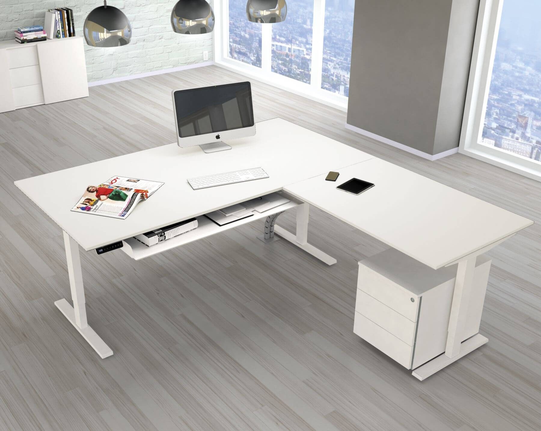 Winkelschreibtisch Updown 3 elektrisch höhenverst.180x180, 200x220, 200x260 x72-120cm