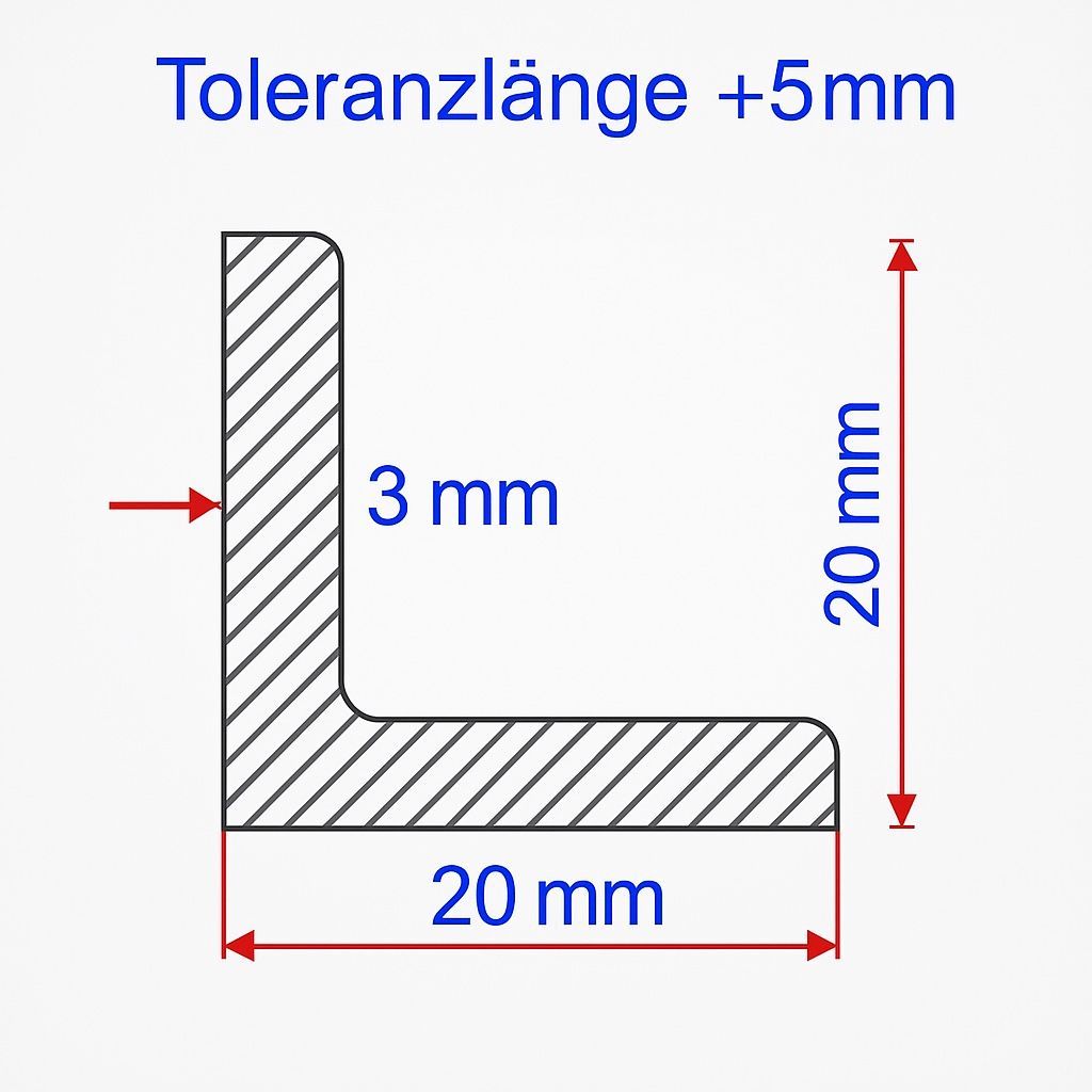 Winkelstahl L-Profil 20x20x3 mm Stahl gleichschenklig Zuschnitt| Länge 100-1500mm