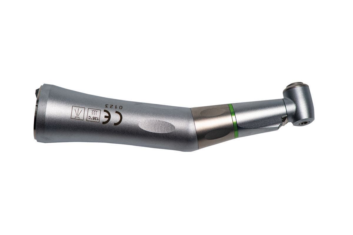 Dentalmaterialien der Firma Dental Südheide GmbH Winkelstück mit Licht und Spray 4:1 Technische Daten: - Beschreibung: E-Typ Winkelstück4:1 Übersetzung mit internem Wasserspray - Einsatzzweck: Für Prophylaxe-Anwendungen und Kariesexkavation - Helligkeit: 25.000 Lux - Bohreraufnahme: 2.334 2.355 mm -