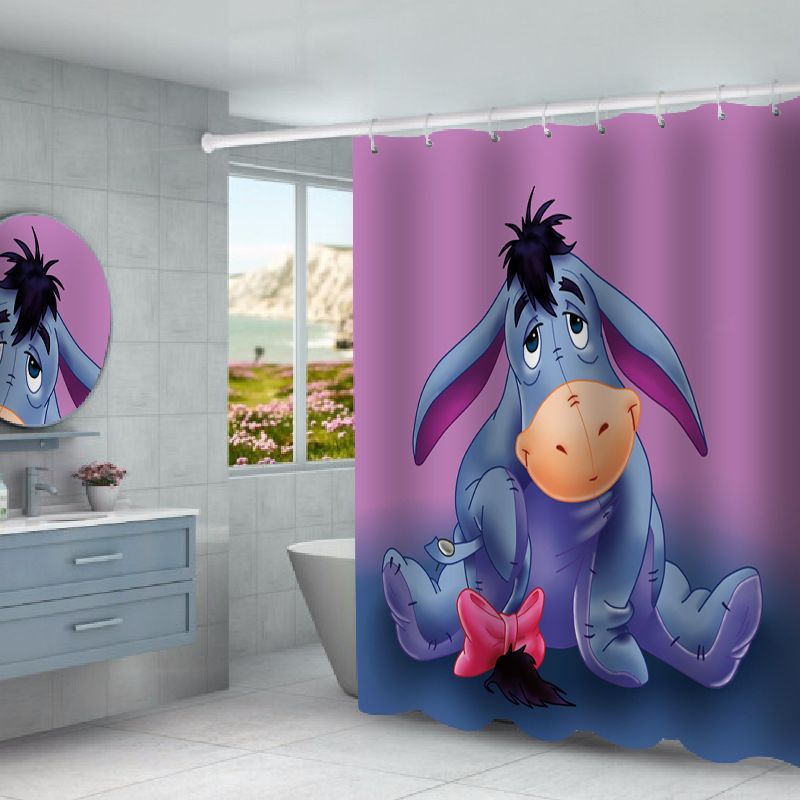 Winnie Pooh Eeyore Duschvorhänge 3D Druck Badezimmer Shower Curtain mit 12 Ringen