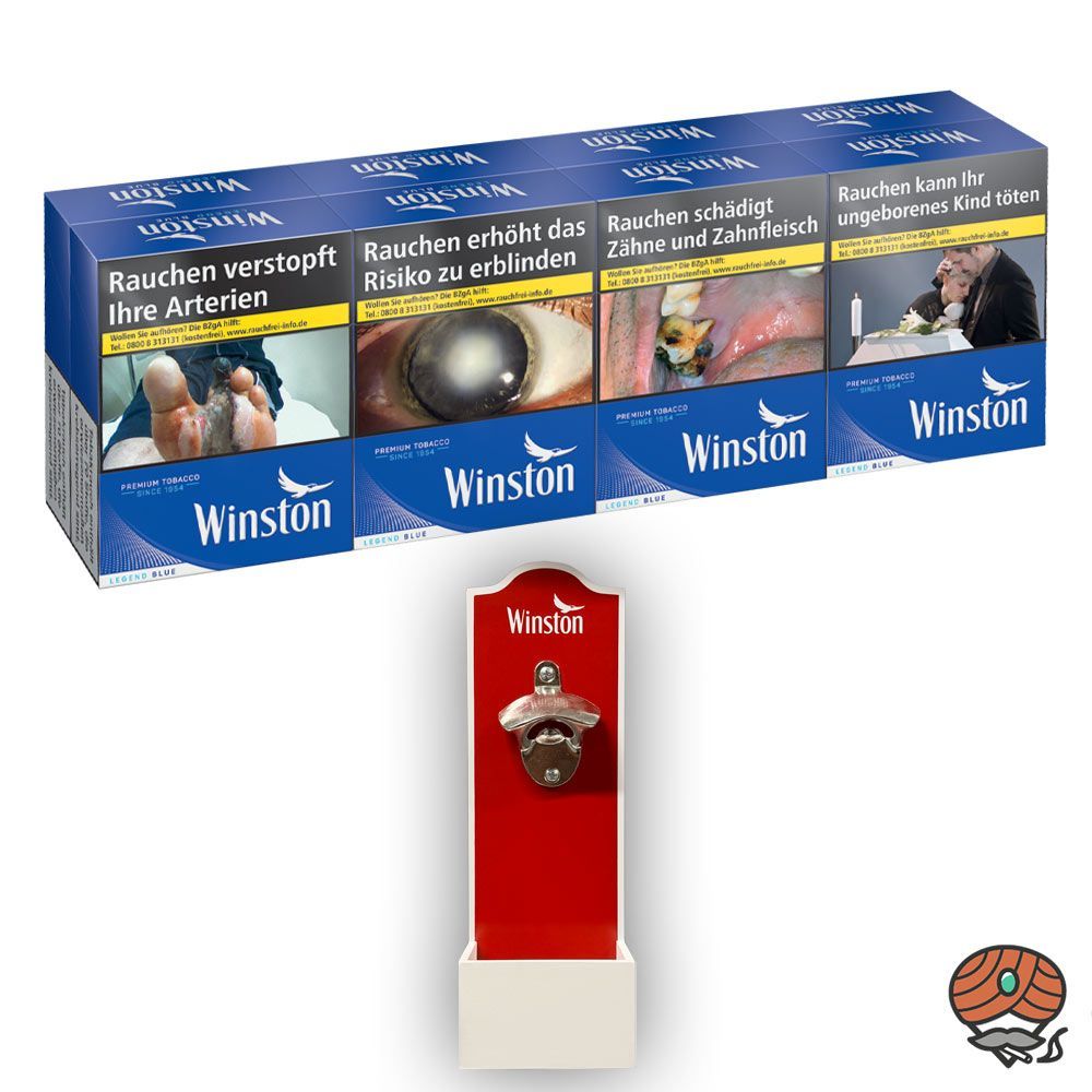 Winston Blue/Blau Zigaretten XXL 8x 27 Stück + Winston Wandflaschenöffner
