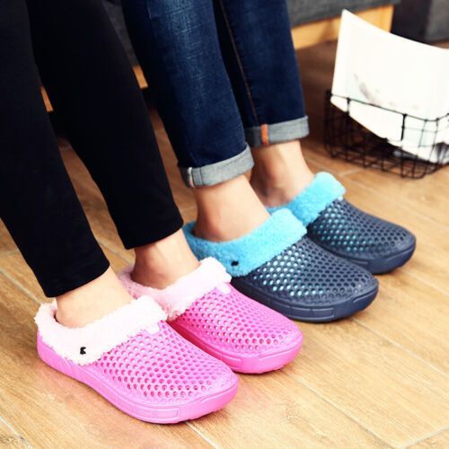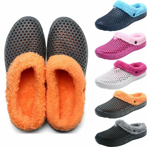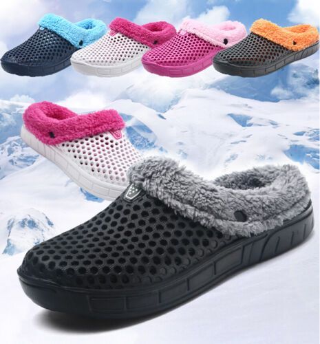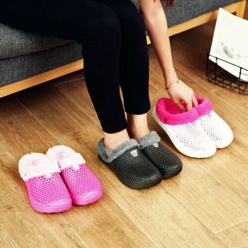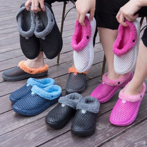 Winter Clogs Fell Hausschuhe Damen Warm schuhe Gartenclogs Herren Schlappen @1