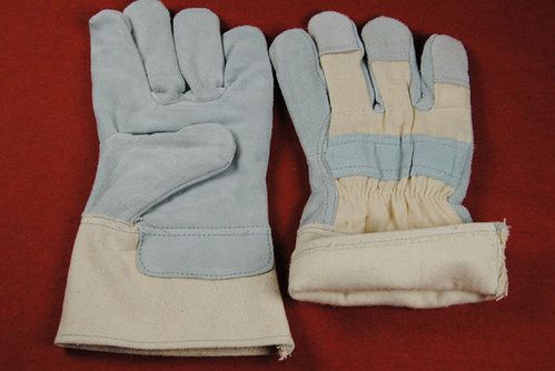 Winter-Rindspaltleder-Arbeitshandschuhe Nr. 121 5-Fingerhandschuh Rindkernspaltleder - komplett mit Molton gefüttert - Doppelnaht - Handrücken und Stulpe aus weißem Canvas - hält schön warm