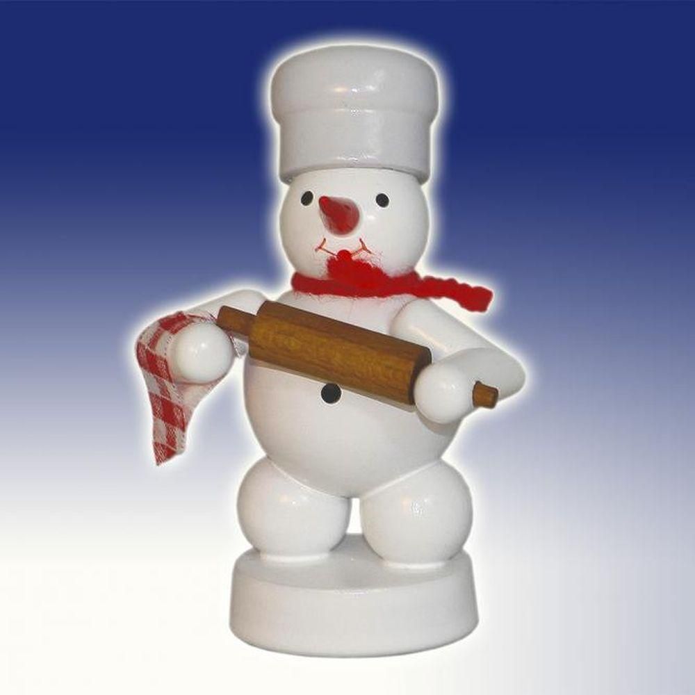 Winterdekoration Schneemann Bäcker mit Teigrolle Höhe 8cm NEU Schnee Eismann