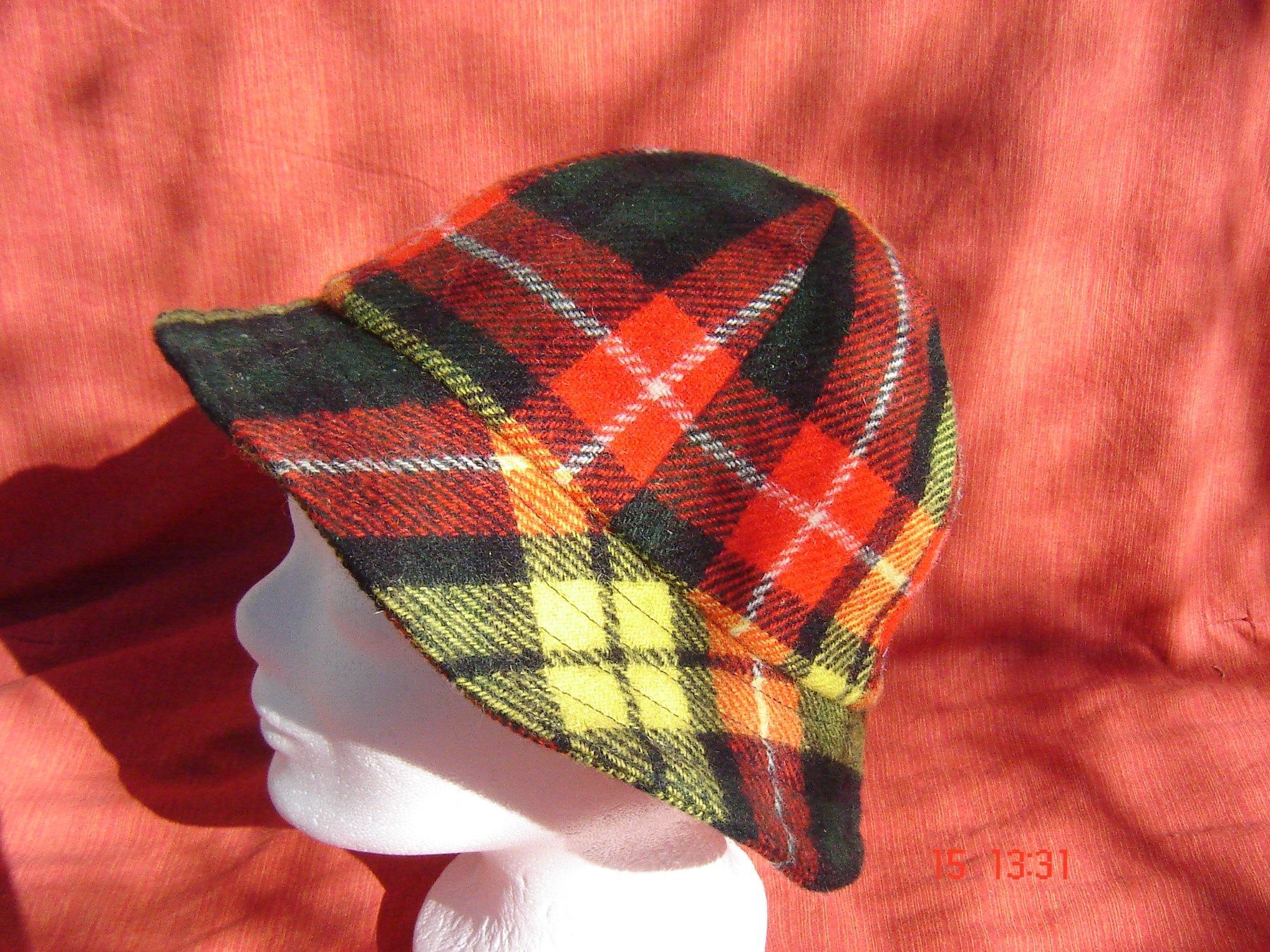 Winterhut Karohut grün rot gelb kariert Wolltuch wahlweise mit Schal B14