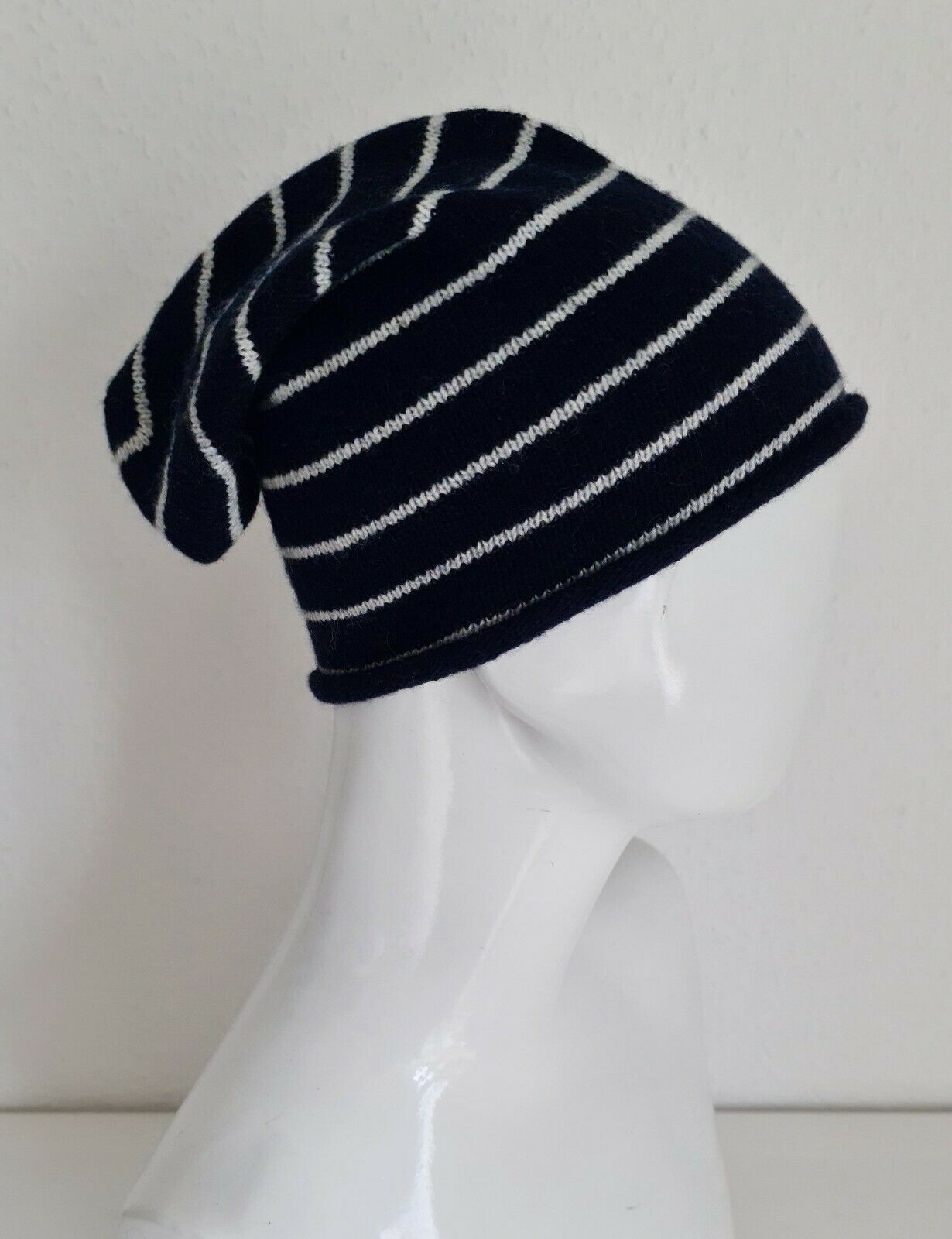 Wintermütze Beanie Strickmütze Wollmütze 20 % Cashmere gestreift Blau/Weiß