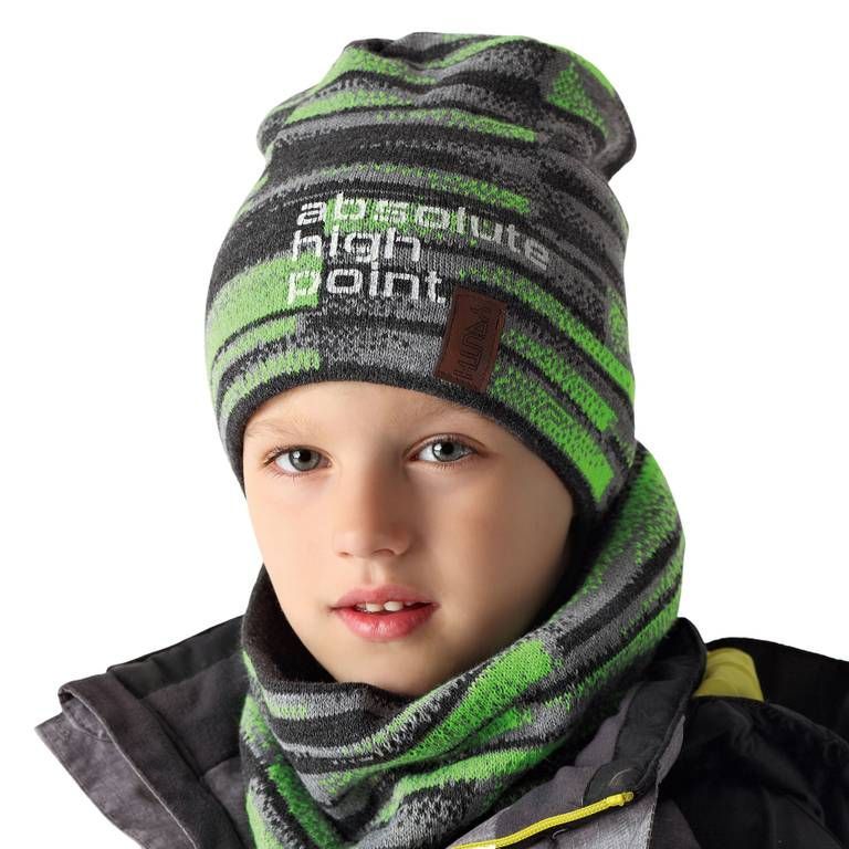 AJS Wintermütze Strickmütze Strickschal 2er Set Winterset Jungen Kinder 6-12 Jahre