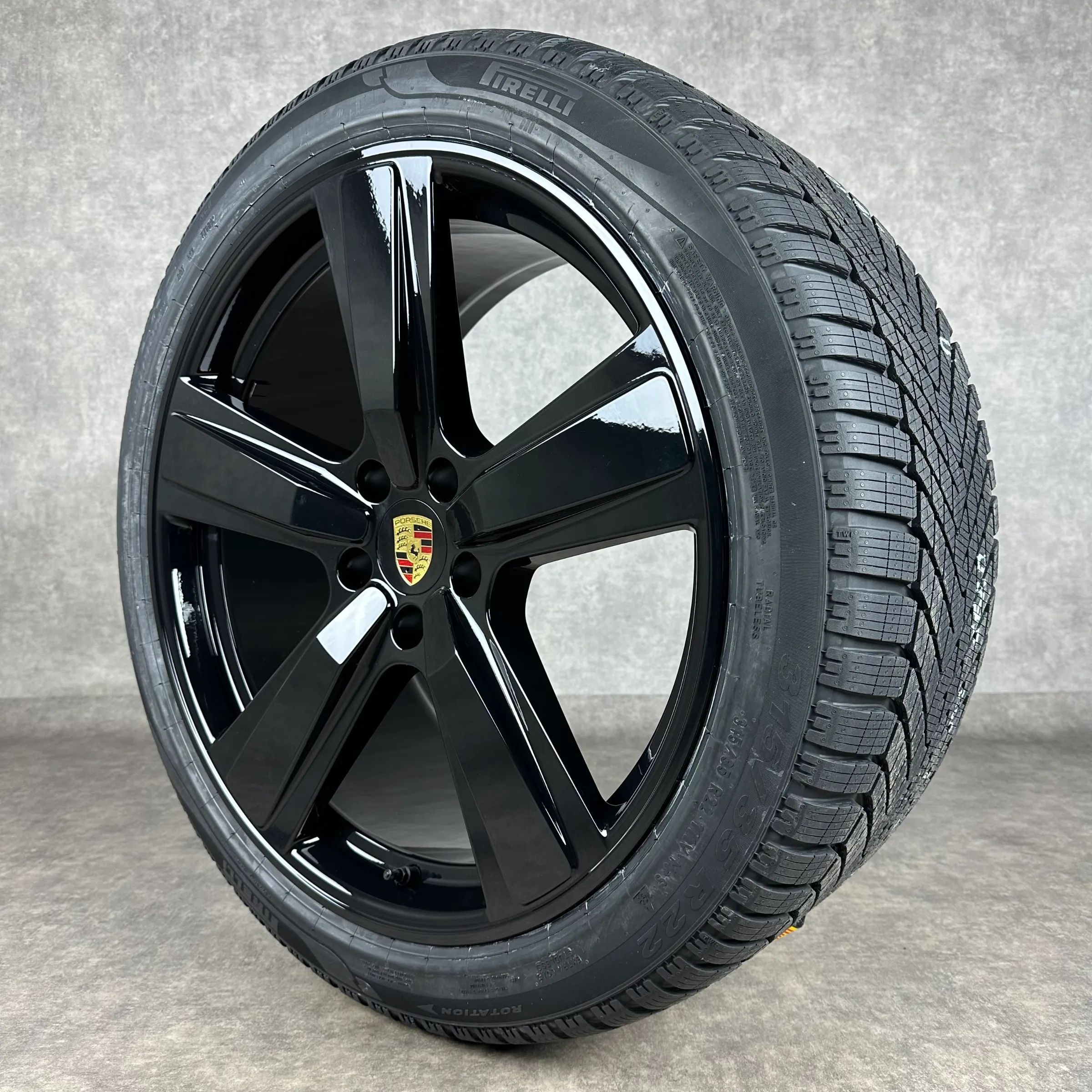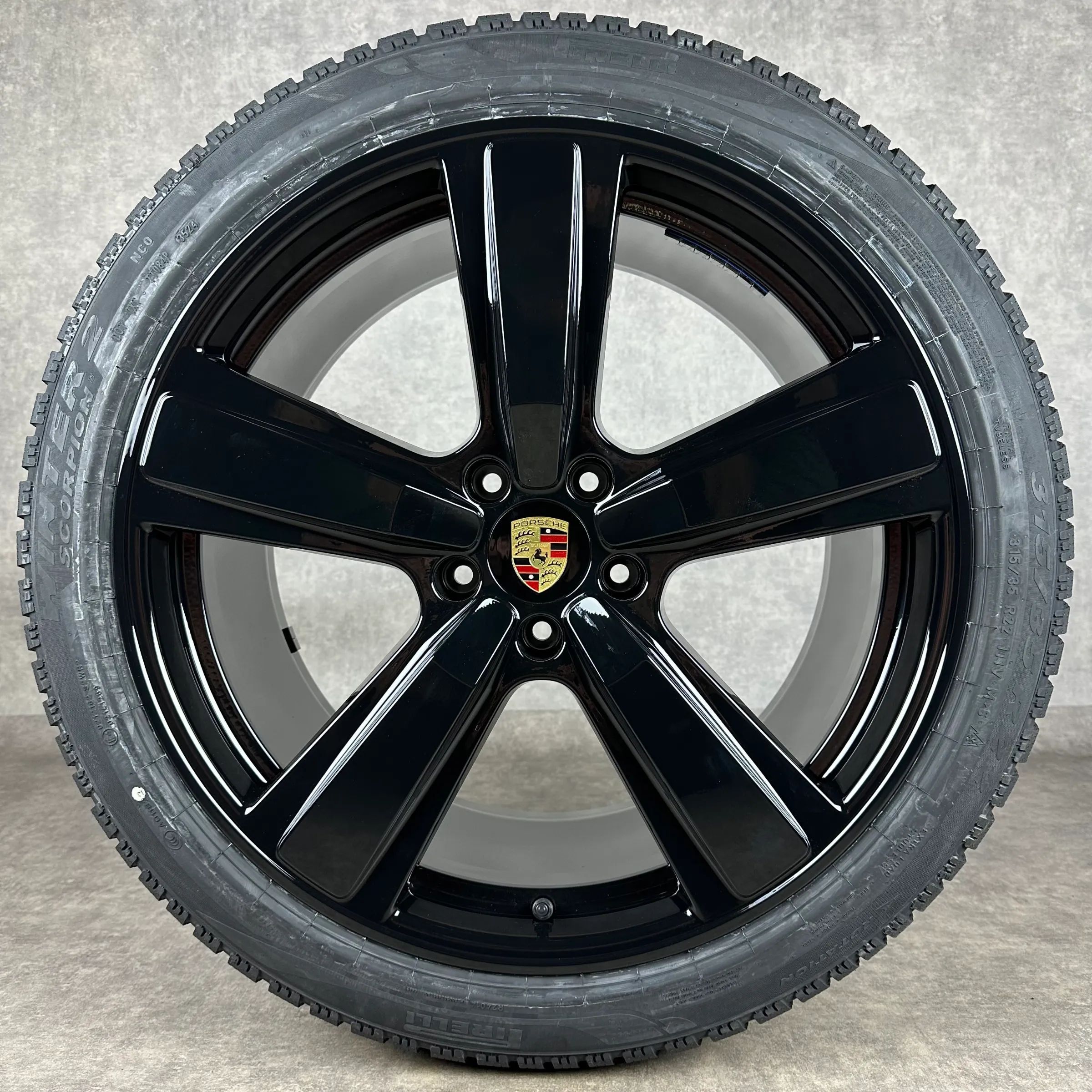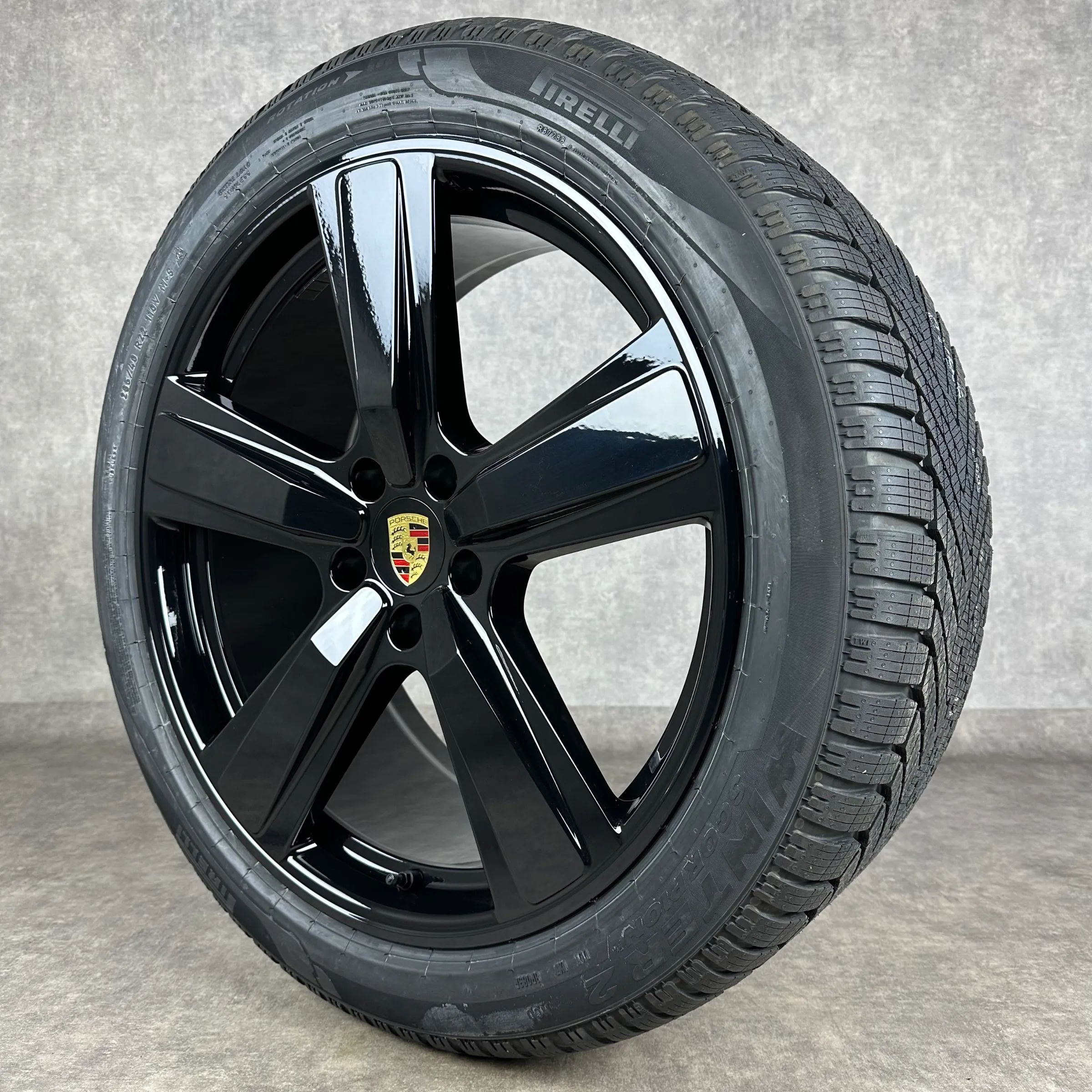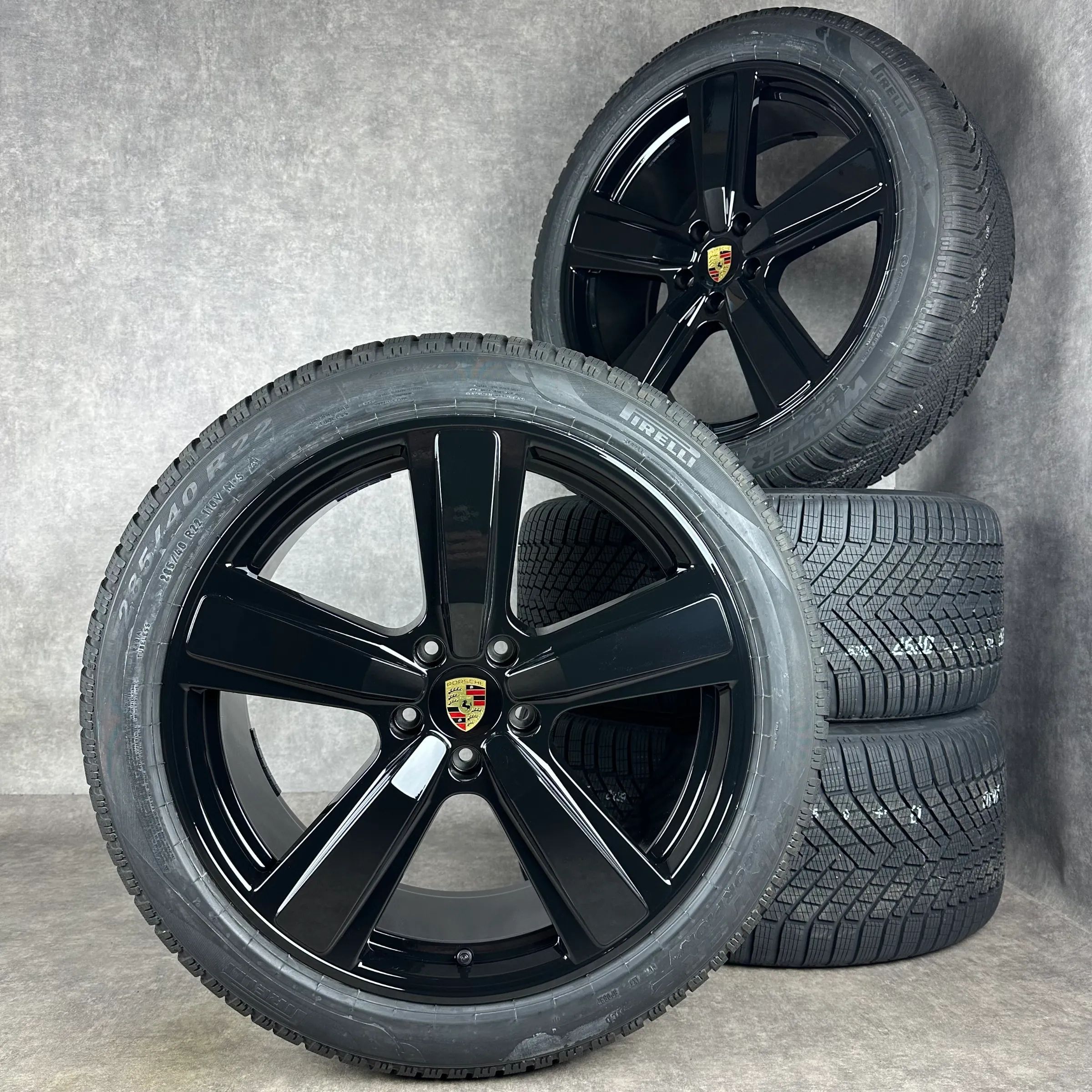 4x Original PORSCHE Cayenne Coupé (E3 II) 22 Exclusive Design Felgen Winterkompletträder schwarz hochglanz VA Dimension: 10Jx22 ET48 Teilenummer: 9Y0601025CP 285 40 R22 110V Pirelli Scorpion Winter 2 NC0, neu HA Dimension: 11,5Jx22 ET52 Teilenummer: 9Y3601025CE 315 35 R22 111V Pirelli Scorpion Winte