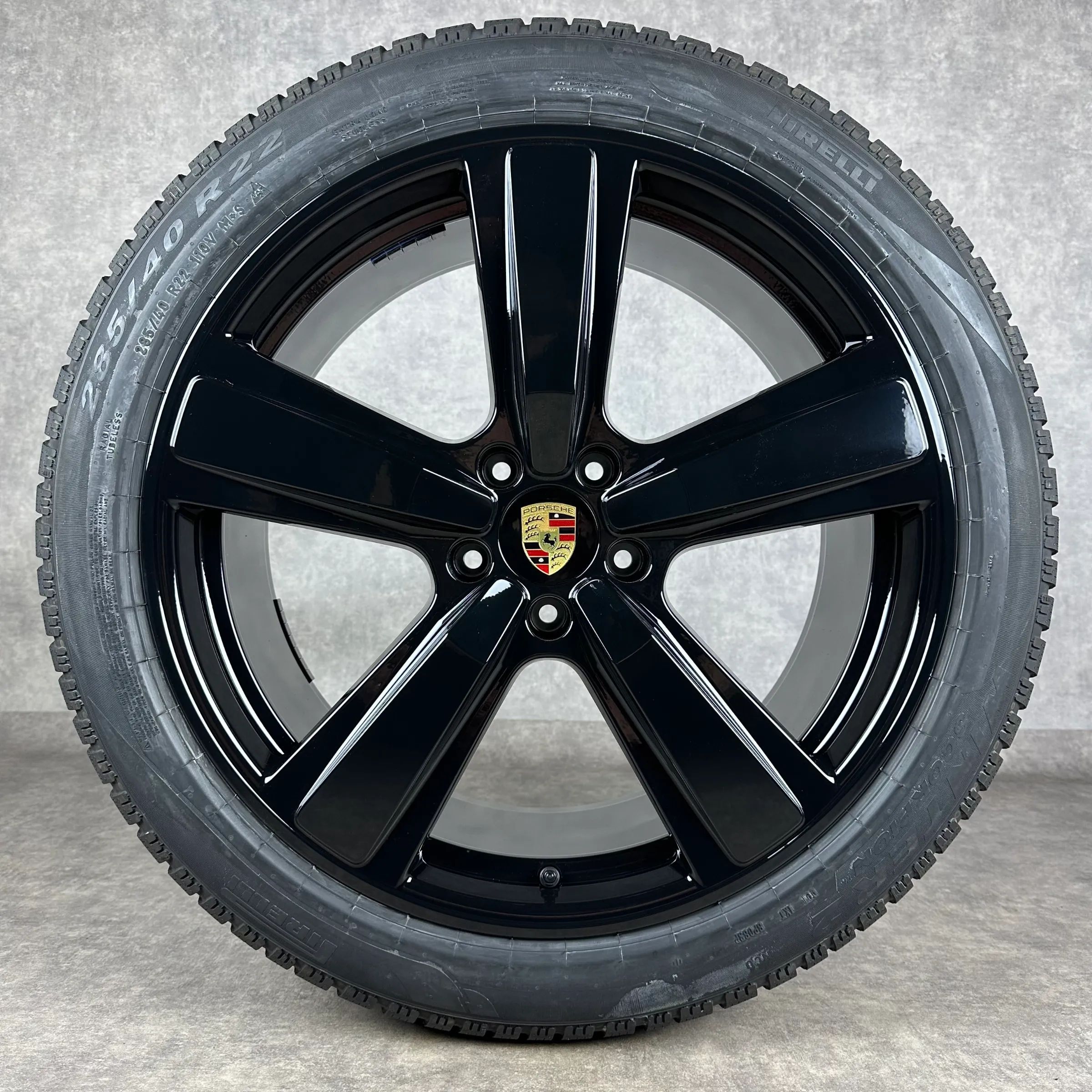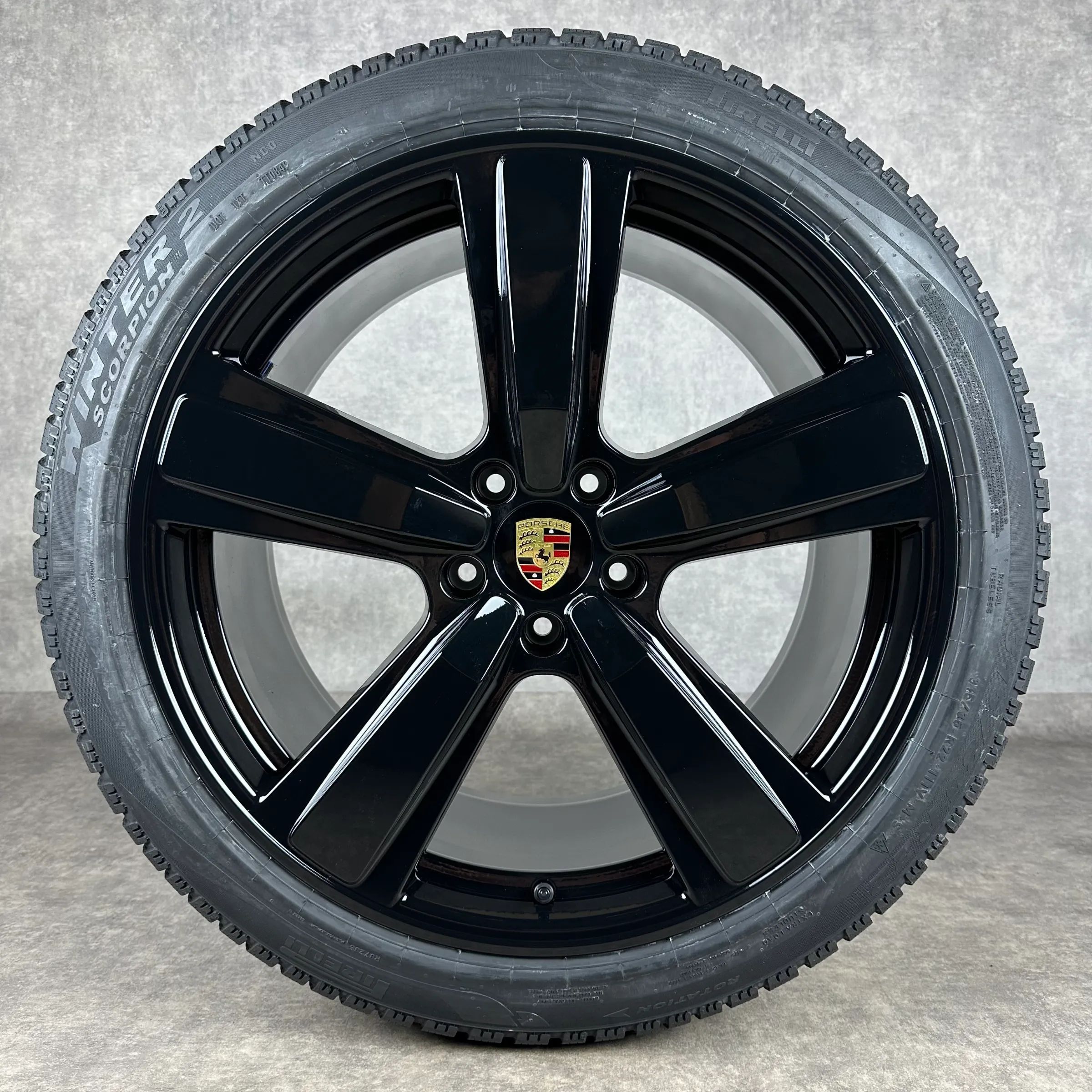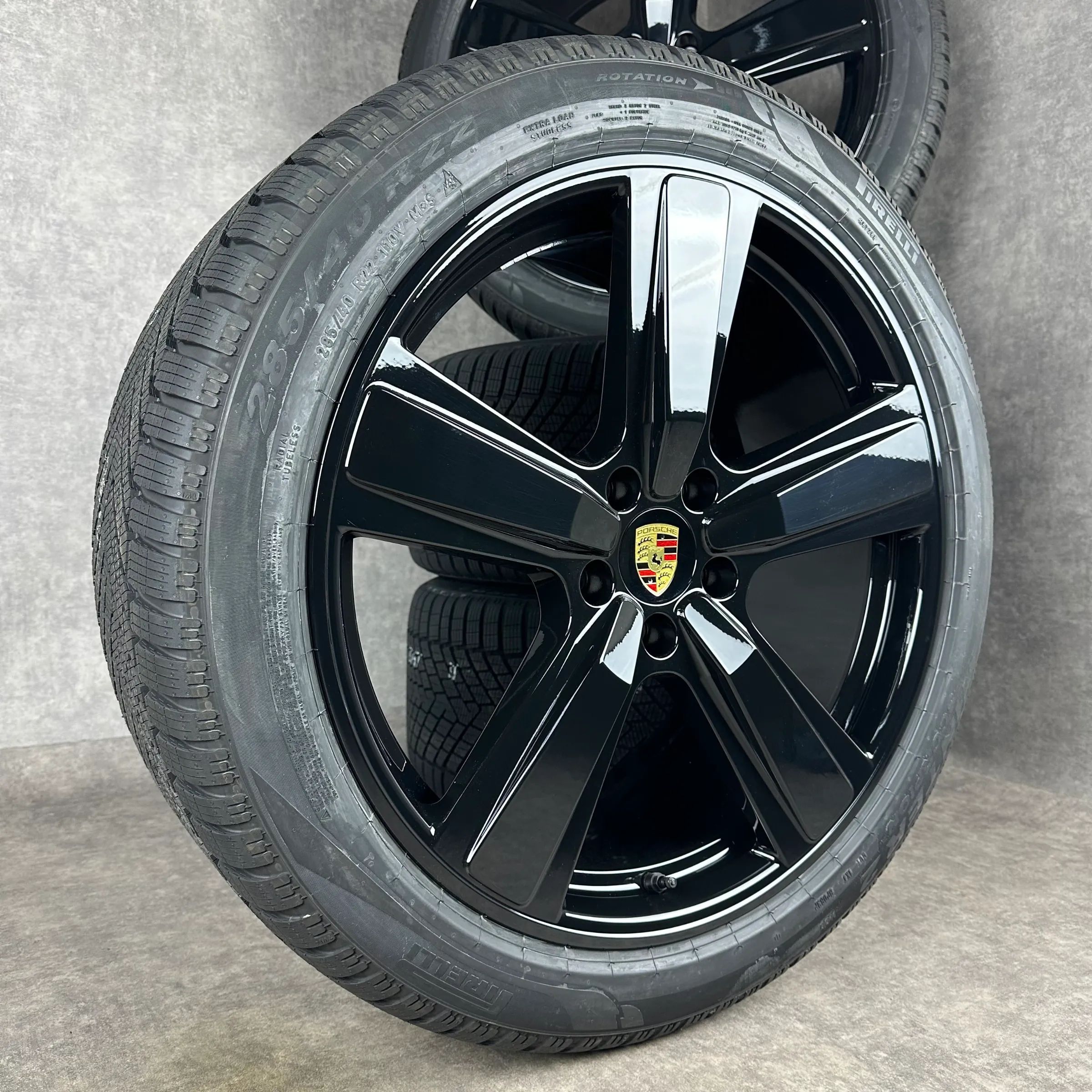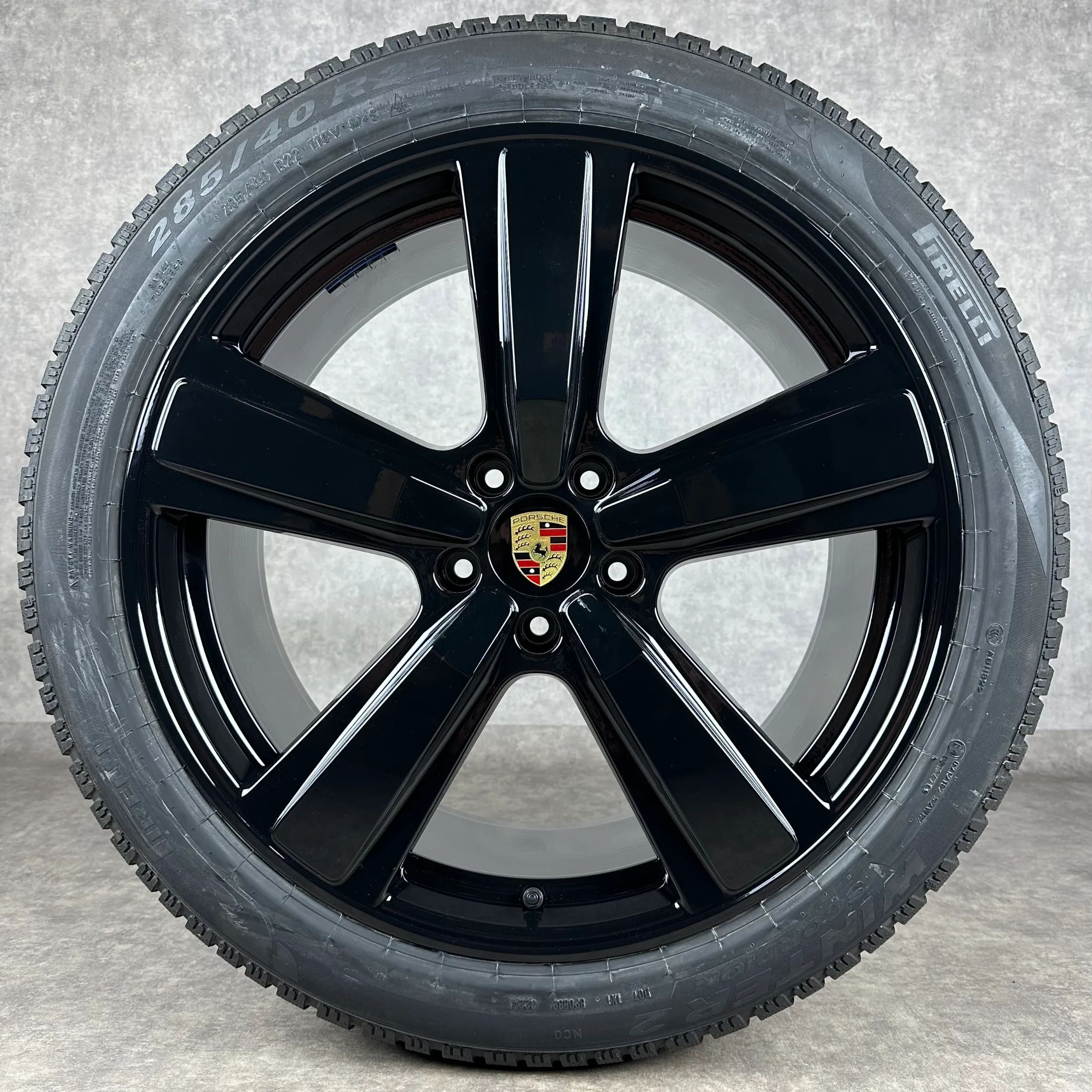 4x Original PORSCHE Cayenne Coupé (E3 II) 22 Exclusive Design Felgen Winterkompletträder schwarz hochglanz VA Dimension: 10Jx22 ET48 Teilenummer: 9Y0601025CP 285 40 R22 110V Pirelli Scorpion Winter 2 NC0, neu HA Dimension: 11,5Jx22 ET52 Teilenummer: 9Y3601025CE 315 35 R22 111V Pirelli Scorpion Winte