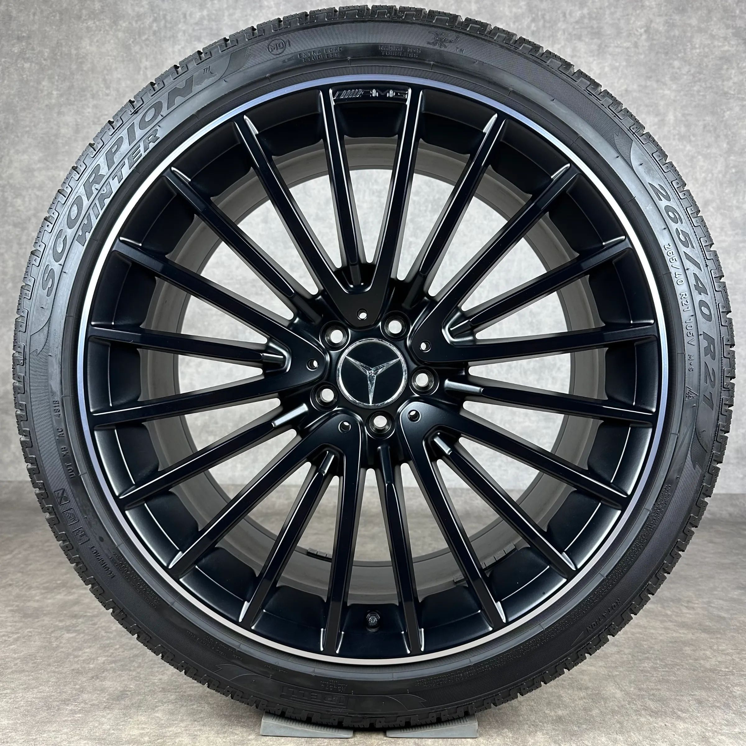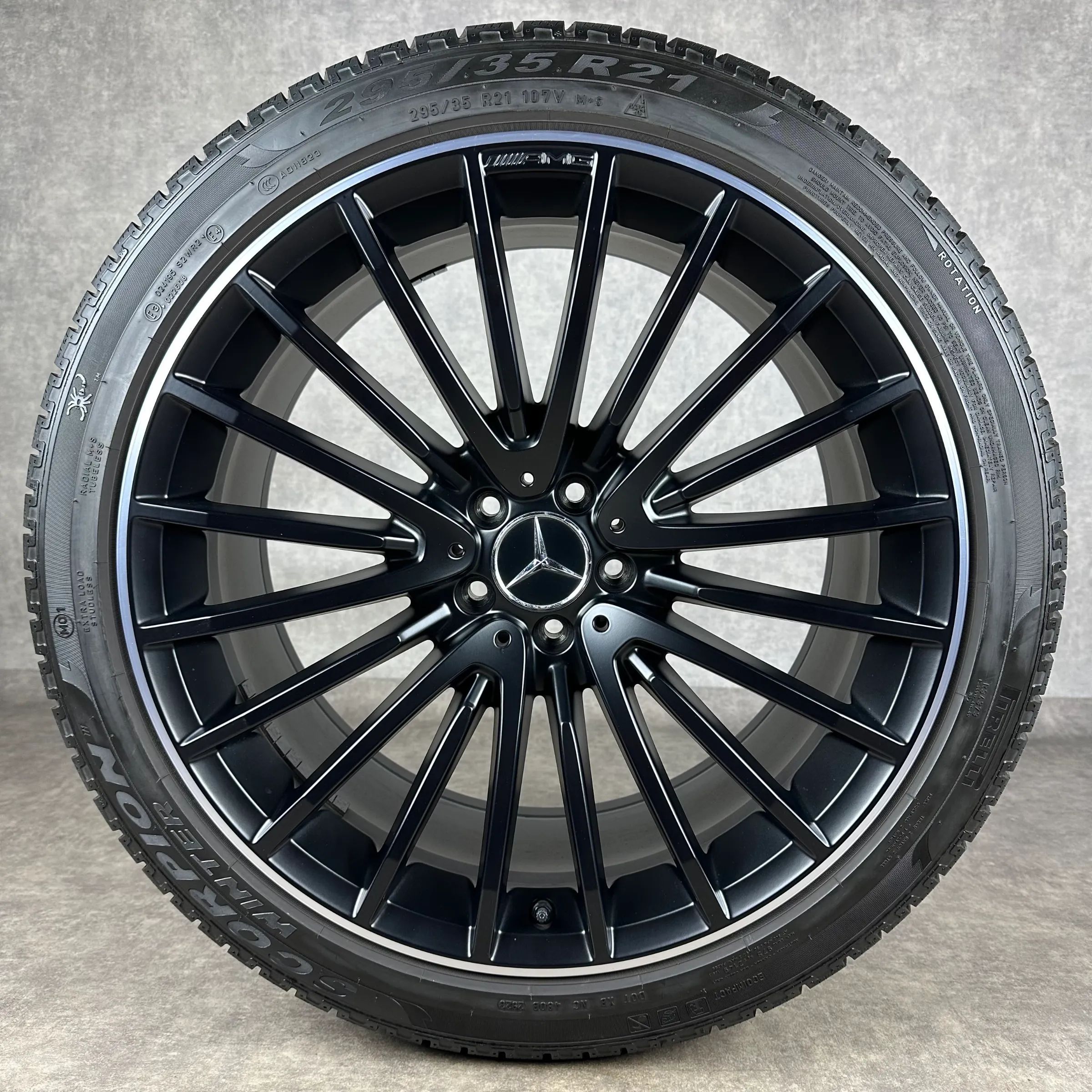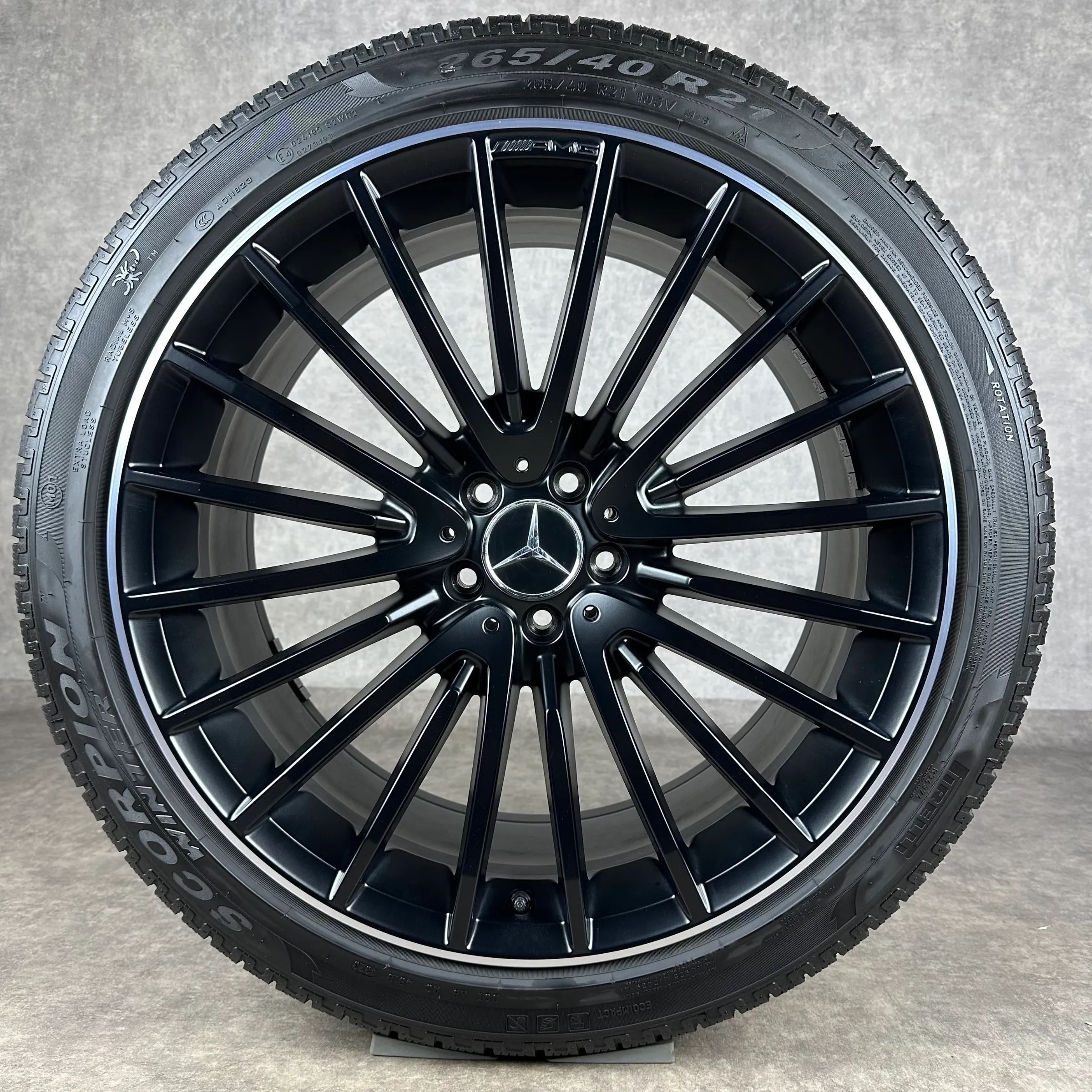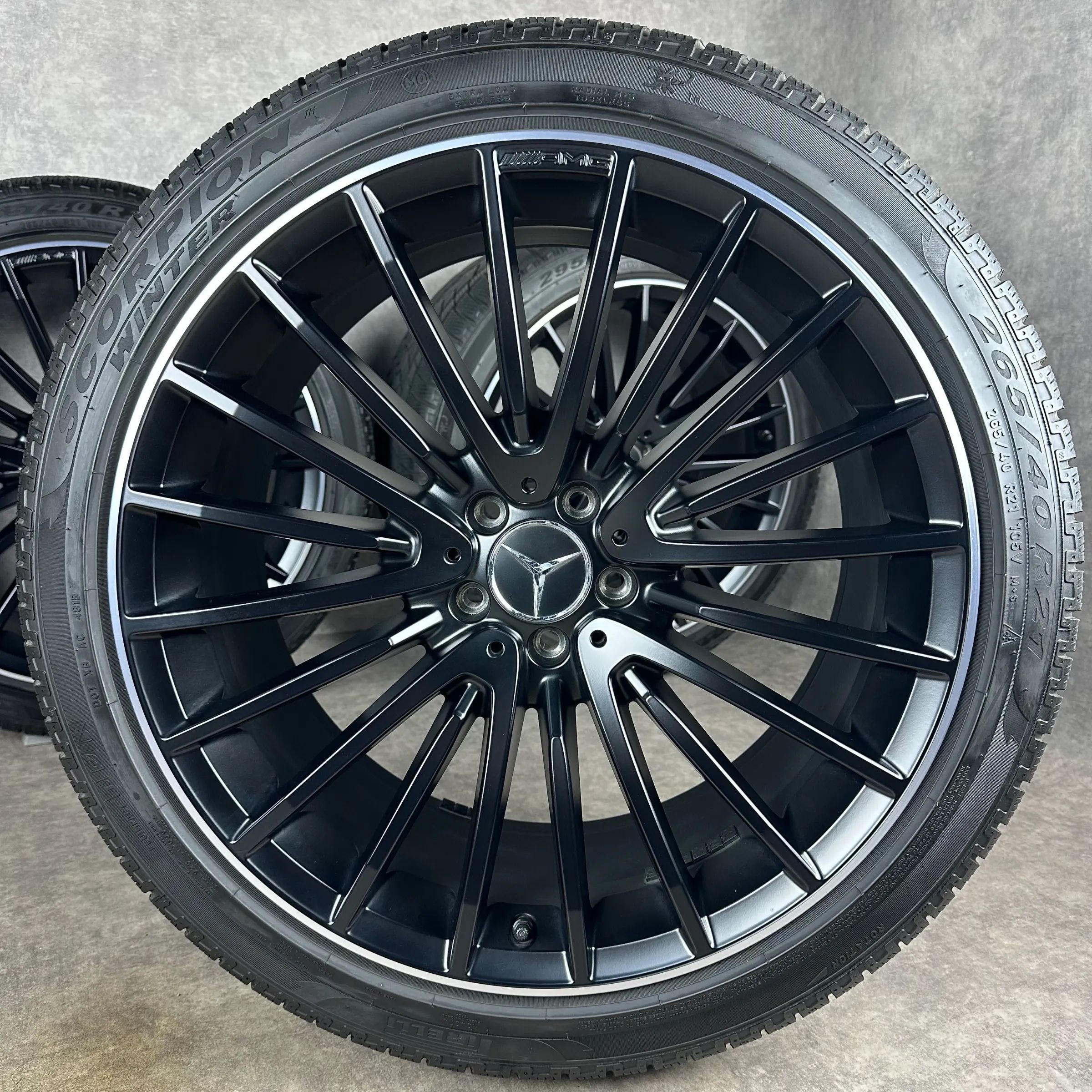4x Original MERCEDES 21 AMG Vielspeichen-Rad Felgen Winterkompletträder schwarz seidenglanz inkl. glanzdrehbereiche Original Lack VA Dimension: 9,5Jx21 ET30 Teilenummer: A2534015900 265 40 R21 105V Pirelli Scorpion Winter MO1 MO, gebraucht, Profil 5,6mm HA Dimension: 10Jx21 ET28 Teilenummer: A253401