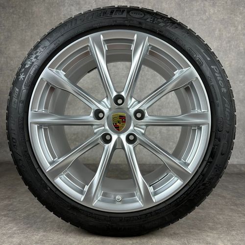 4x Original PORSCHE 718 Boxster 718 Cayman (982) 19 Boxster S Felgen Winterkompletträder silber Original Lack VA Dimension: 8Jx19 ET57 Teilenummer: 982601025 235 40 R19 92V Michelin Pilot Alpin 4 N0, gebraucht, Profil 8,3mm HA Dimension: 10Jx19 ET45 Teilenummer: 982601025AM 265 40 R19 98V Michelin P