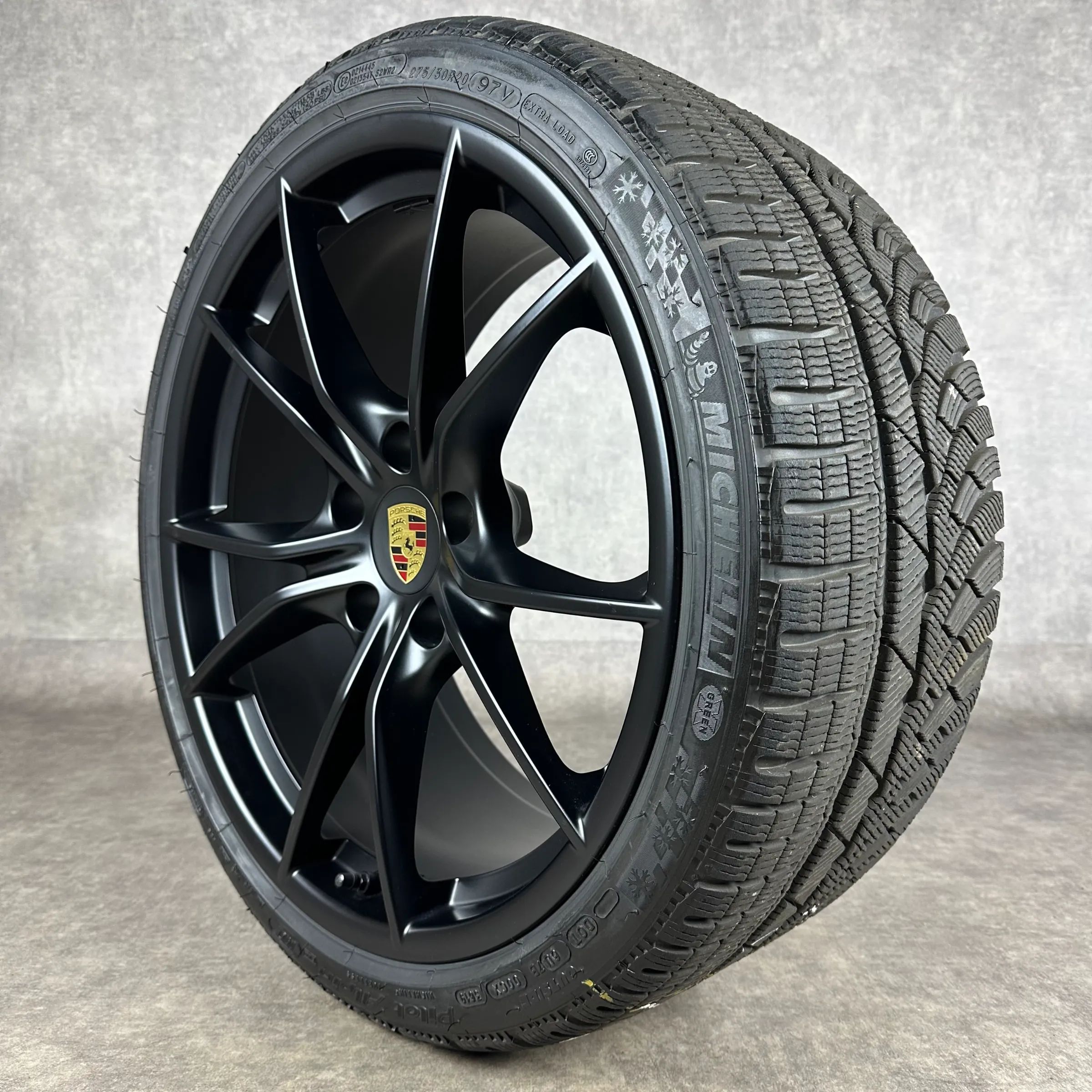 4x Original PORSCHE 718 Boxster 718 Cayman (982) 20 Carrera SIV Felgen Winterkompletträder schwarz seidenglanz Original Lack VA Dimension: 8Jx20 ET57 Teilenummer: 982601025AJ 235 35 R20 92V Michelin Pilot Alpin 4 PA4 N0, gebraucht, Profil 7,7mm HA Dimension: 10Jx20 ET45 Teilenummer: 982601025AK 275