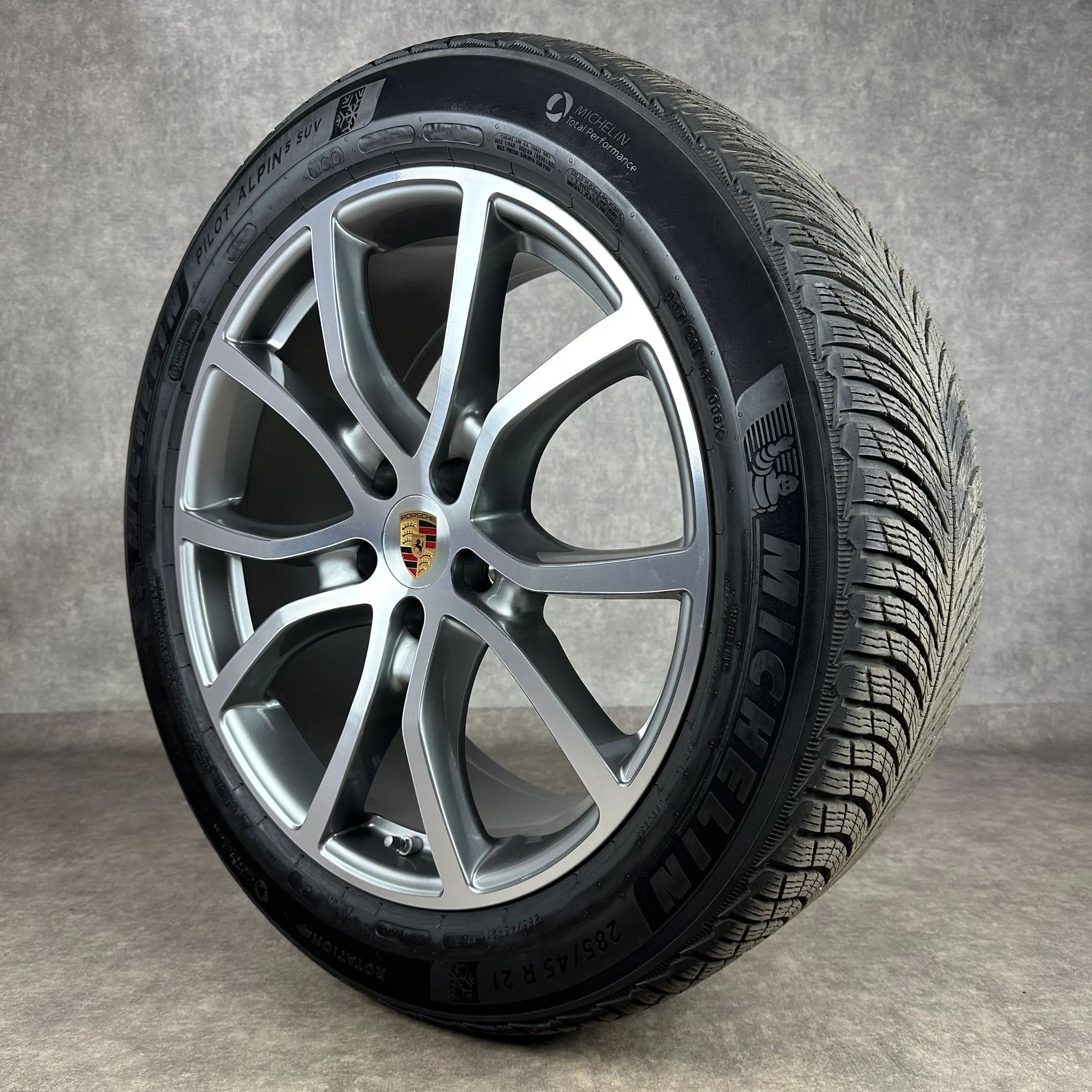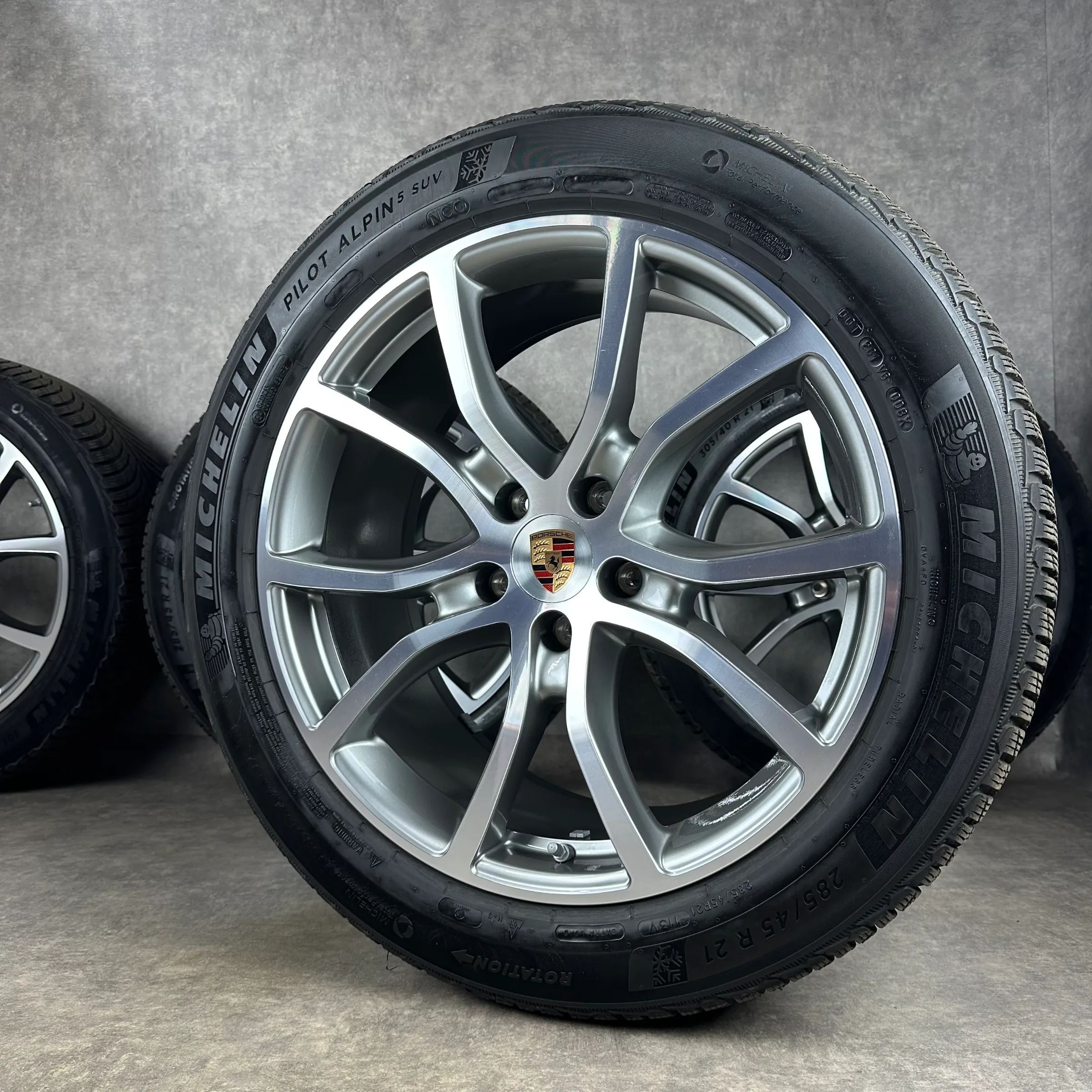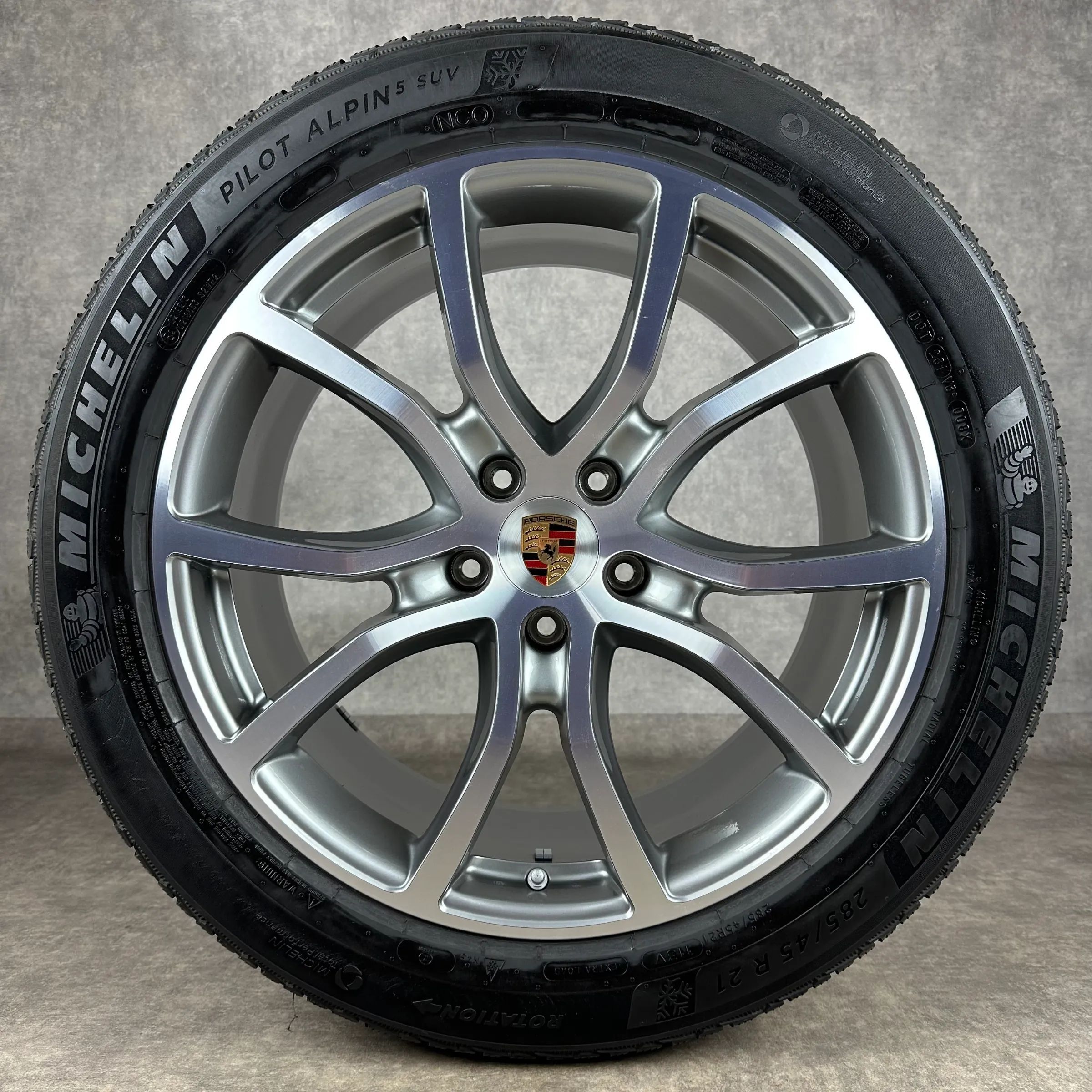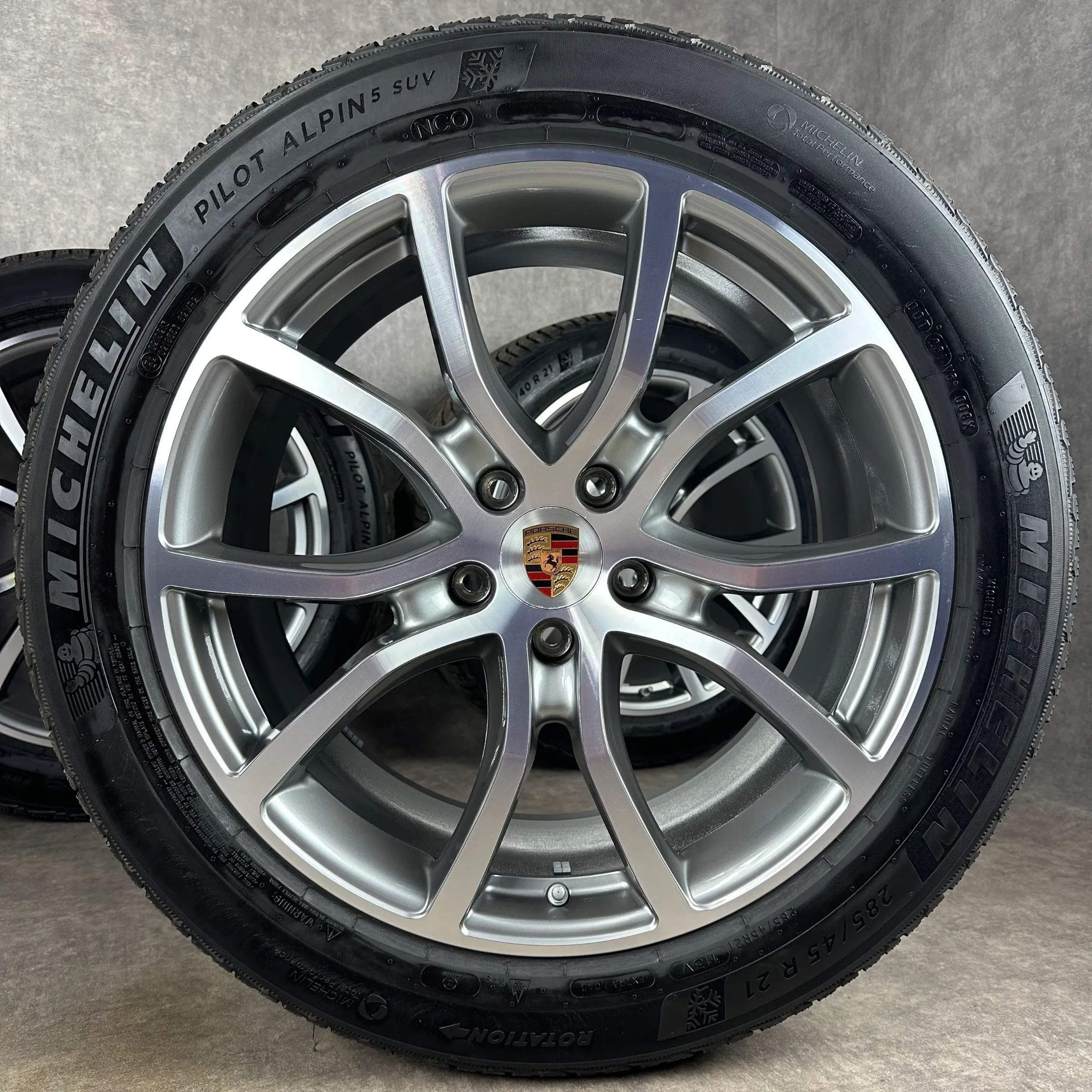 4x Original PORSCHE Cayenne Coupé (E3 II) 21 Exclusive Design Felgen Winterkompletträder platinsilber inklusive glanzdrehbereichen Original Lack VA Dimension: 9,5Jx21 ET46 Teilenummer: 9Y0601025DB 285 45 R21 113V Michelin Pilot Alpin PA5 SUV NC0, gebraucht, Profil 6,6mm HA Dimension: 11Jx21 ET49 Tei