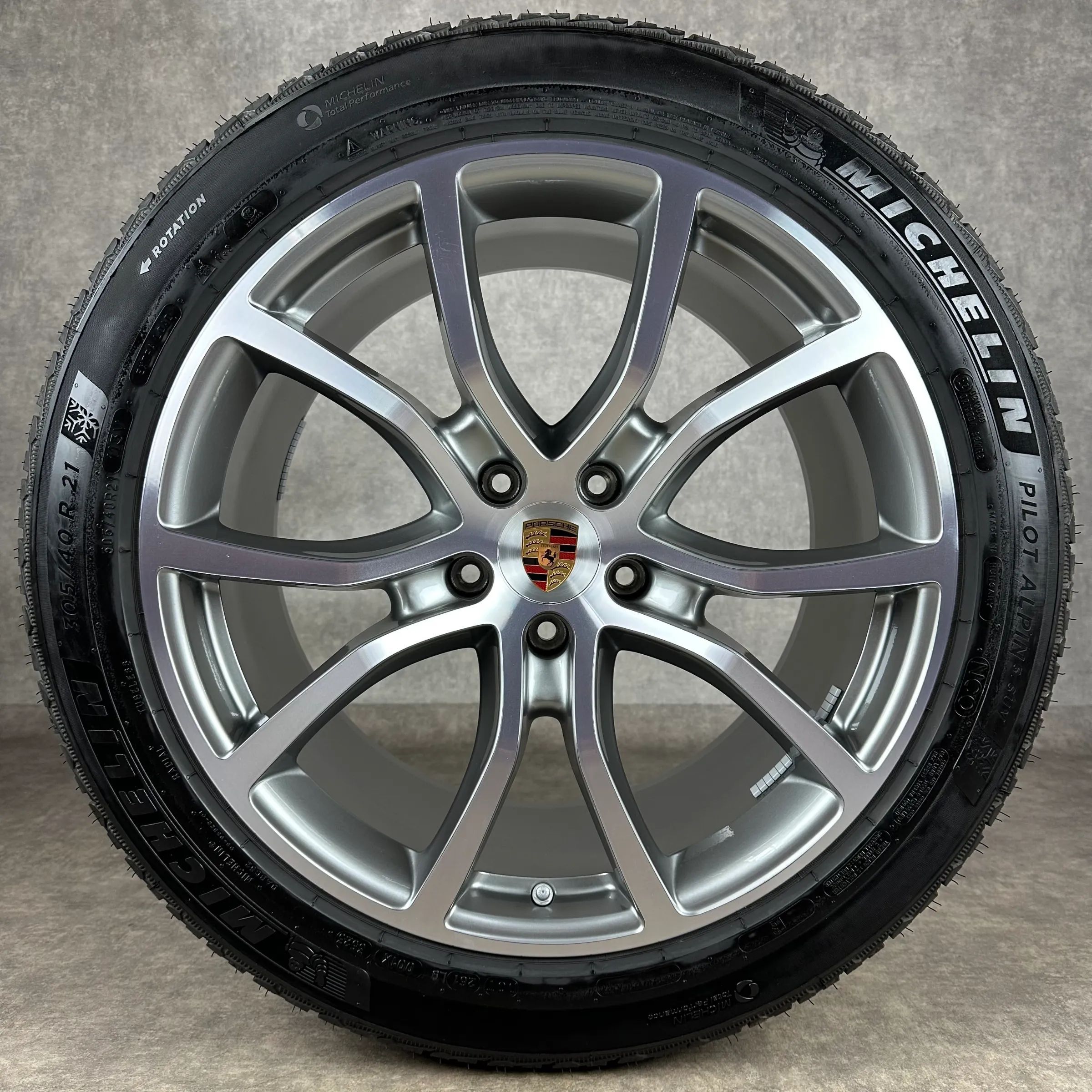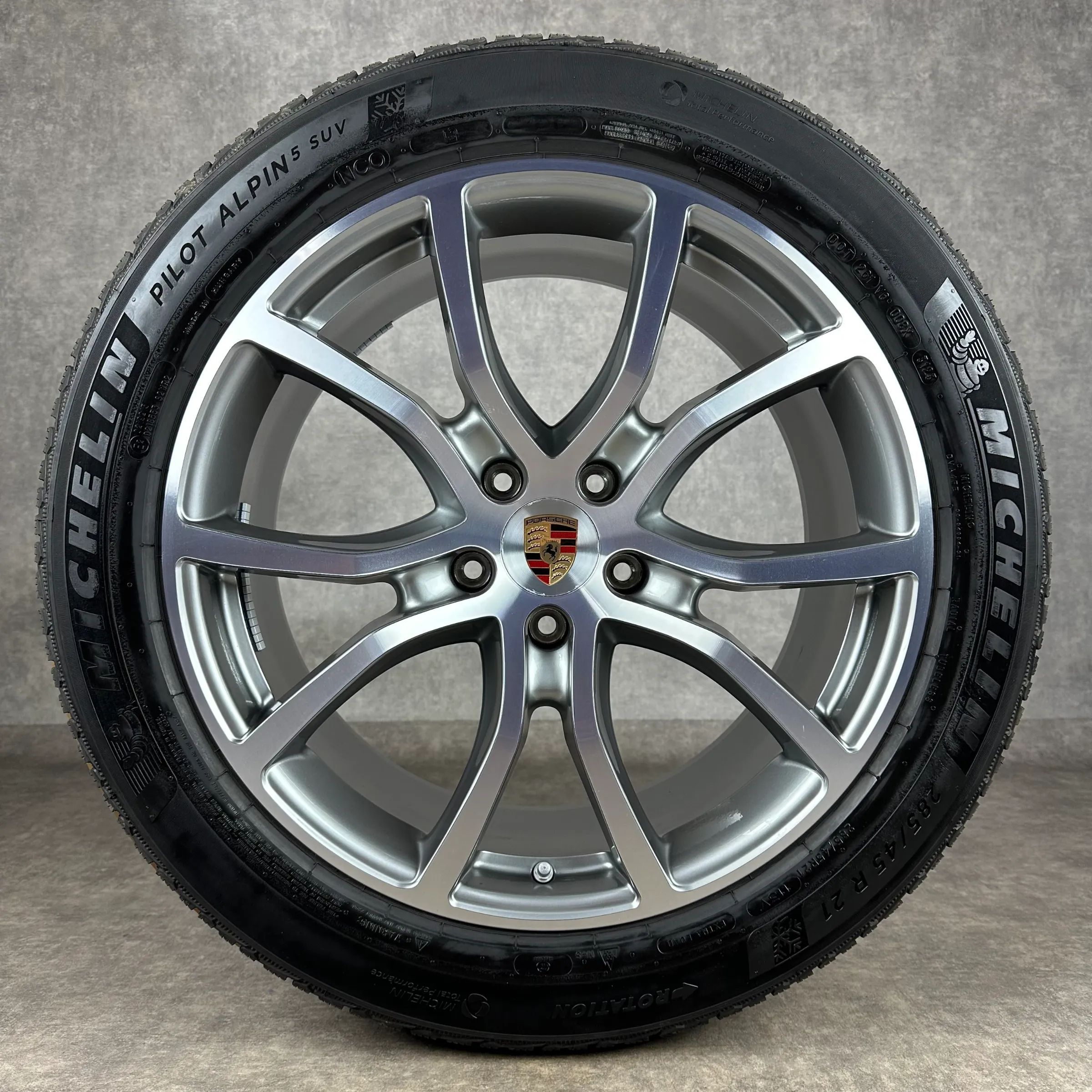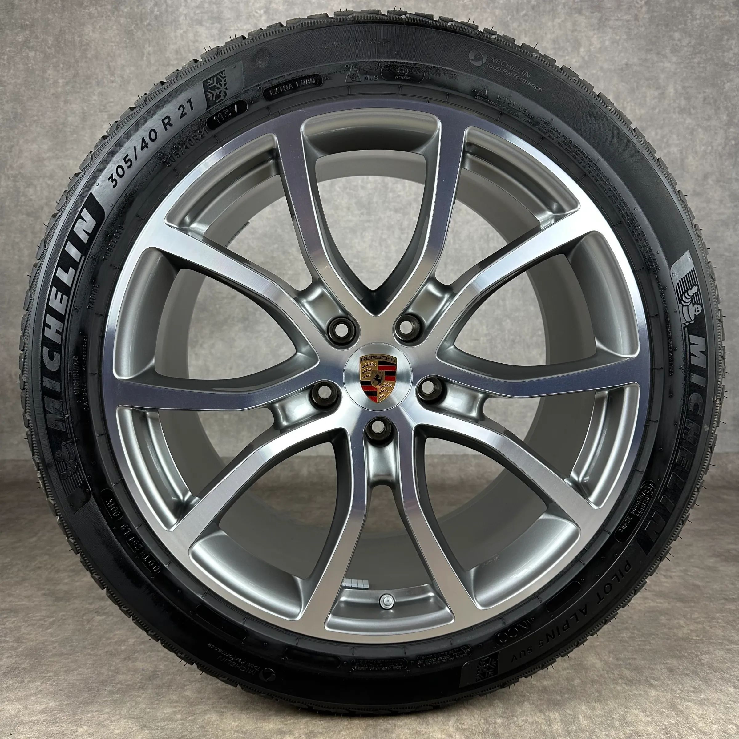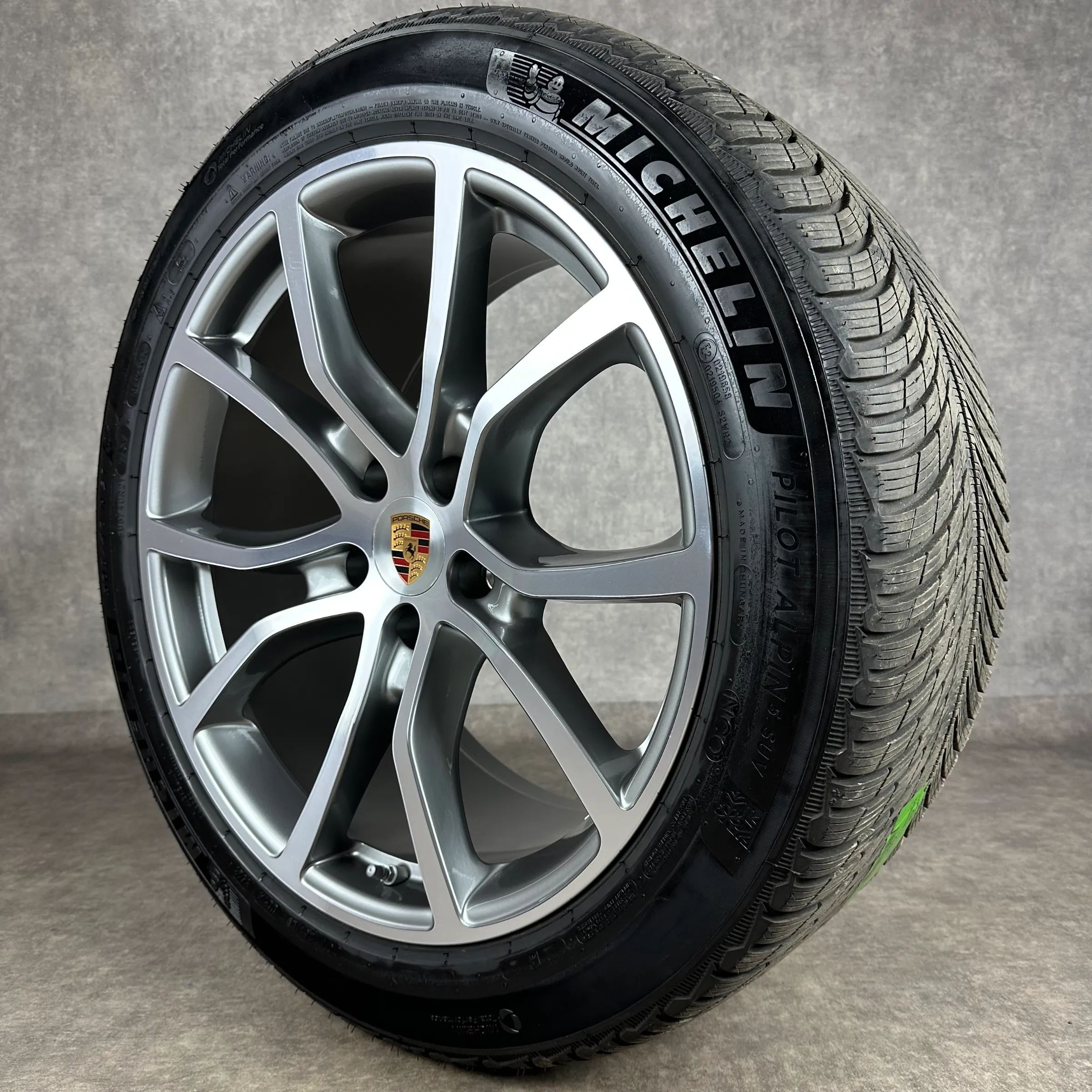 4x Original PORSCHE Cayenne Coupé (E3 II) 21 Exclusive Design Felgen Winterkompletträder platinsilber inklusive glanzdrehbereichen Original Lack VA Dimension: 9,5Jx21 ET46 Teilenummer: 9Y0601025DB 285 45 R21 113V Michelin Pilot Alpin PA5 SUV NC0, gebraucht, Profil 6,6mm HA Dimension: 11Jx21 ET49 Tei