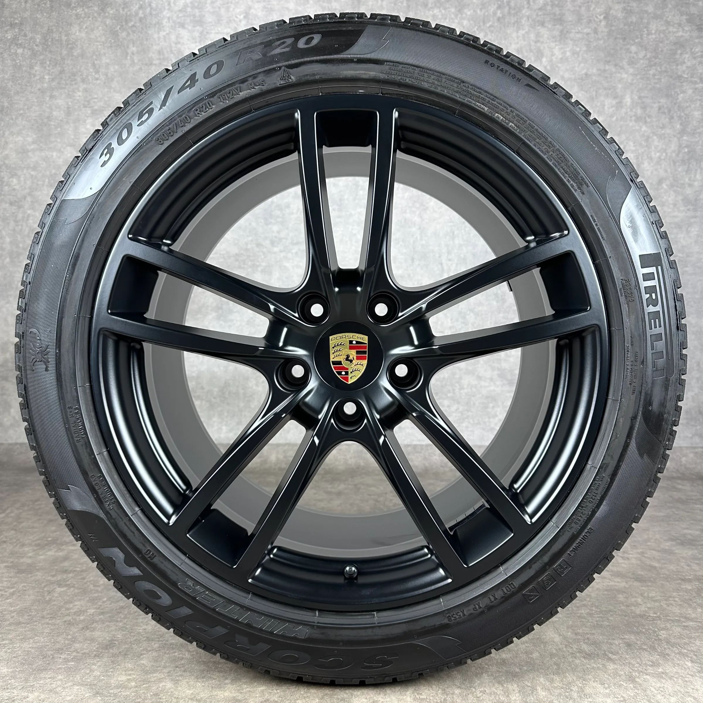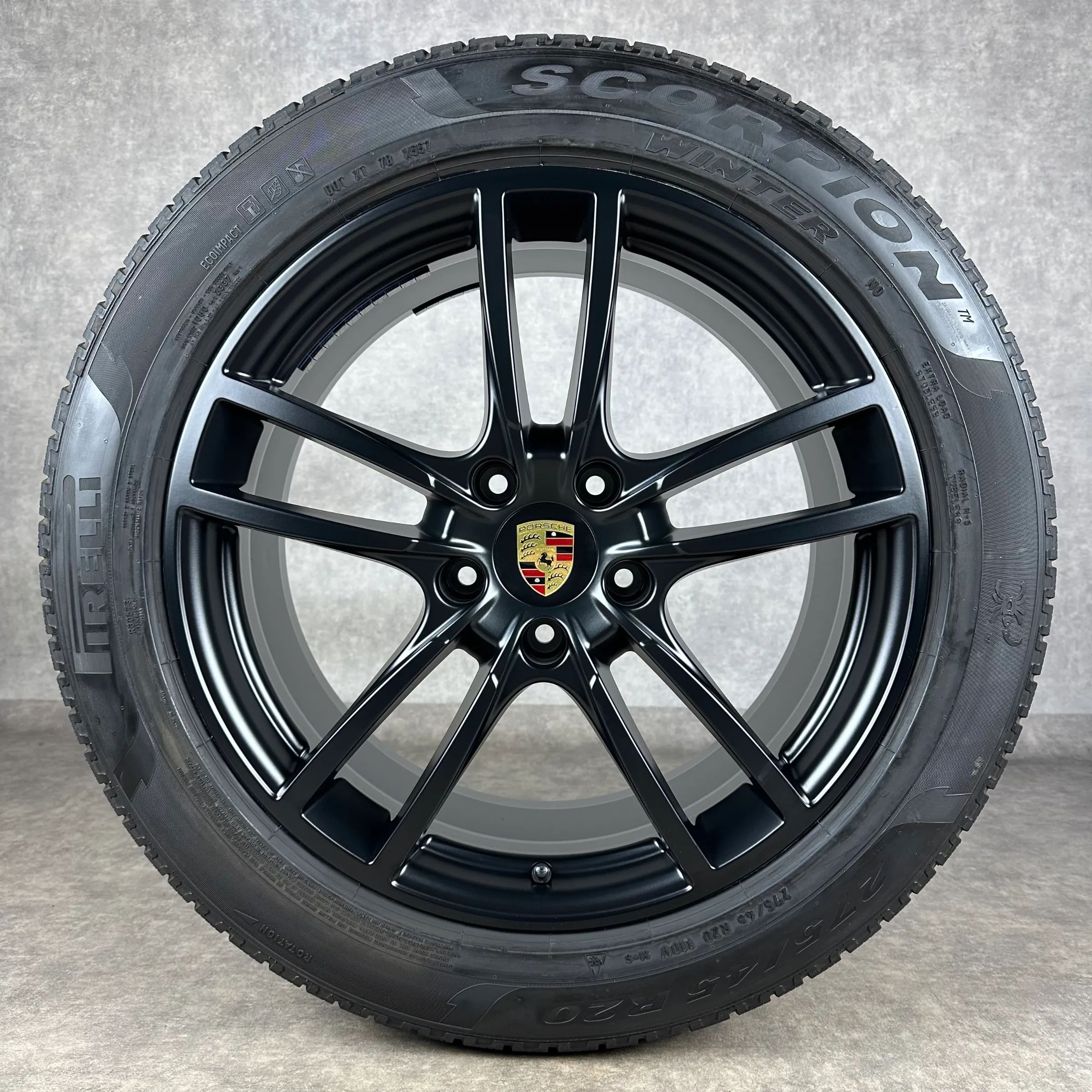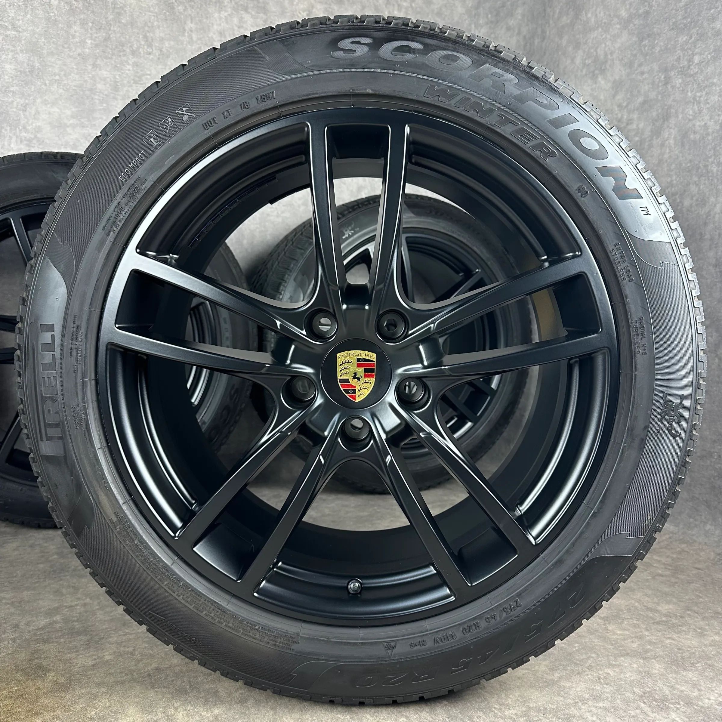4x Original PORSCHE Cayenne Coupé (E3) 20 Sport Felgen Winterkompletträder schwarz seidenglanz VA Dimension: 9Jx20 ET50 Teilenummer: 9Y0601025D 275 45 R20 110V Pirelli Scorpion Winter N0, gebraucht, Profil 6,6mm HA Dimension: 10,5Jx20 ET55 Teilenummer: 9Y3601025AA 305 40 R20 112V Pirelli Scorpion Wi