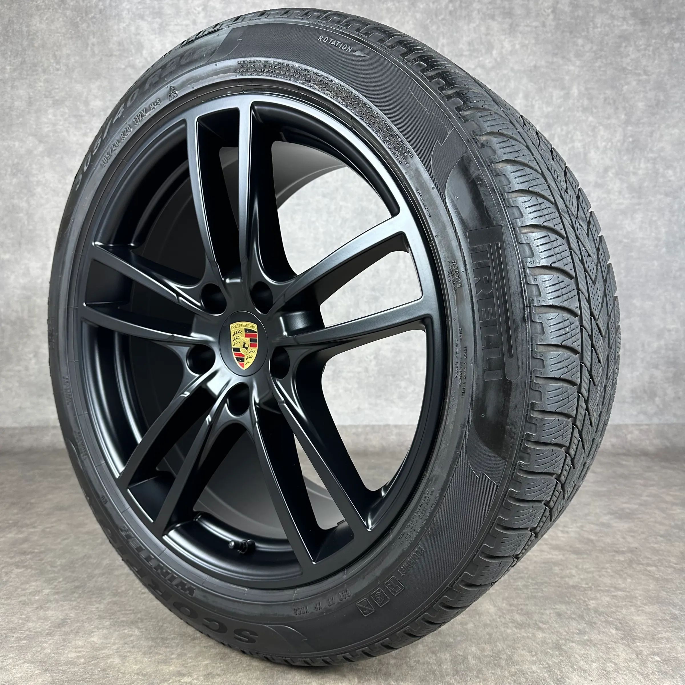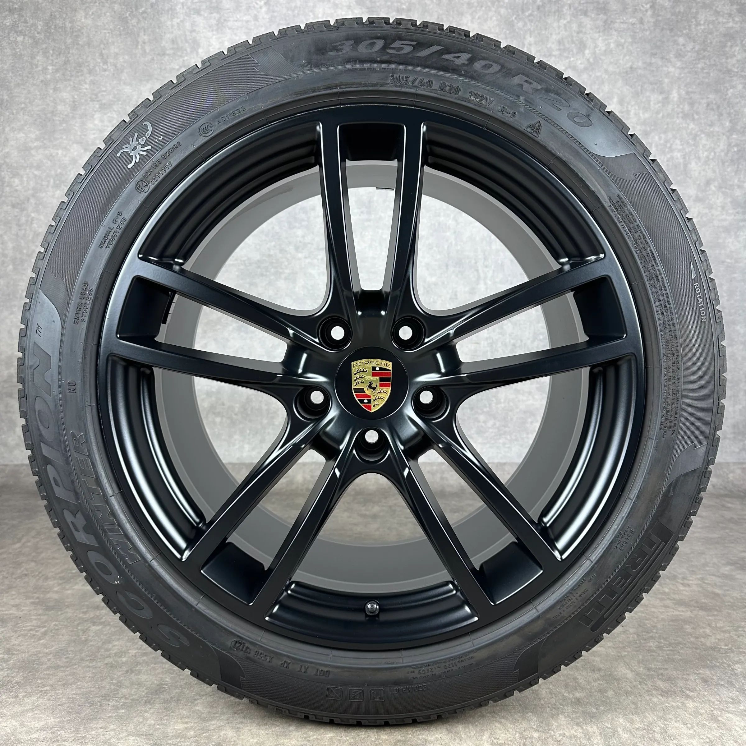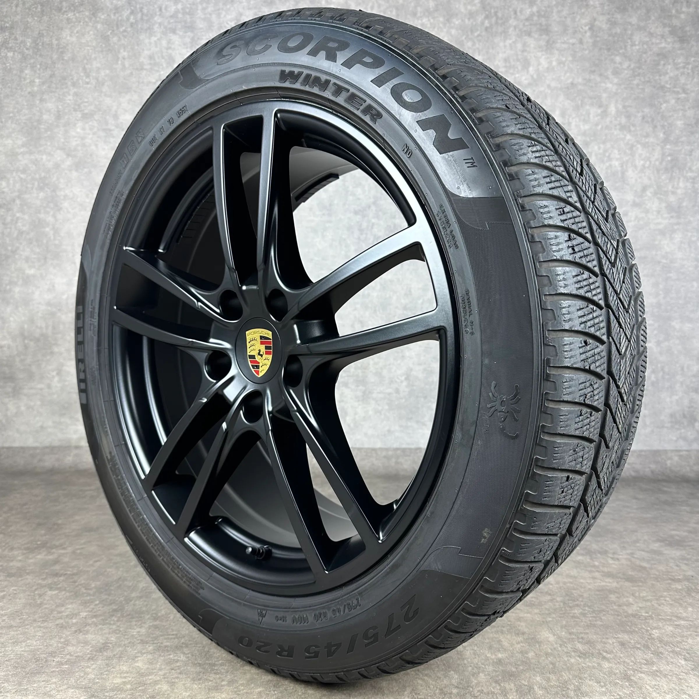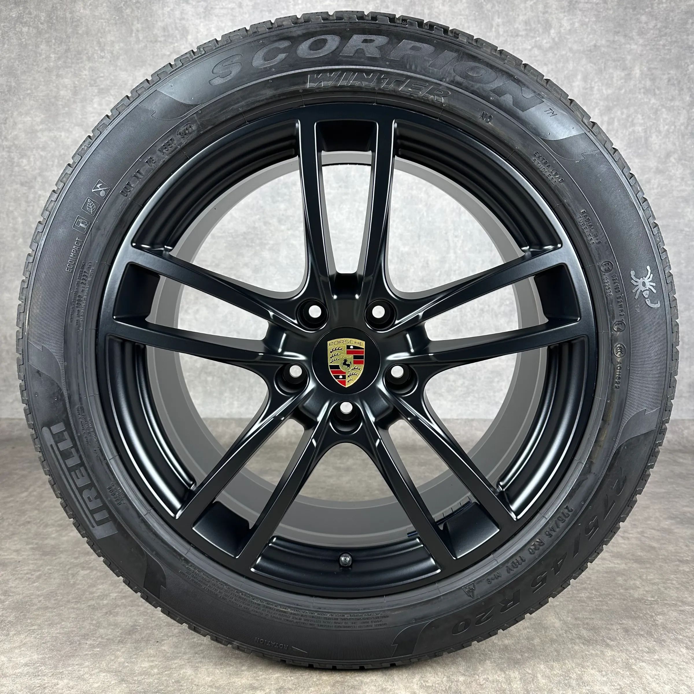 4x Original PORSCHE Cayenne Coupé (E3) 20 Sport Felgen Winterkompletträder schwarz seidenglanz VA Dimension: 9Jx20 ET50 Teilenummer: 9Y0601025D 275 45 R20 110V Pirelli Scorpion Winter N0, gebraucht, Profil 6,6mm HA Dimension: 10,5Jx20 ET55 Teilenummer: 9Y3601025AA 305 40 R20 112V Pirelli Scorpion Wi