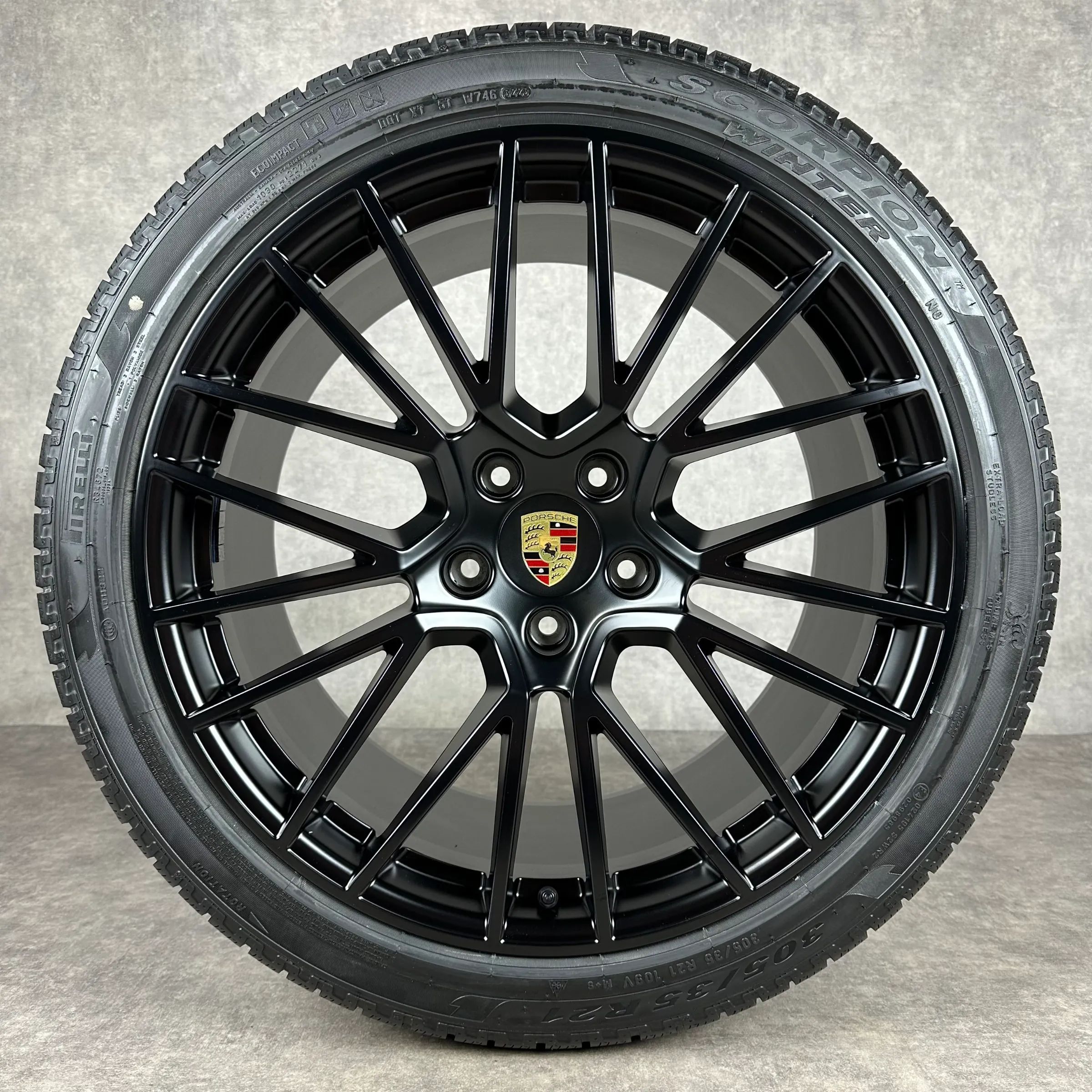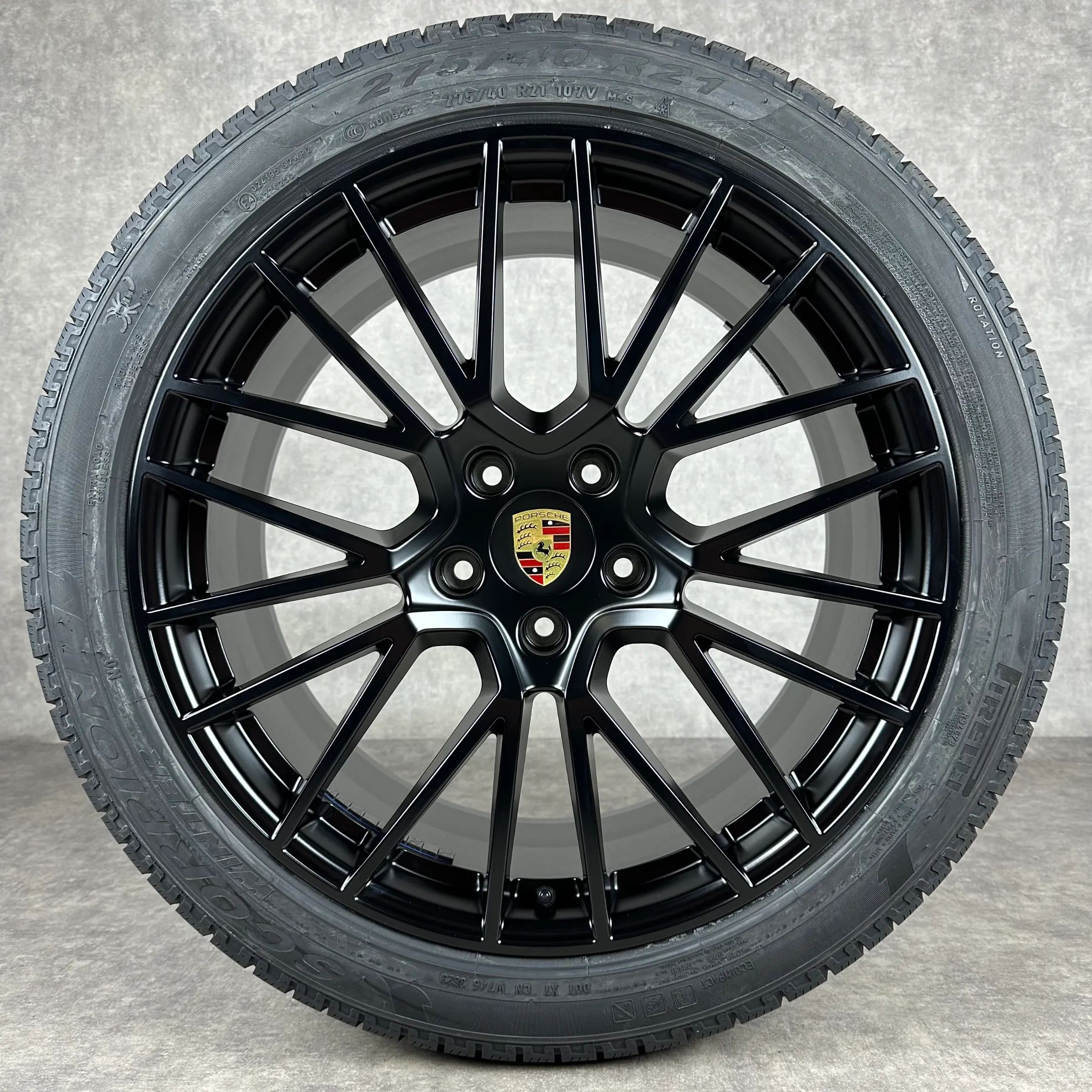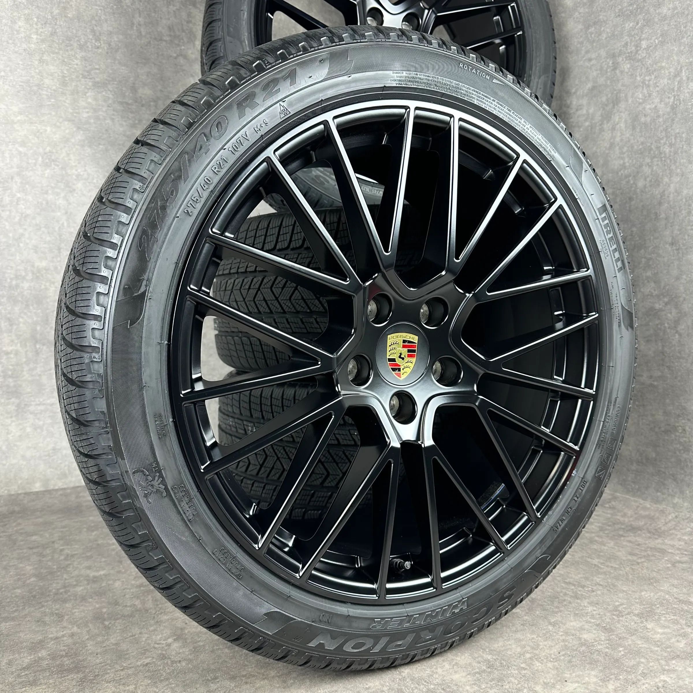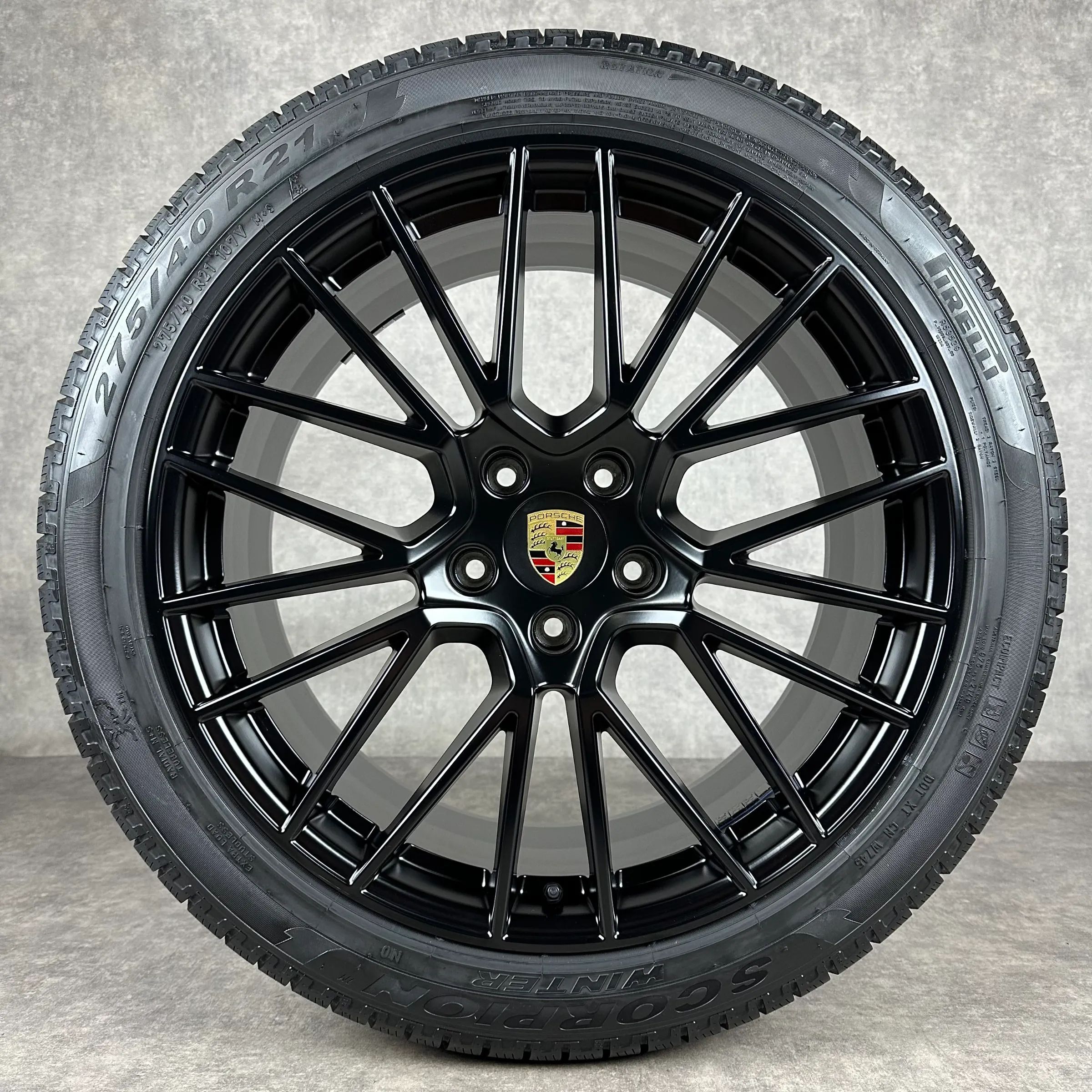 4x Original PORSCHE Cayenne Coupé (E3) 21 RS Spyder Felgen Winterkompletträder schwarz seidenglanz VA Dimension: 9,5Jx21 ET46 Teilenummer: 9Y0601025BF 275 40 R21 107V Pirelli Scorpion Winter N0, neu HA Dimension: 11Jx21 ET49 Teilenummer: 9Y3601025AC 305 35 R21 109V Pirelli Scorpion Winter N0, neu An