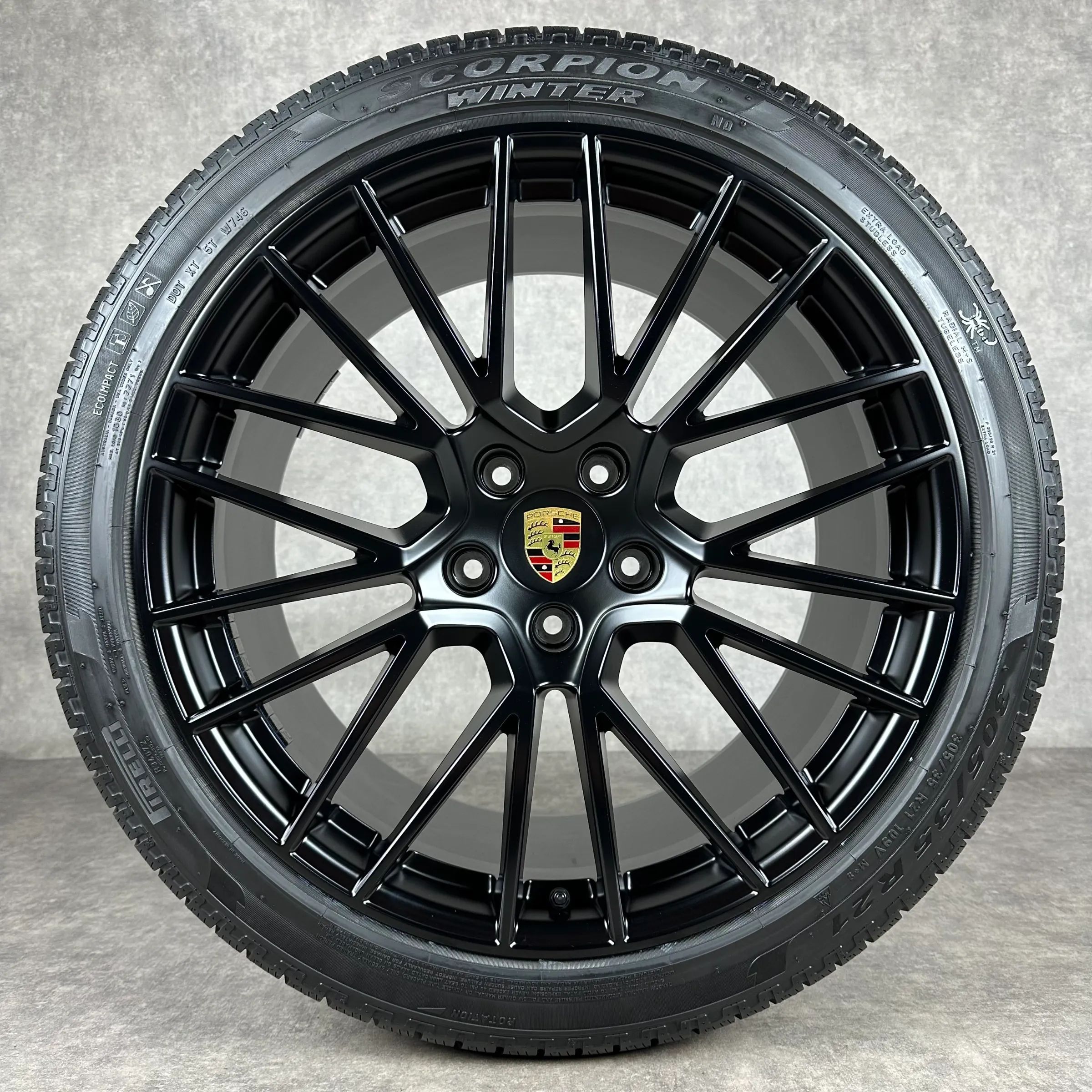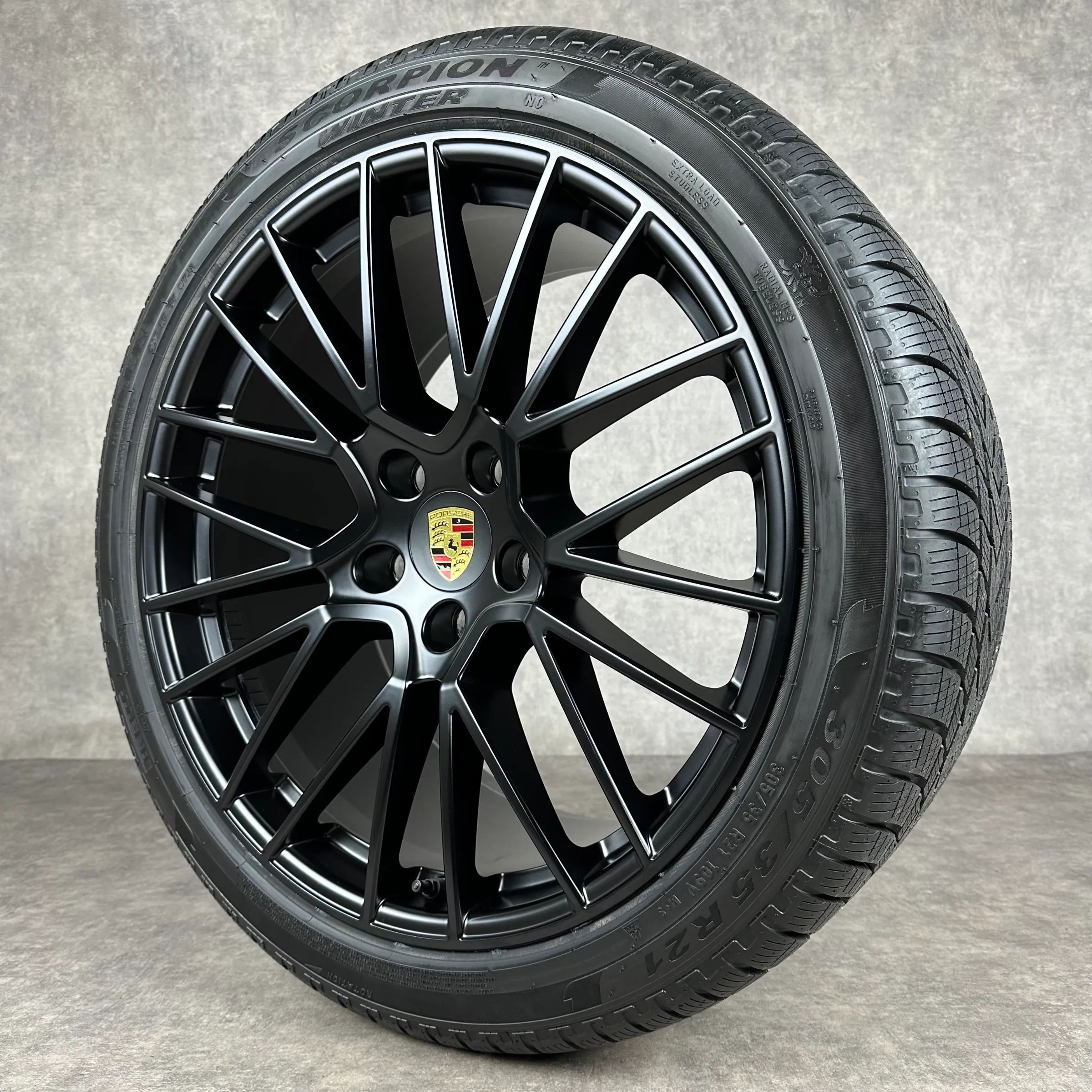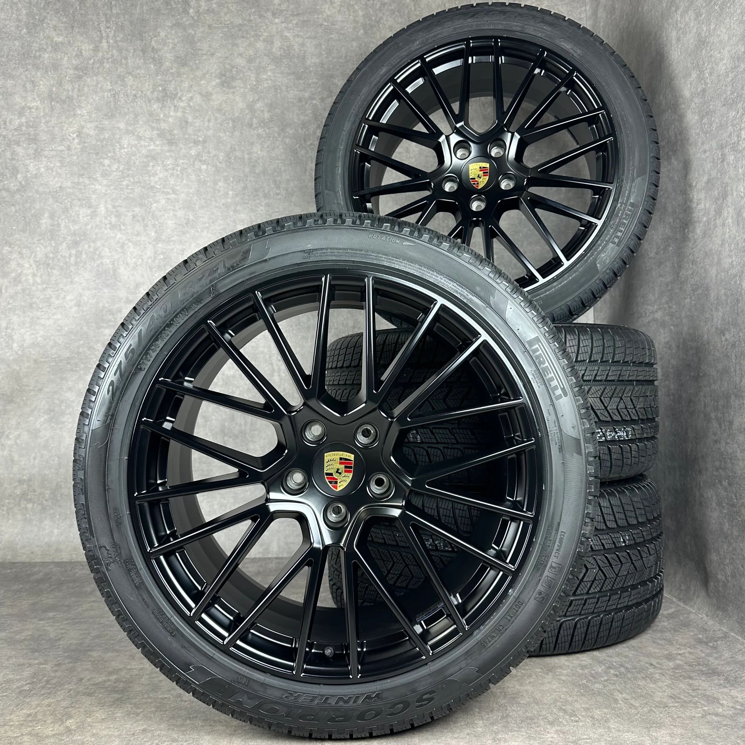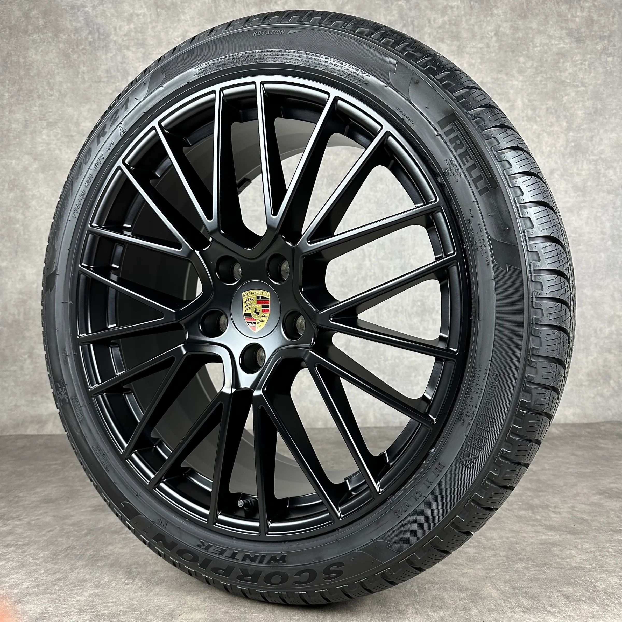 4x Original PORSCHE Cayenne Coupé (E3) 21 RS Spyder Felgen Winterkompletträder schwarz seidenglanz VA Dimension: 9,5Jx21 ET46 Teilenummer: 9Y0601025BF 275 40 R21 107V Pirelli Scorpion Winter N0, neu HA Dimension: 11Jx21 ET49 Teilenummer: 9Y3601025AC 305 35 R21 109V Pirelli Scorpion Winter N0, neu An