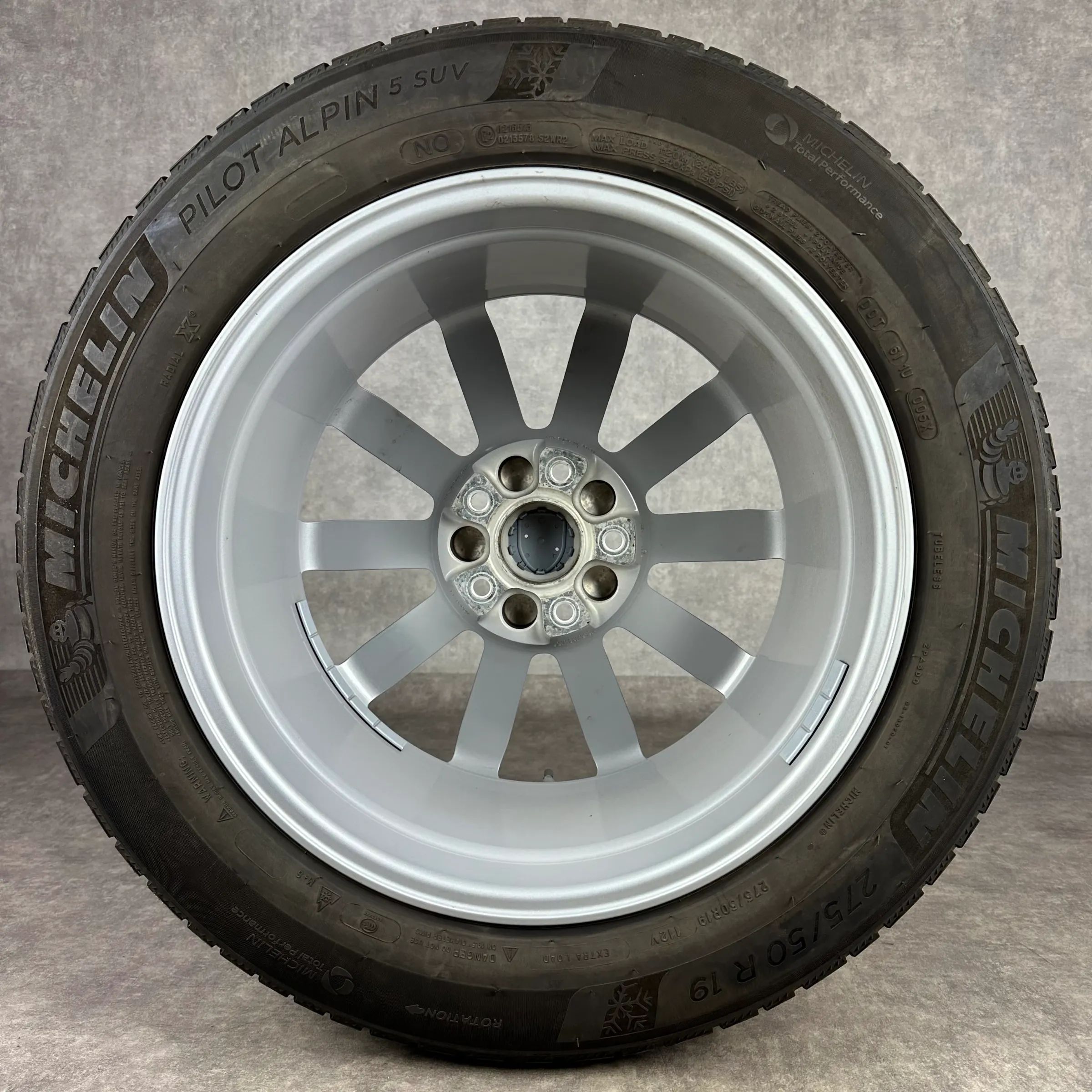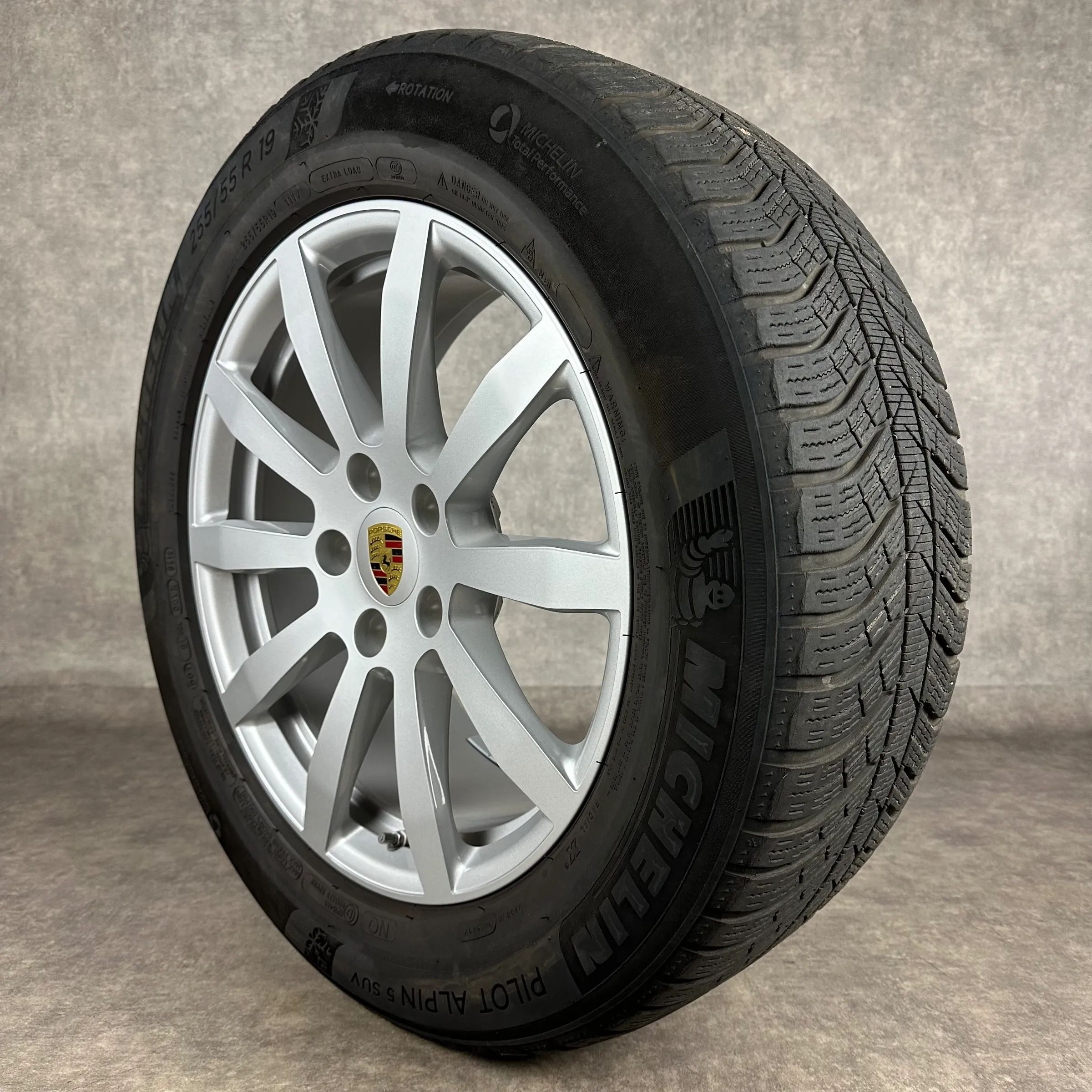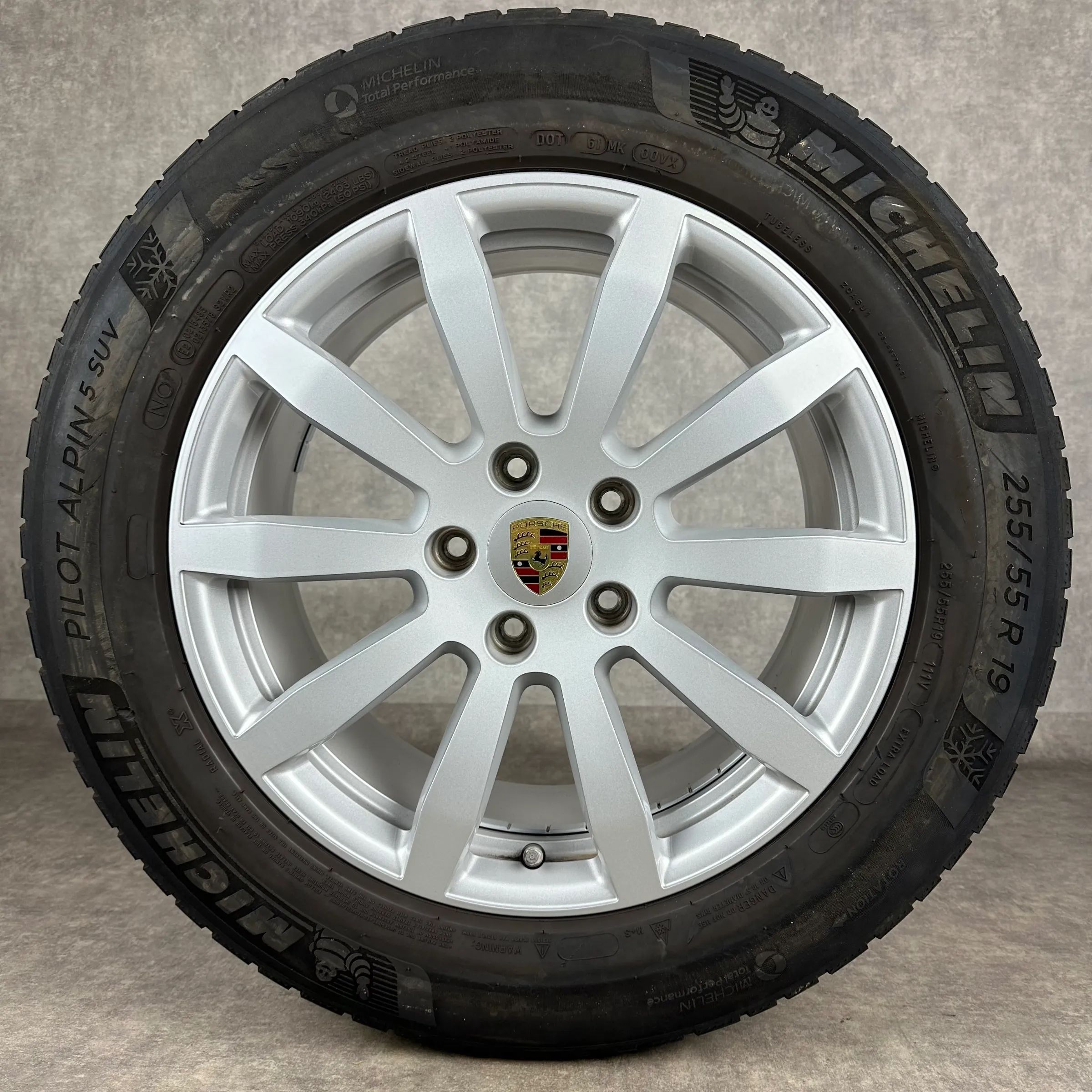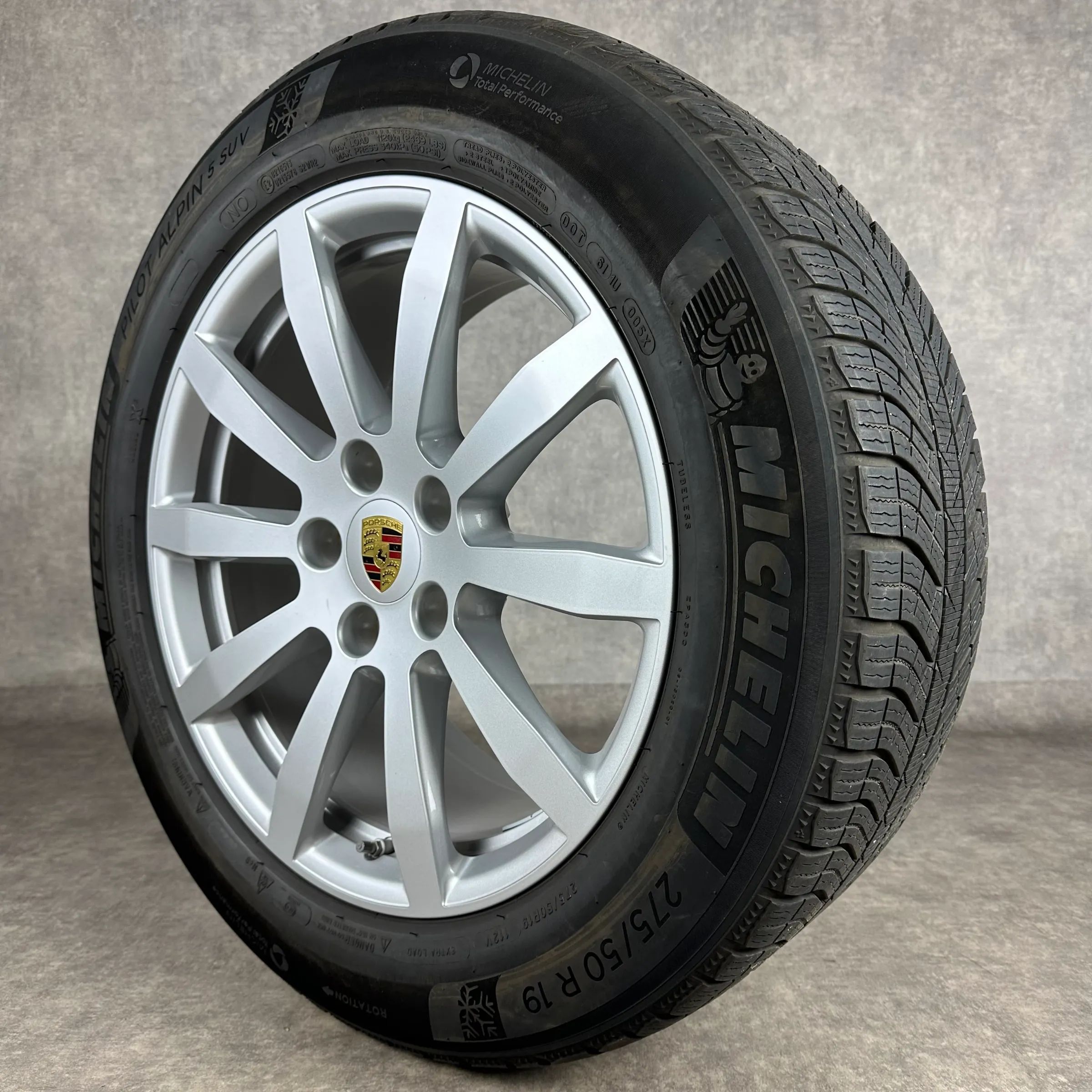 4x Original PORSCHE Cayenne (E3) 19 Cayenne S Felgen Winterkompletträder silber Original Lack VA Dimension: 8,5Jx19 ET47 Teilenummer: 9Y0601025AT 255 55 R19 111V Michelin Pilot Alpin 5 SUV N0, gebraucht, Profil 5,5mm HA Dimension: 9,5Jx19 ET54 Teilenummer: 9Y0601025BA 275 50 R19 112V Michelin Pilot