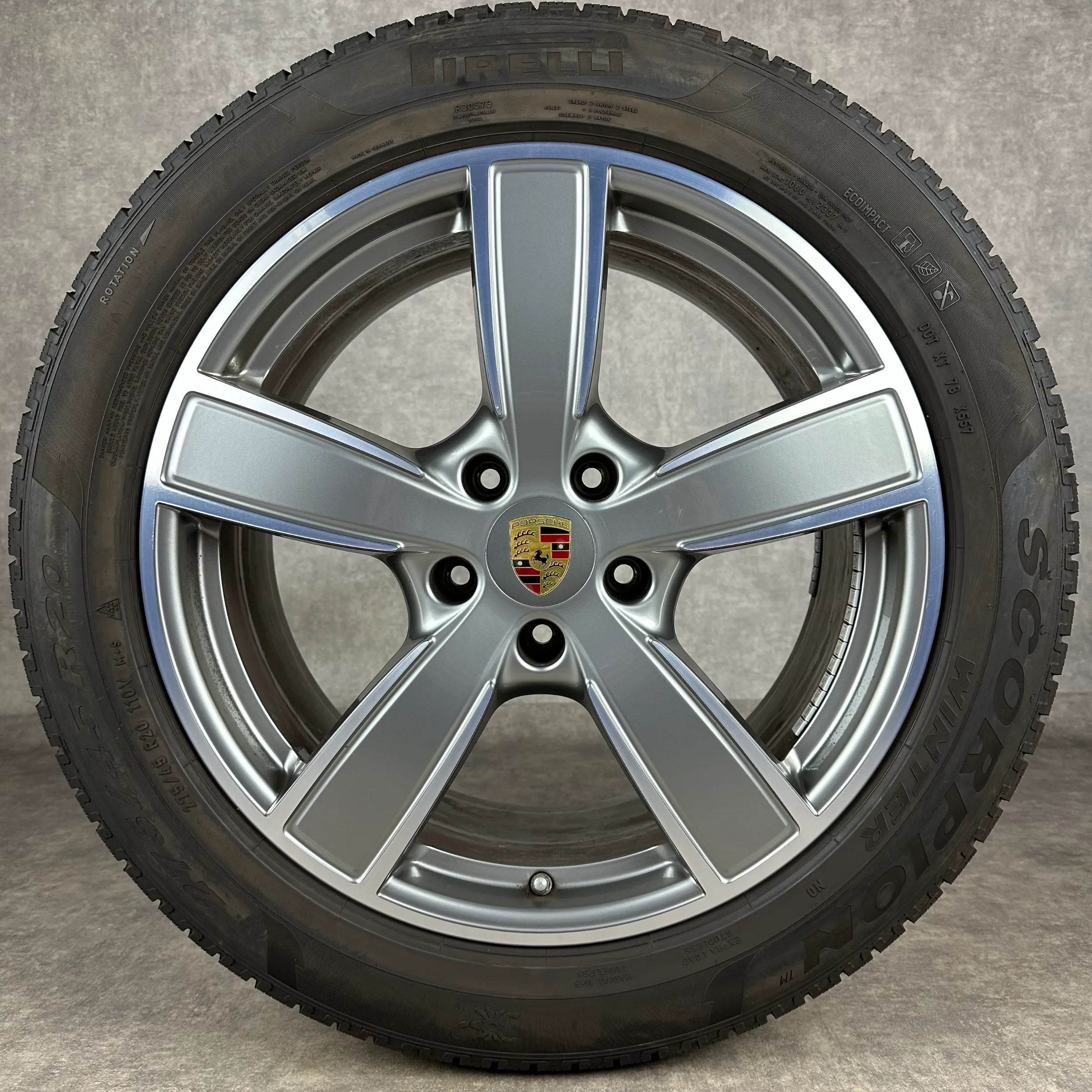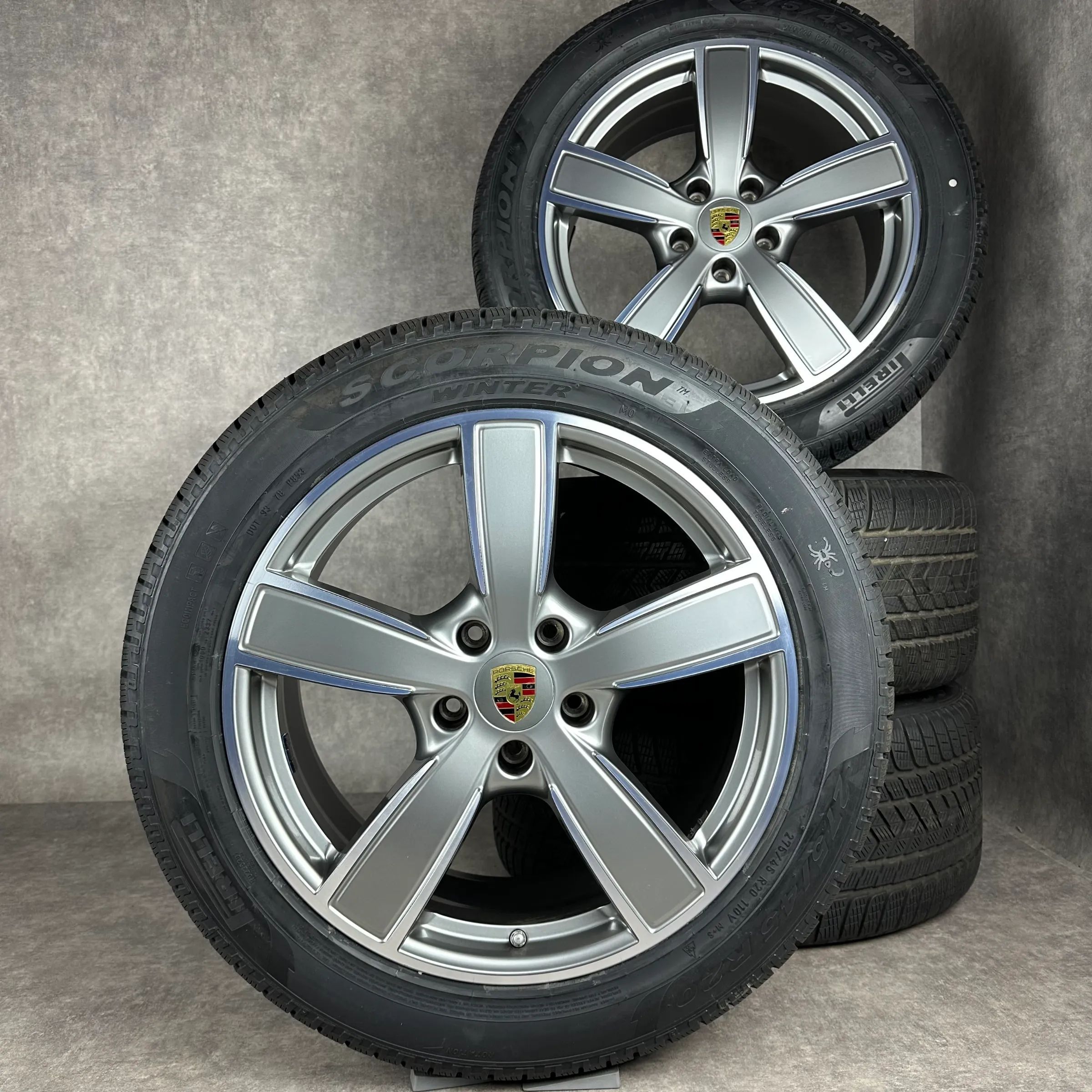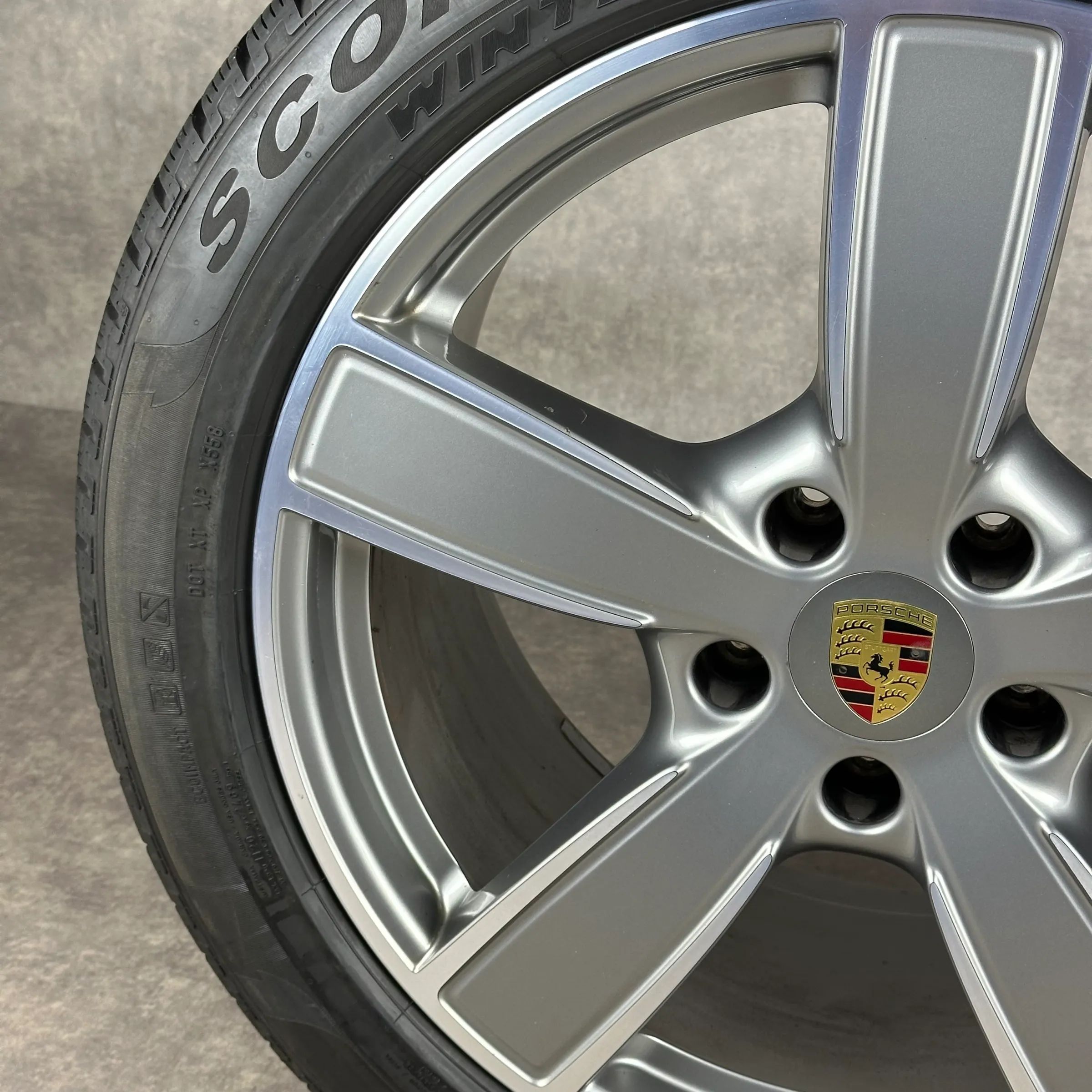 4x Original PORSCHE Cayenne (E3) 20 Sport Classic Felgen Winterkompletträder platinsilber inklusive glanzdrehbereichen Original Lack VA Dimension: 9Jx20 ET50 Teilenummer: 9Y0601025BP 275 45 R20 110V Pirelli Scorpion Winter N0, gebraucht, Profil 7,5mm HA Dimension: 10,5Jx20 ET64 Teilenummer: 9Y060102