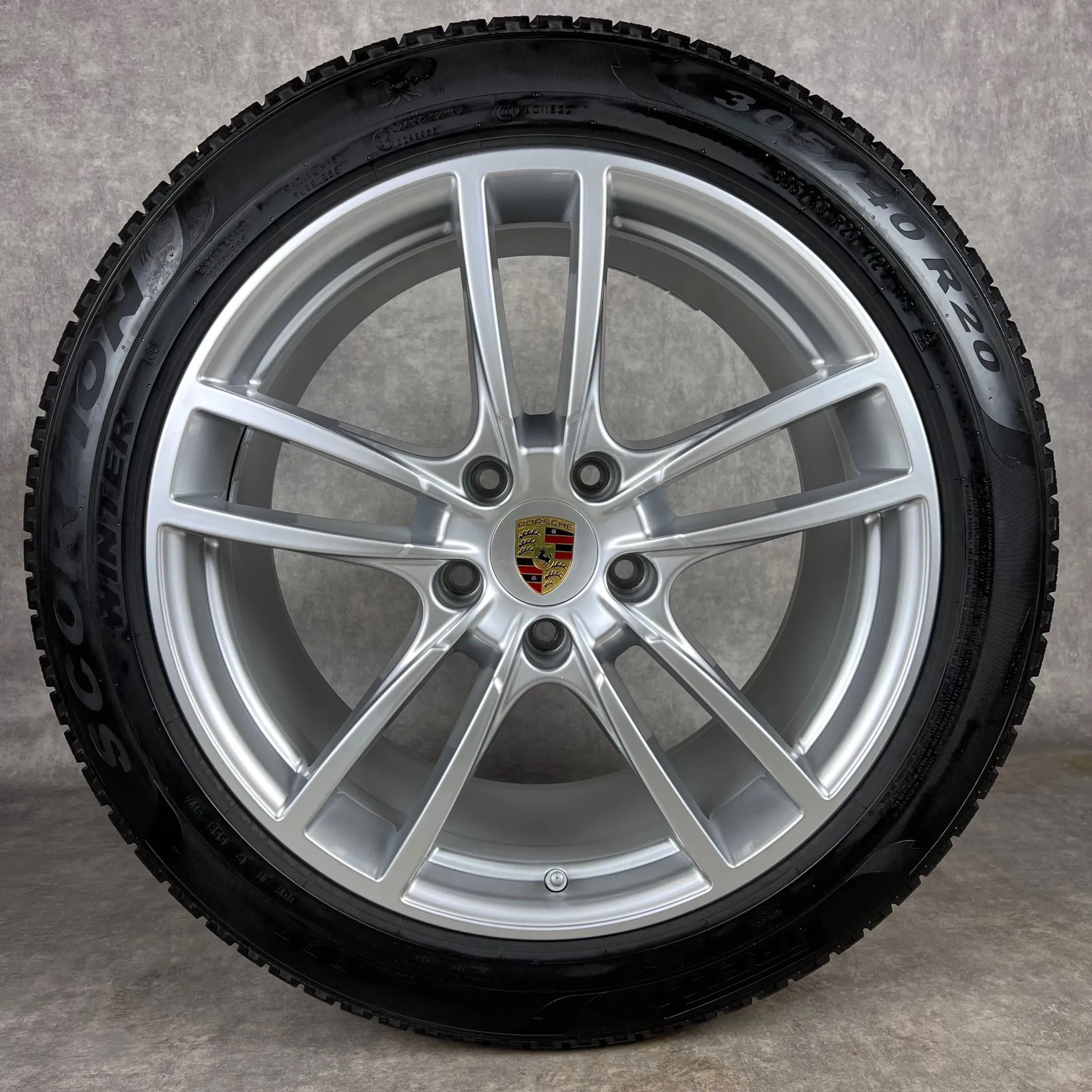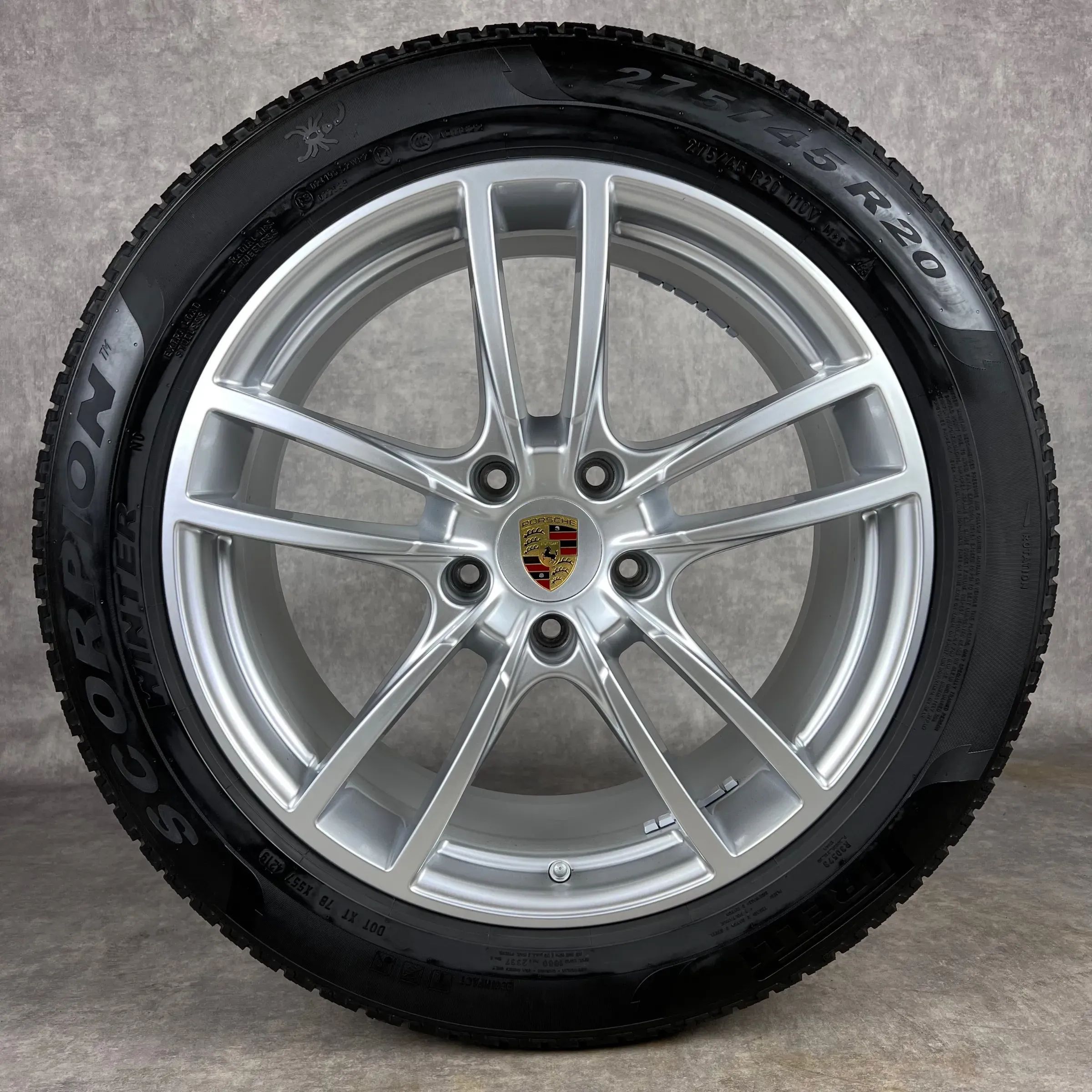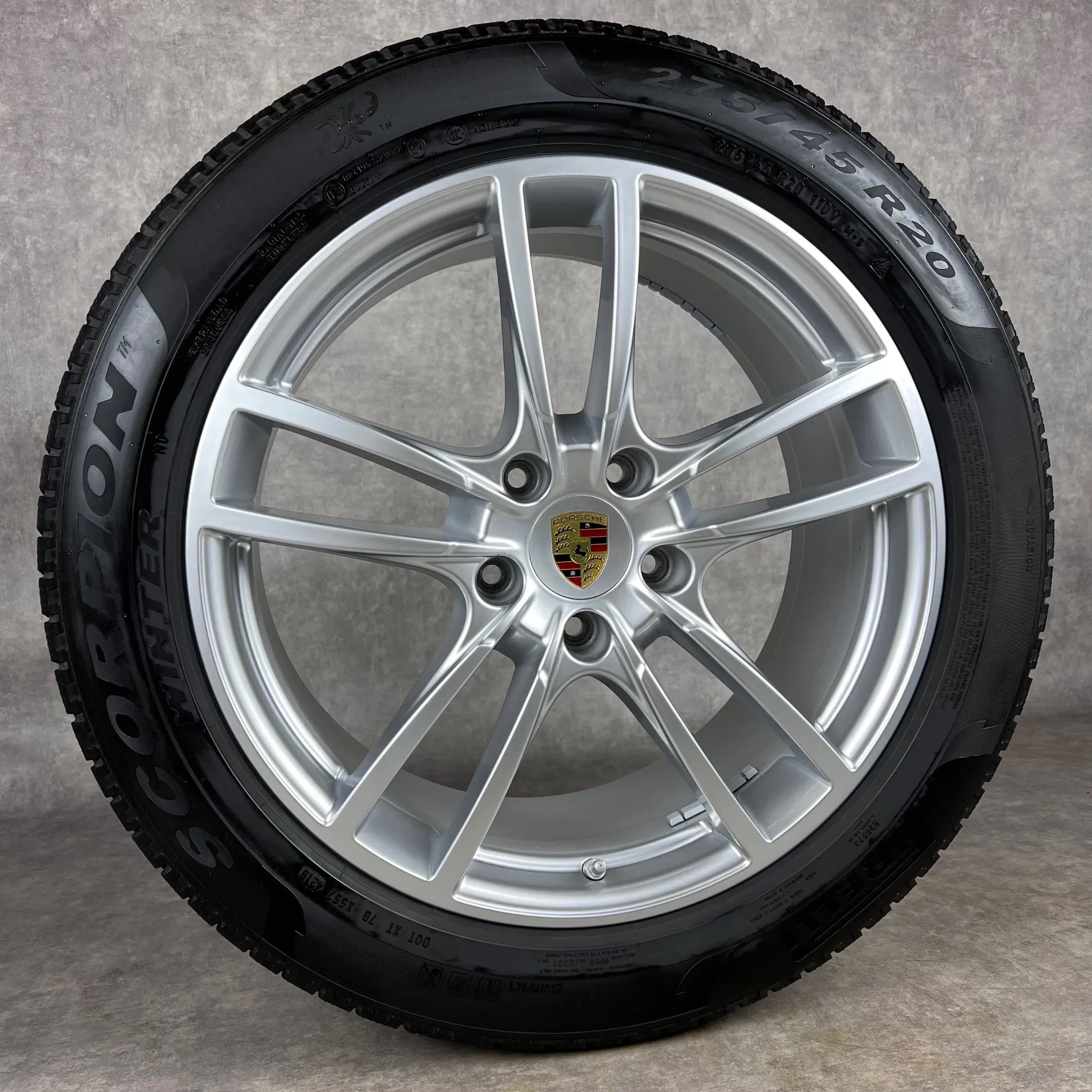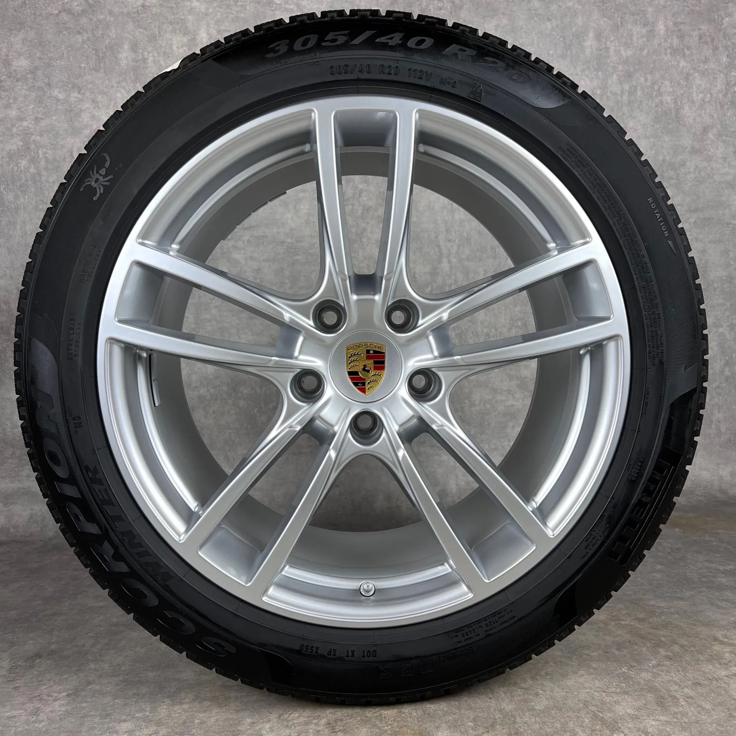 4x Original PORSCHE Cayenne (E3) 20 Sport Felgen Winterkompletträder silber Original Lack VA Dimension: 9Jx20 ET50 Teilenummer: 9Y0601025D 275 45 R20 110V Pirelli Scorpion Winter N0, gebraucht, Profil 5,6mm HA Dimension: 10,5Jx20 ET64 Teilenummer: 9Y0601025BC 305 40 R20 112V Pirelli Scorpion Winter