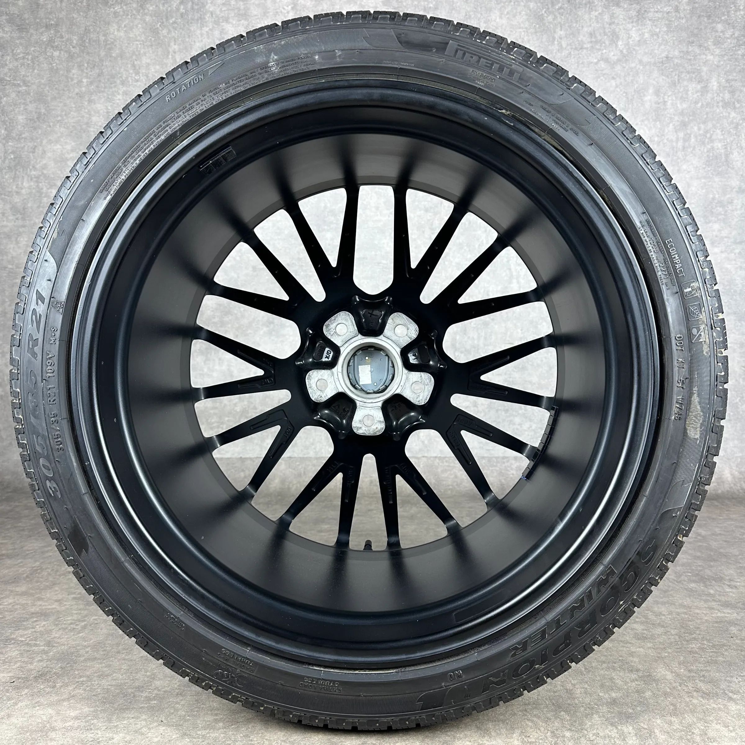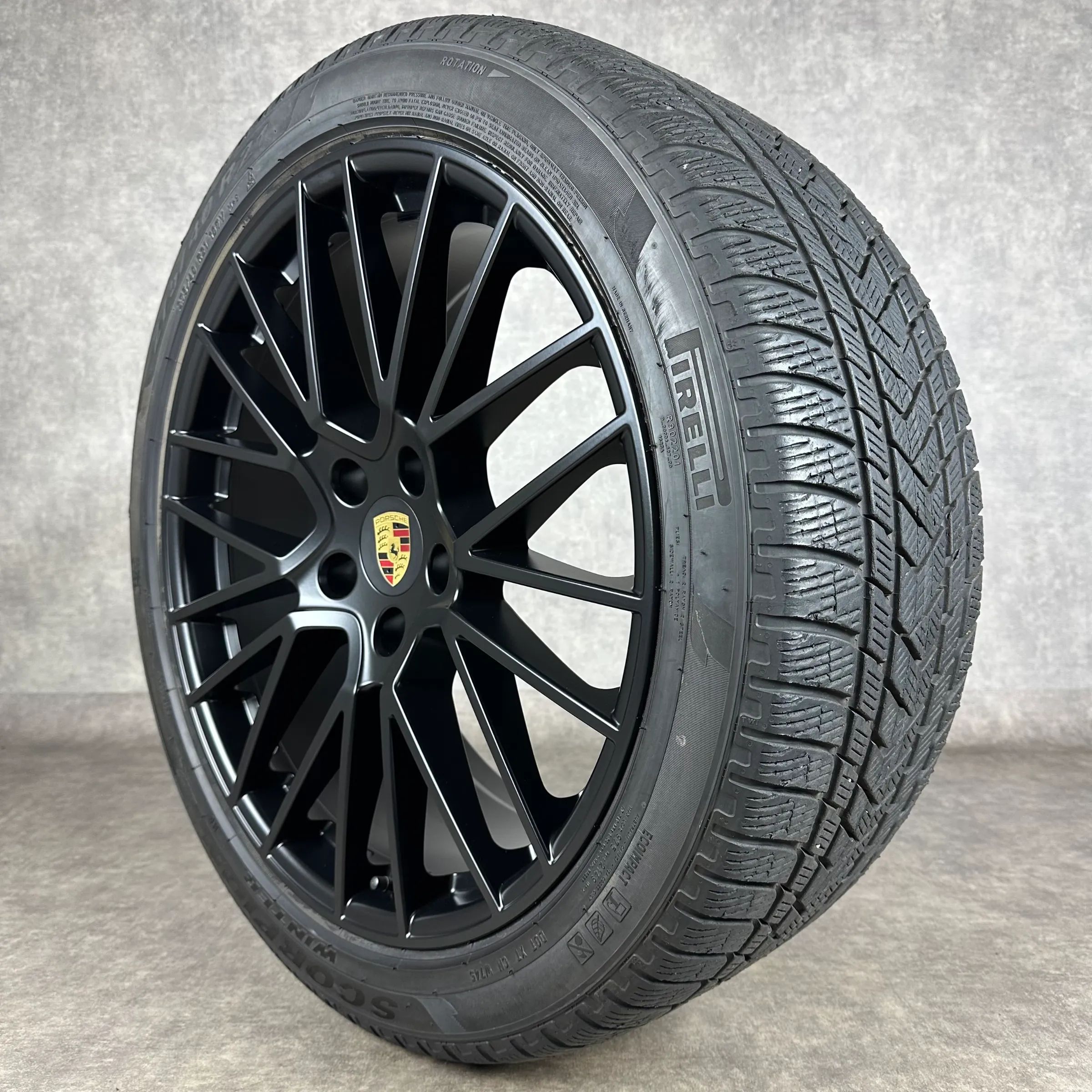4x Original PORSCHE Cayenne (E3) 21 RS Spyder Felgen Winterkompletträder schwarz seidenglanz Original Lack VA Dimension: 9,5Jx21 ET46 Teilenummer: 9Y0601025BF 275 40 R21 107V Pirelli Scorpion Winter N0, gebraucht, Profil 7,1mm HA Dimension: 11Jx21 ET58 Teilenummer: 9Y0601025BG 305 35 R21 109V Pirell