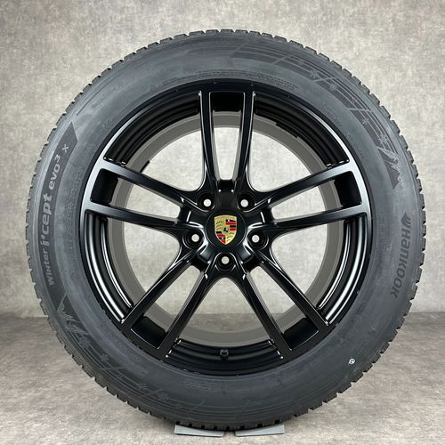 4x Original PORSCHE Cayenne (E3 II) 20 Cayenne Sport Felgen Winterkompletträder schwarz seidenglanz VA Dimension: 9Jx20 ET50 Teilenummer: 9Y06010250BB 255 55 R20 110V Hankook Winter i*cept evo 3x NC0, neu HA Dimension: 10,5Jx20 ET64 Teilenummer: 9Y06010250BC 295 45 R20 114V Hankook Winter i*cept evo