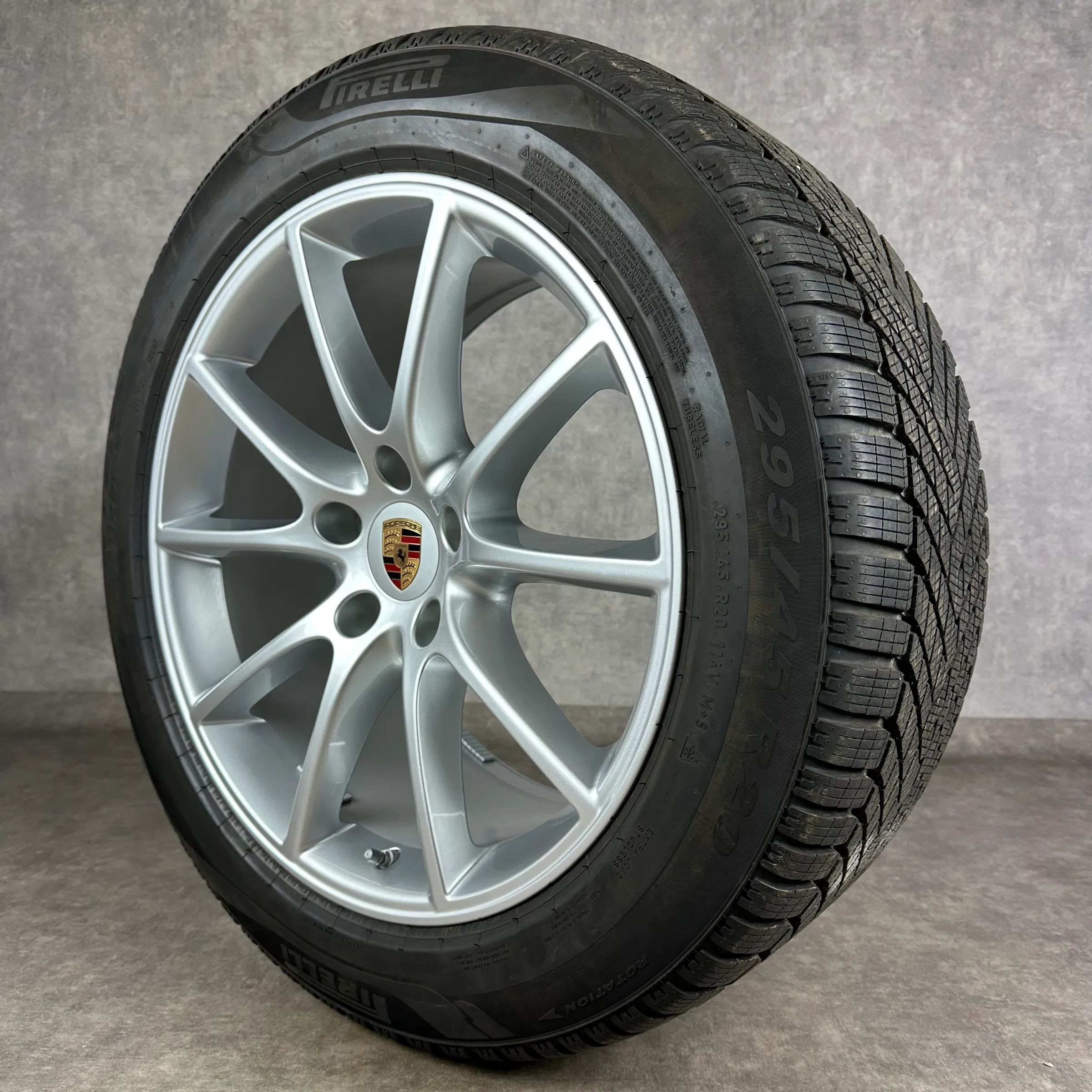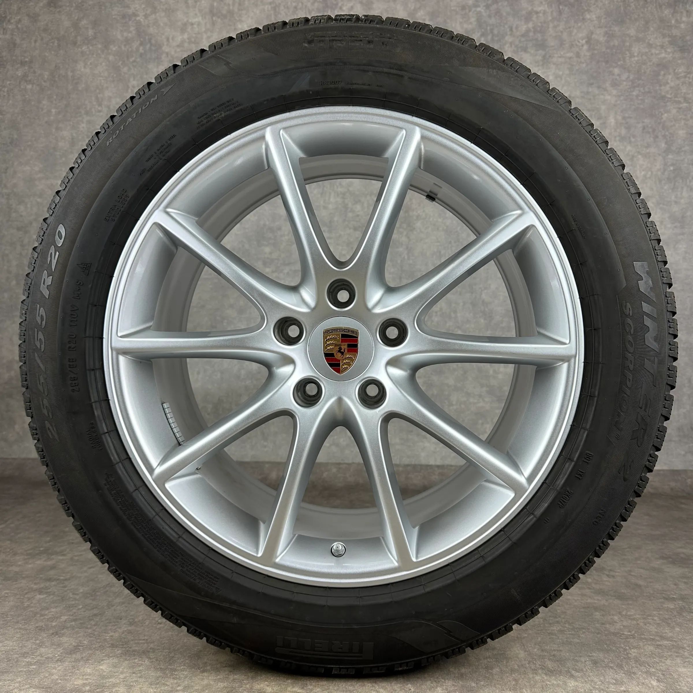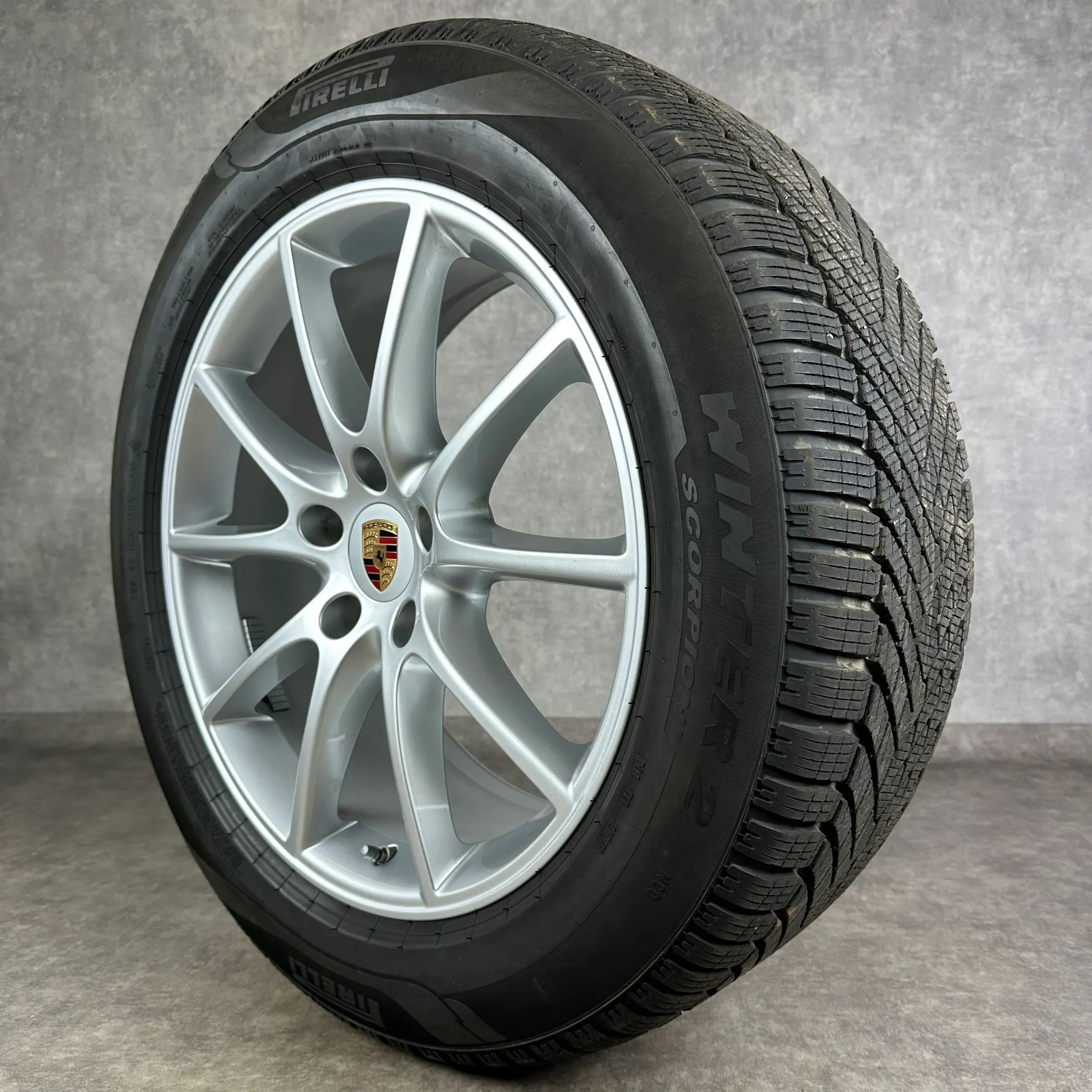 4x Original PORSCHE Cayenne Coupé (E3 II) 20 Cayenne Design Felgen Winterkompletträder silber Original Lack VA Dimension: 9Jx20 ET50 Teilenummer: 9Y06010250F 255 55 R20 110V Pirelli Scorpion Winter 2 NC0, gebraucht, Profil 7,1mm HA Dimension: 10,5Jx20 ET55 Teilenummer: 9Y36010250AB 295 45 R20 114V P