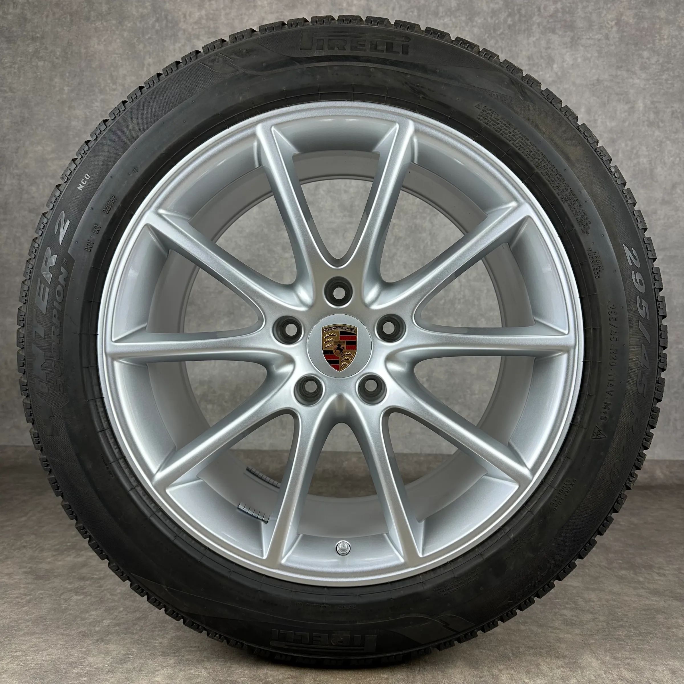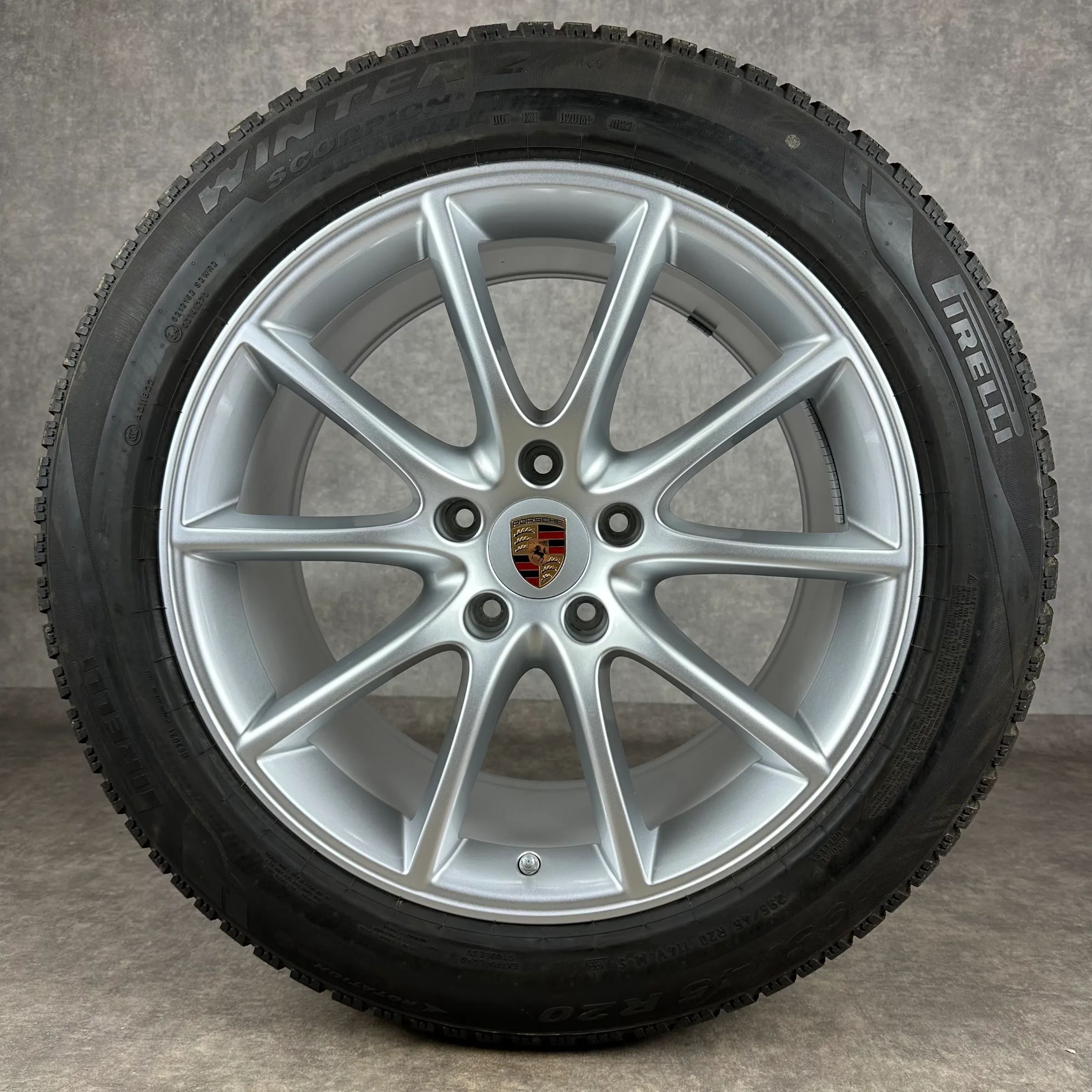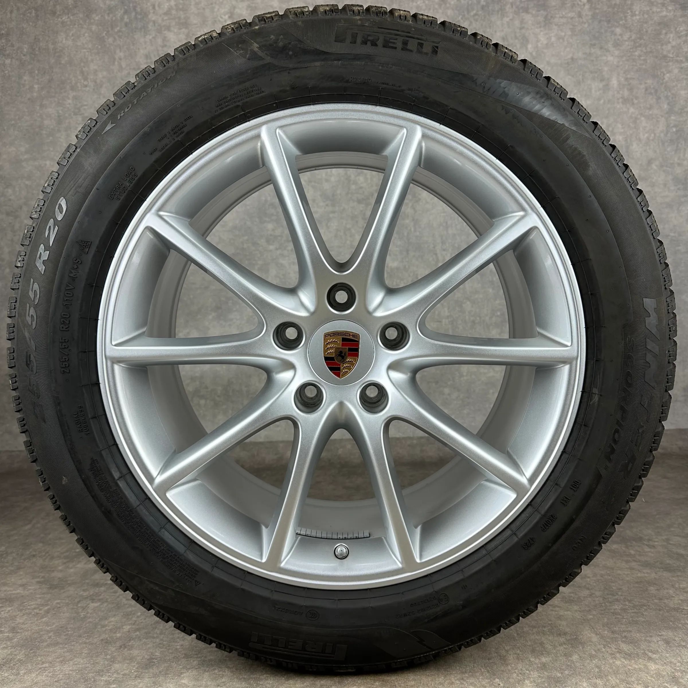 4x Original PORSCHE Cayenne Coupé (E3 II) 20 Cayenne Design Felgen Winterkompletträder silber Original Lack VA Dimension: 9Jx20 ET50 Teilenummer: 9Y06010250F 255 55 R20 110V Pirelli Scorpion Winter 2 NC0, gebraucht, Profil 7,1mm HA Dimension: 10,5Jx20 ET55 Teilenummer: 9Y36010250AB 295 45 R20 114V P