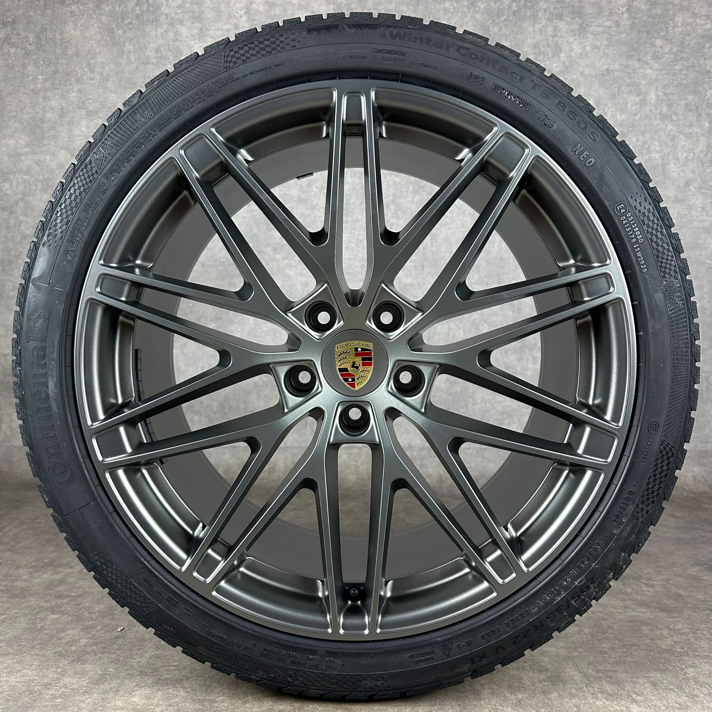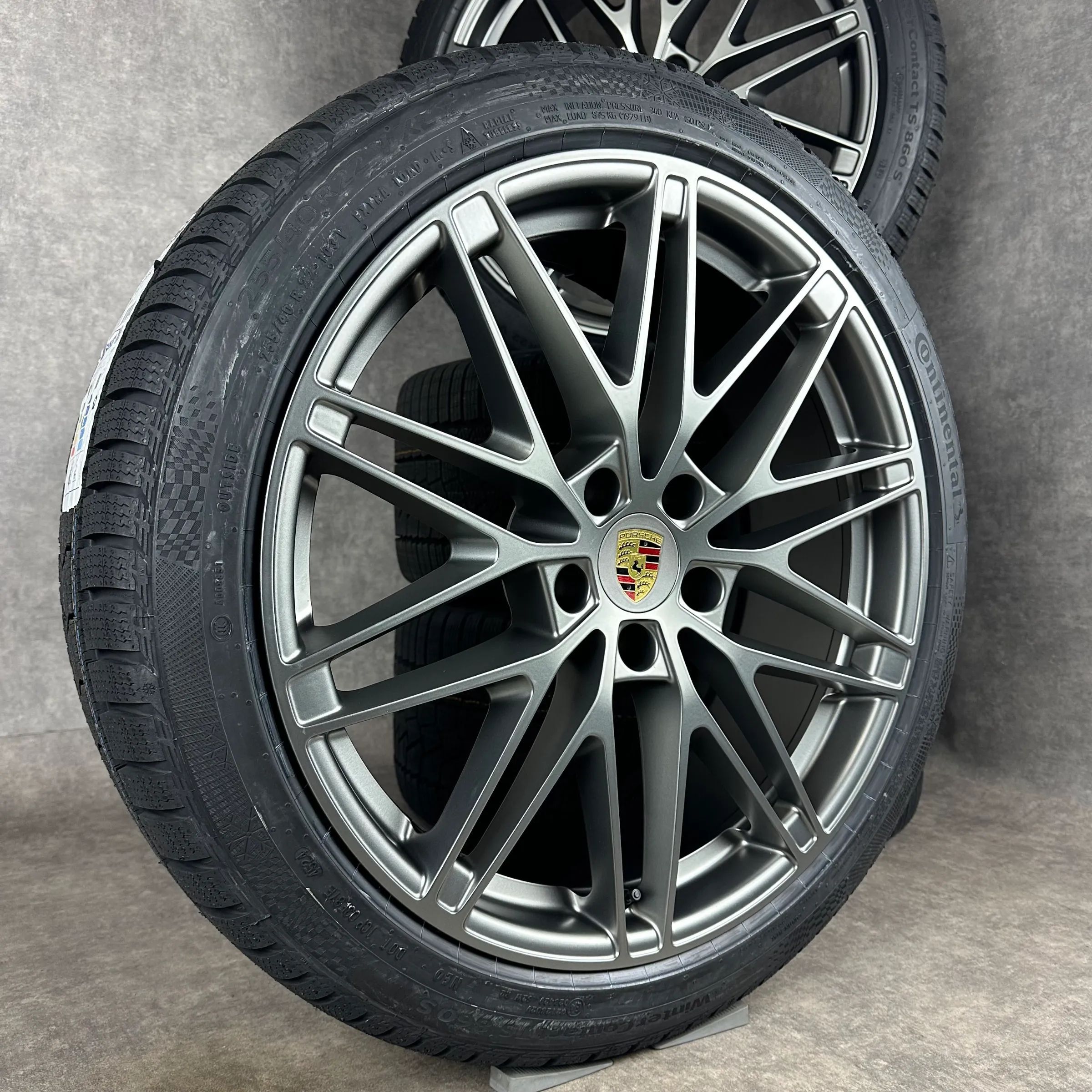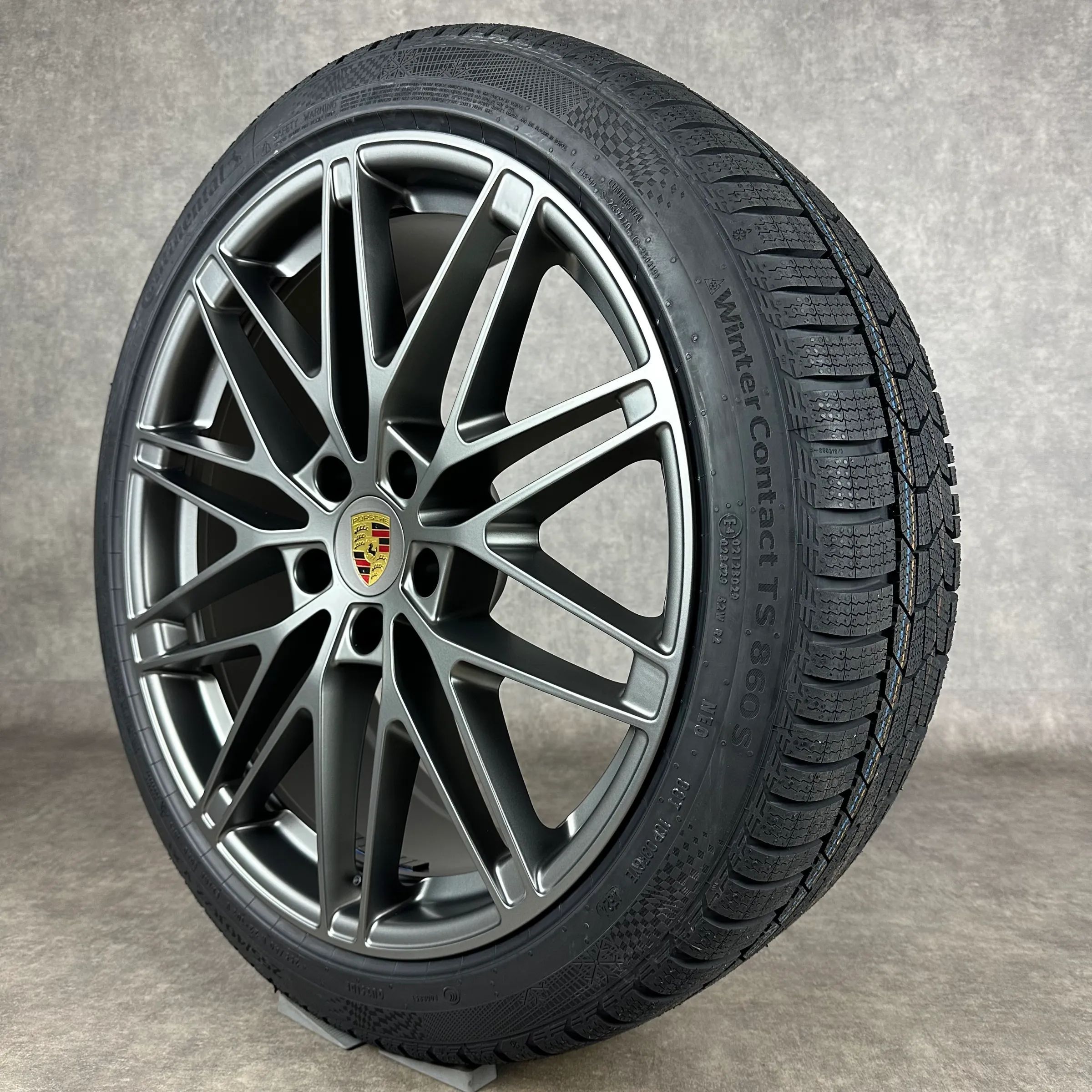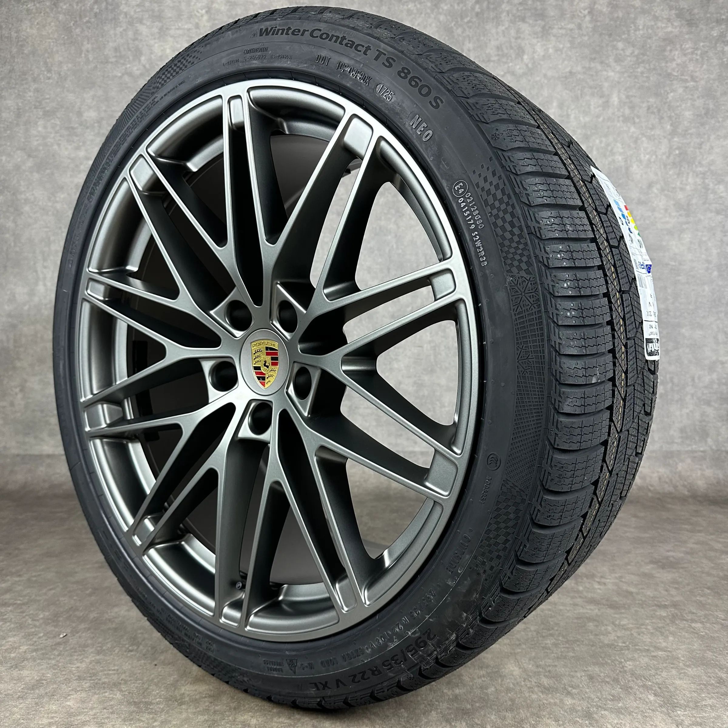 4x Original PORSCHE Macan EV 22 RS Spyder Felgen Winterkompletträder platinum seidenglanz VA Dimension: 9Jx22 ET29 Teilenummer: 95C601025AD 255 40 R22 103V Continental WinterContact TS 860S NE0, neu HA Dimension: 11Jx22 ET47 Teilenummer: 95C601025AE 295 35 R22 108V Continental WinterContact TS 860S