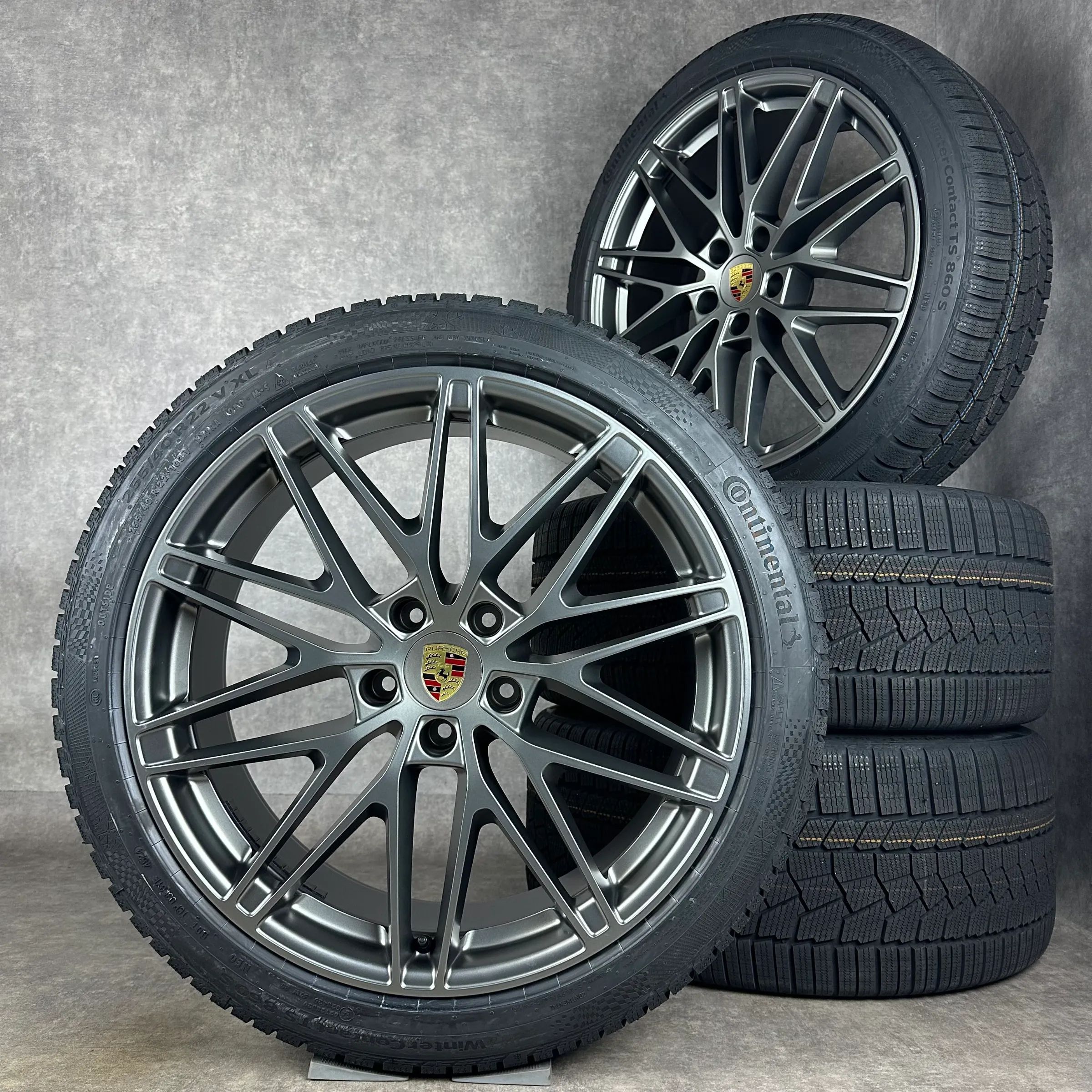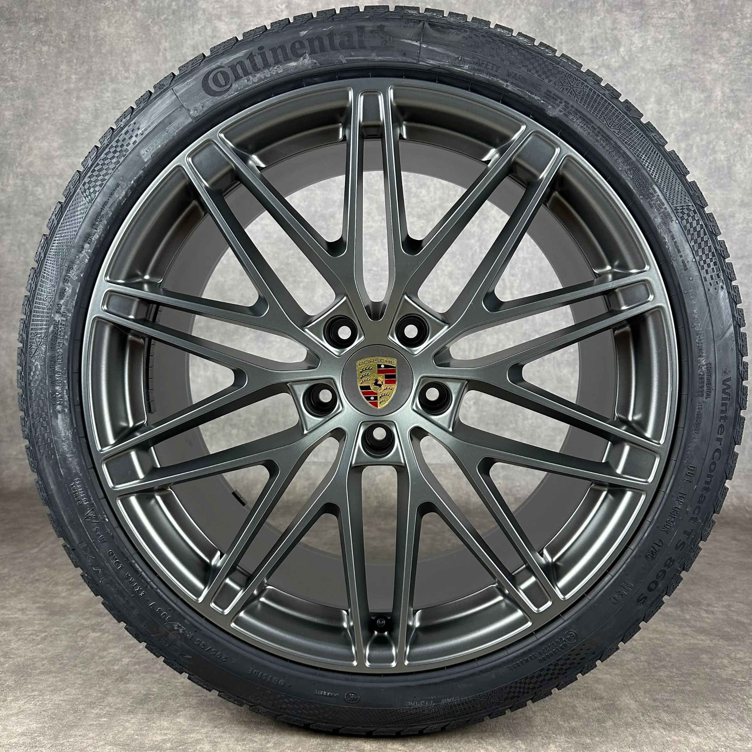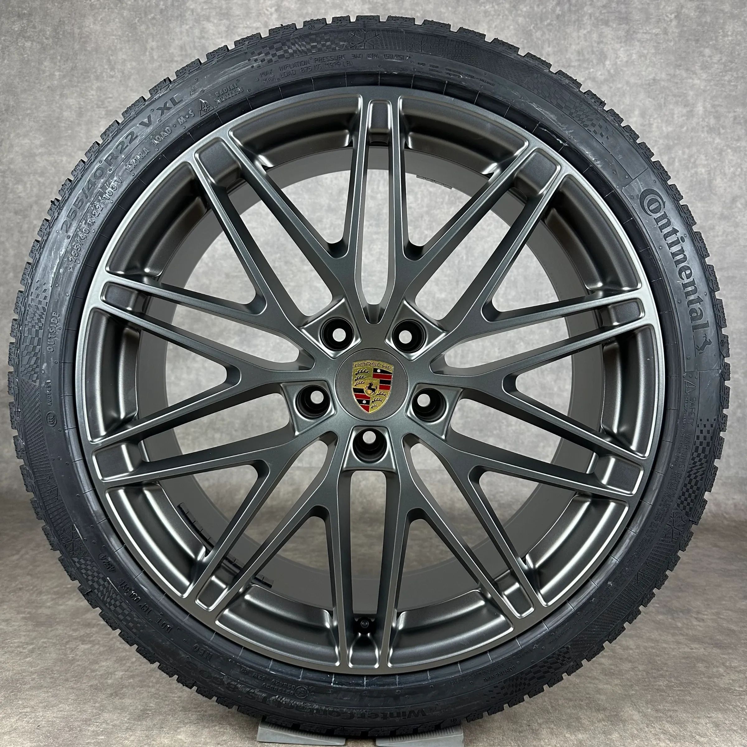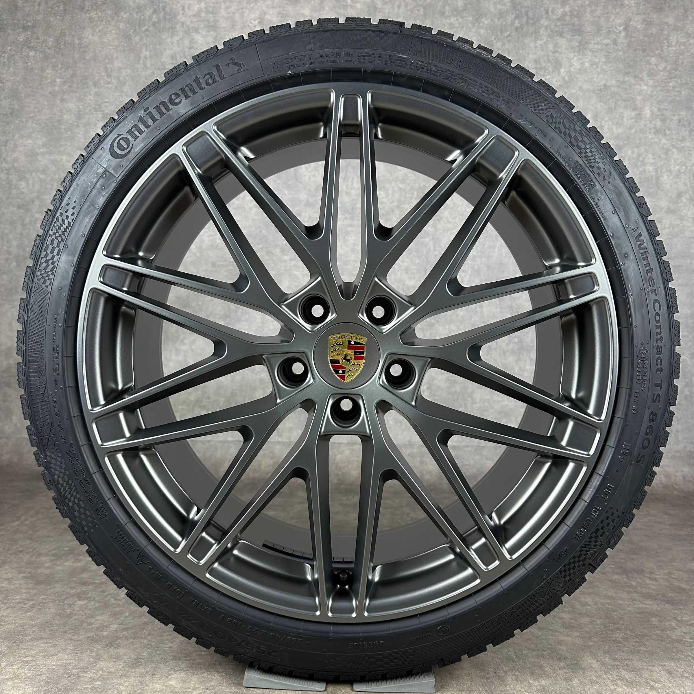 4x Original PORSCHE Macan EV 22 RS Spyder Felgen Winterkompletträder platinum seidenglanz VA Dimension: 9Jx22 ET29 Teilenummer: 95C601025AD 255 40 R22 103V Continental WinterContact TS 860S NE0, neu HA Dimension: 11Jx22 ET47 Teilenummer: 95C601025AE 295 35 R22 108V Continental WinterContact TS 860S